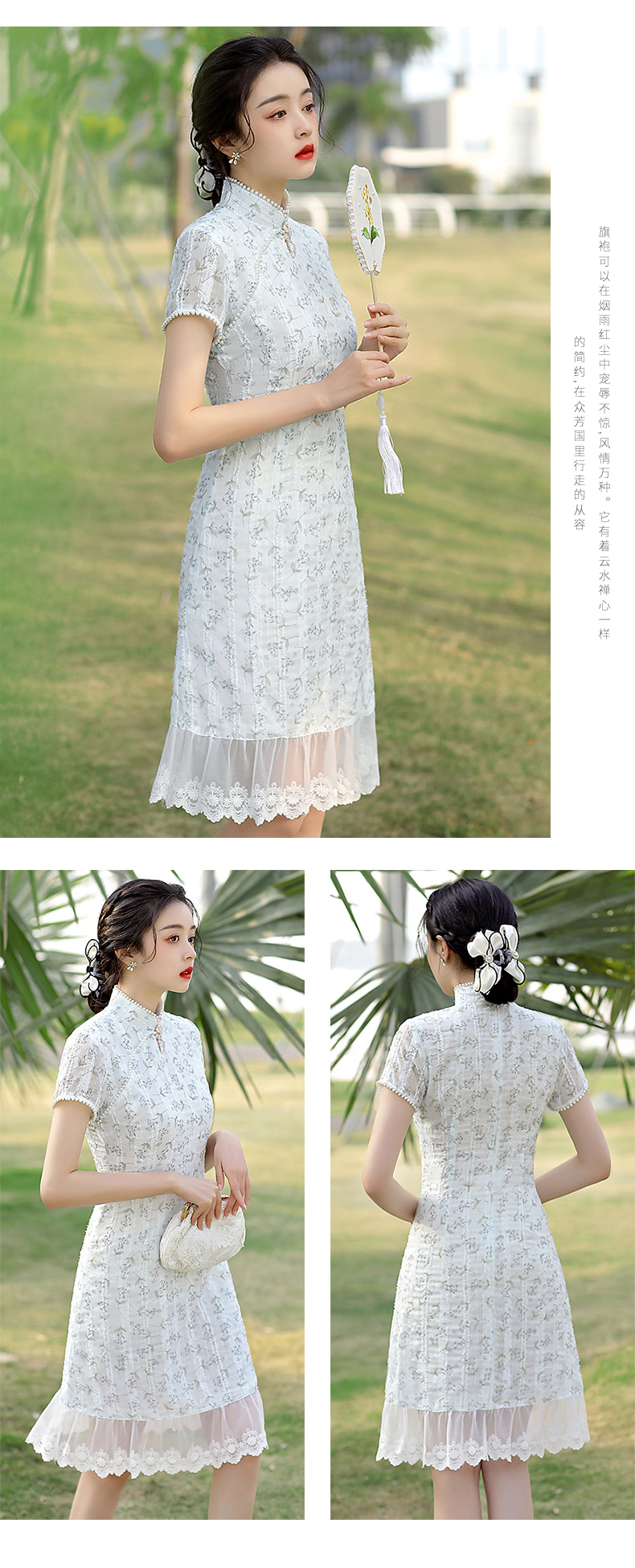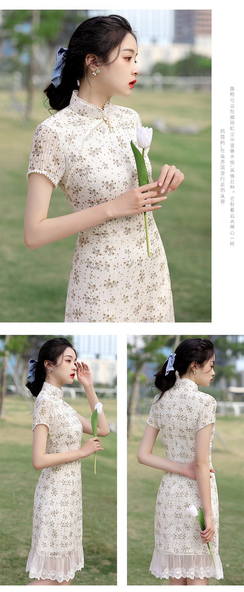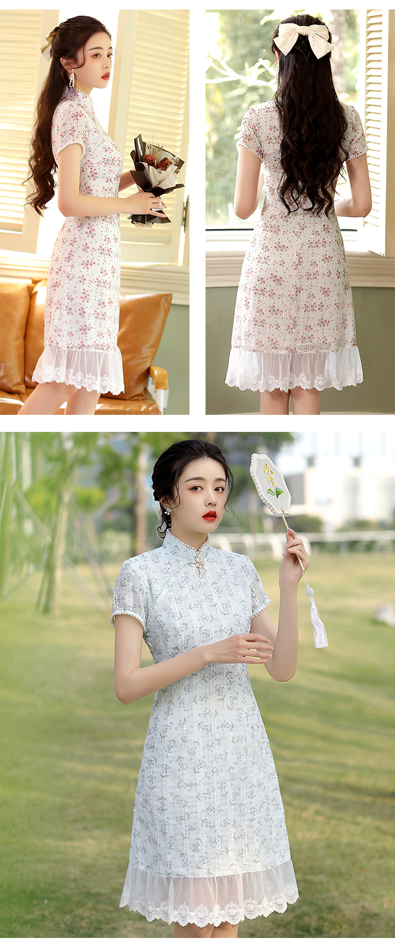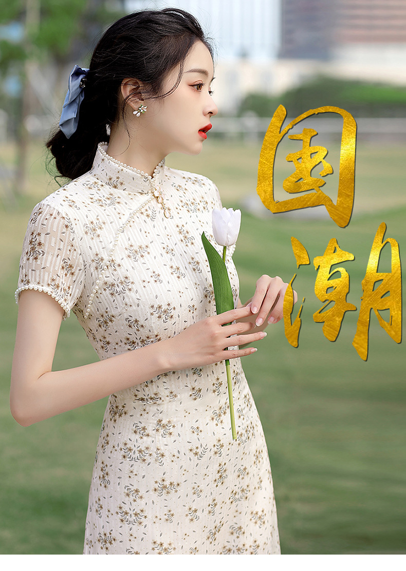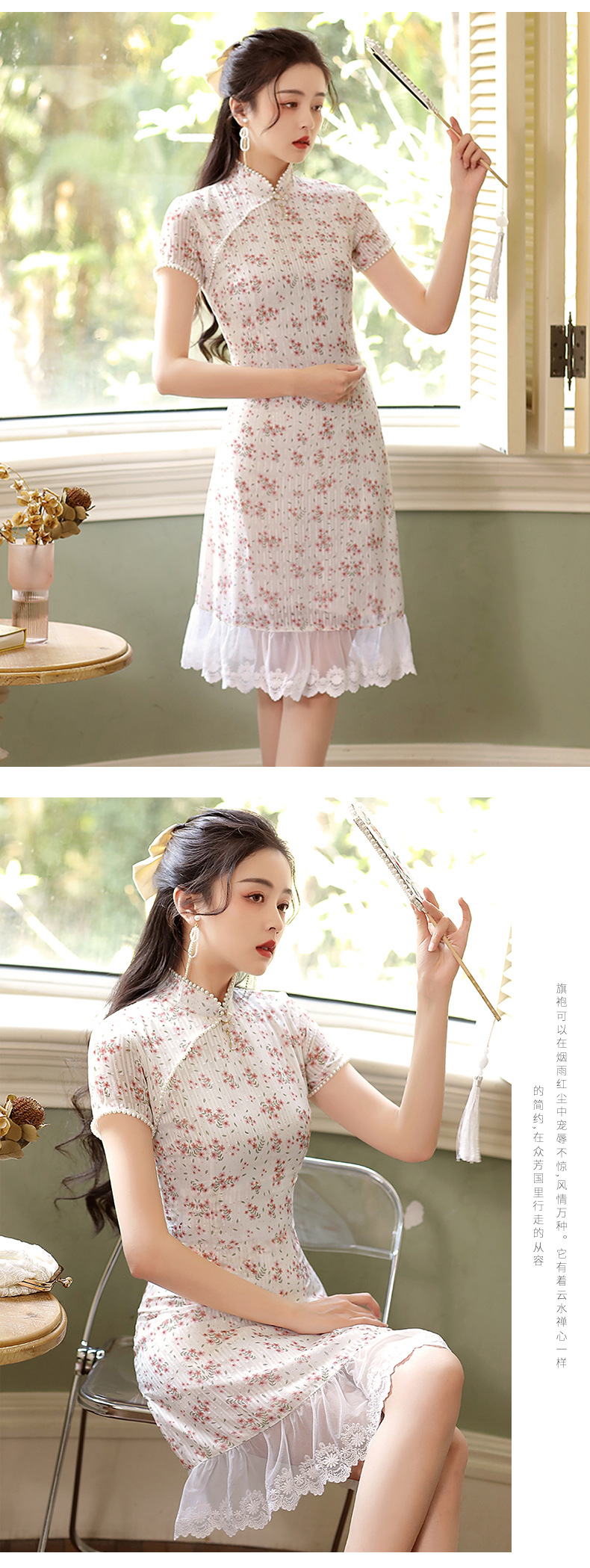 中长款雪纺印花双层旗袍 小清新少女款旗袍连衣裙JQZ-617