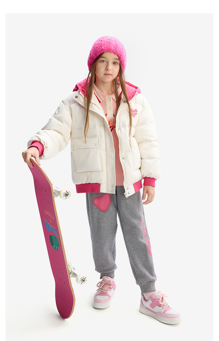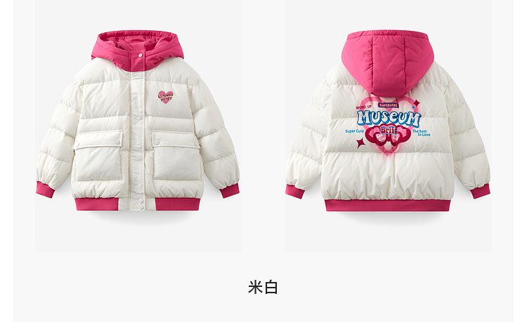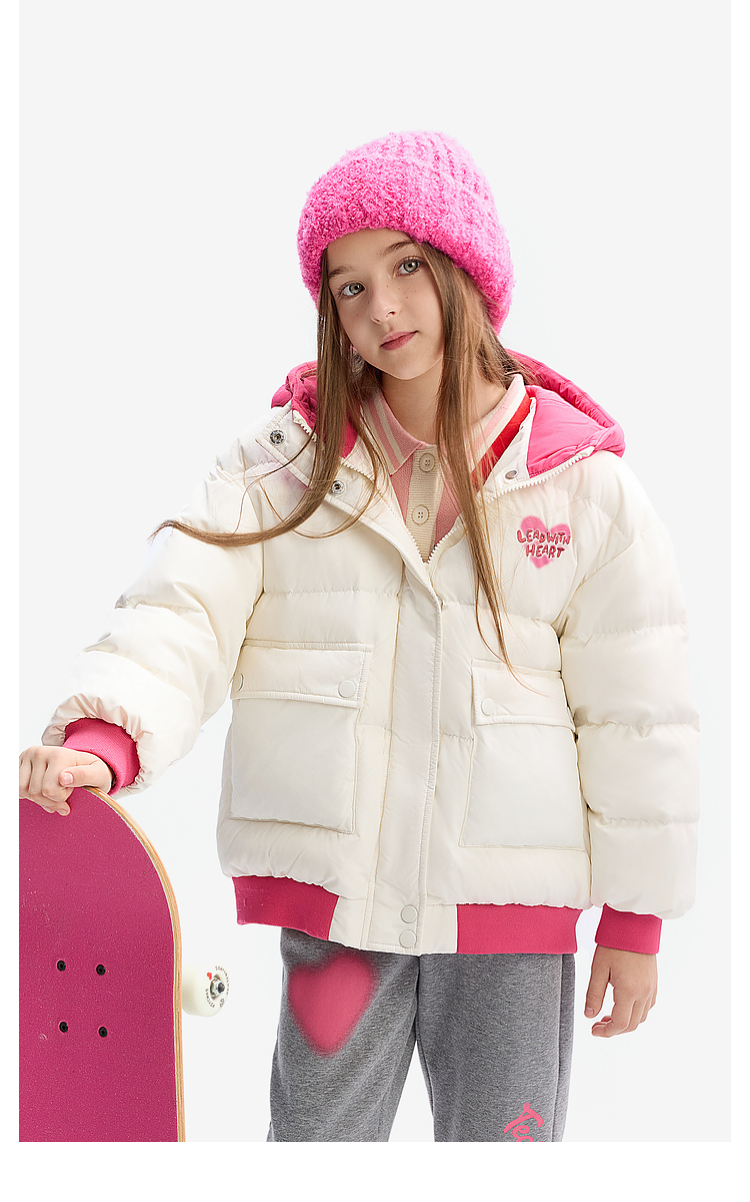 【秒】【MQD】【三防】童装女童羽绒服冬季新款连帽儿童外套爱心