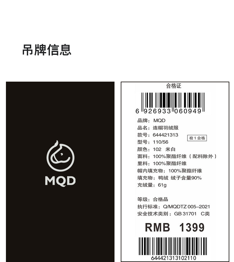 【MQD】男大童冬季新品潮酷休闲保暖连帽羽绒服