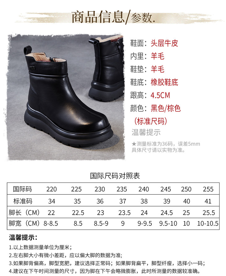 真皮厚底羊毛雪地靴,加厚抗寒保暖东北防滑棉鞋皮靴ZM258762