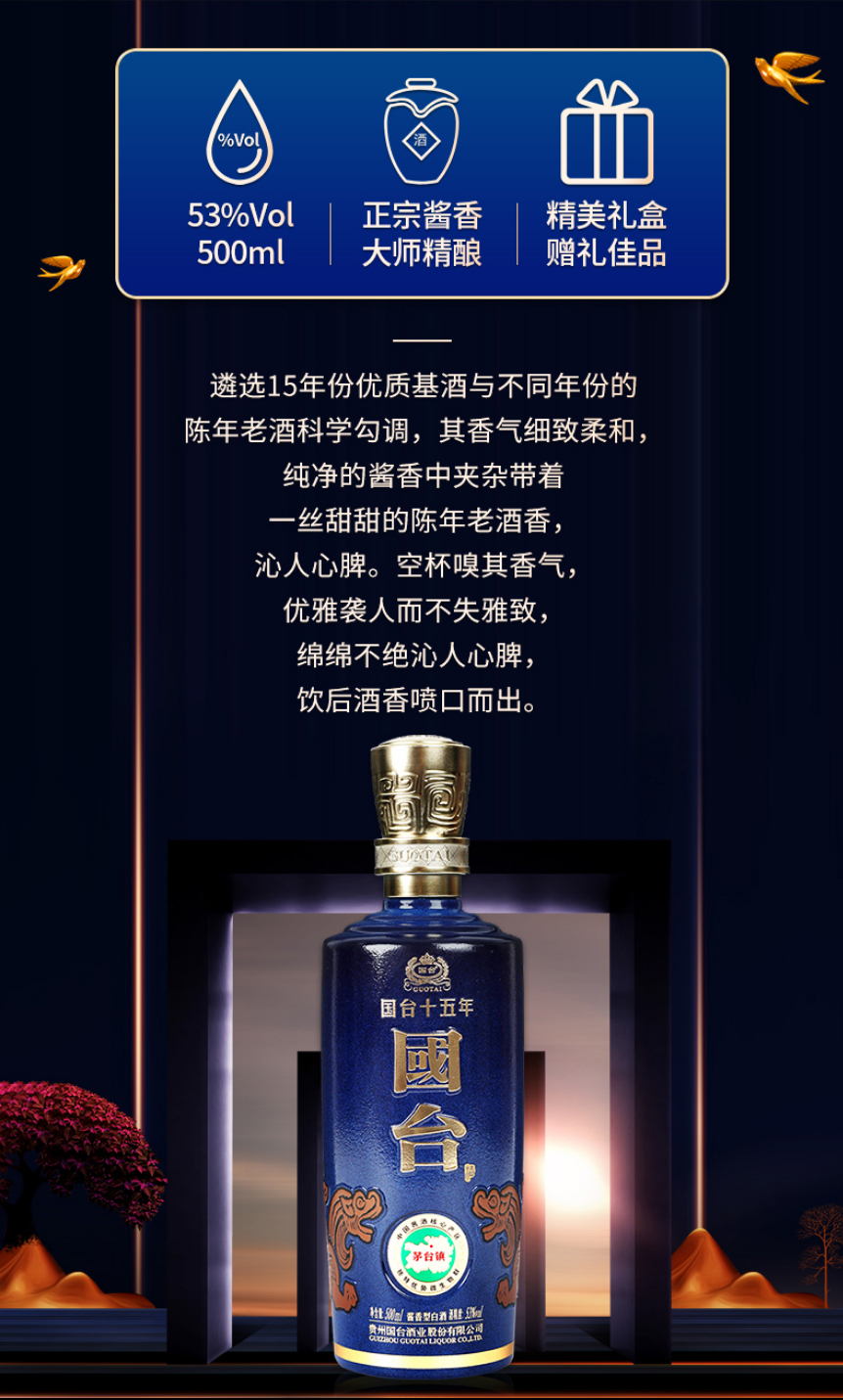 【推荐】国台 15年品鉴装 酱香型 53度 500ml*6
