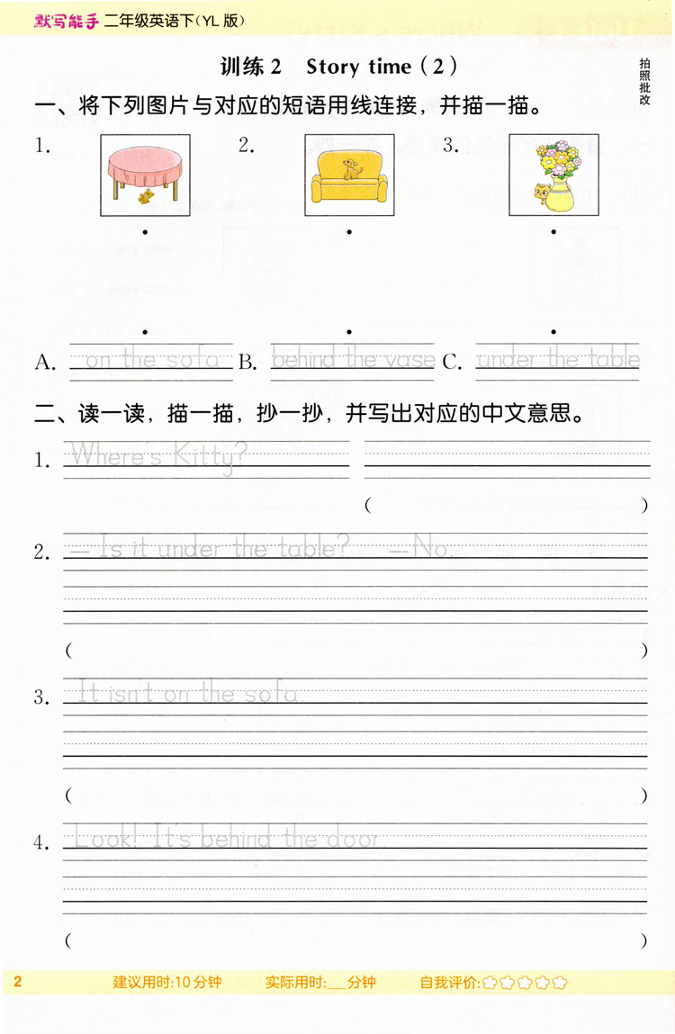 2026年春 小学英语默写能手2下 小学二年级下册译林版小学英语 通城学典 YL版 强化训练练习 延边大学出版社