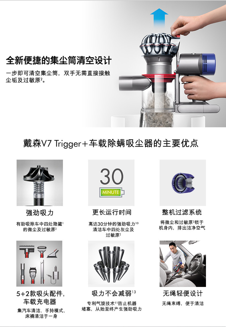 Dyson戴森V7 Trigger+手持无线车载吸尘器强力除螨仪