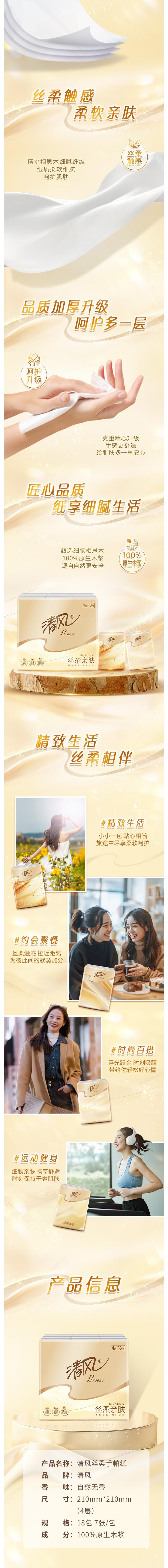清风 丝柔亲肤手帕纸4层7张*18包 BR0SR07-18