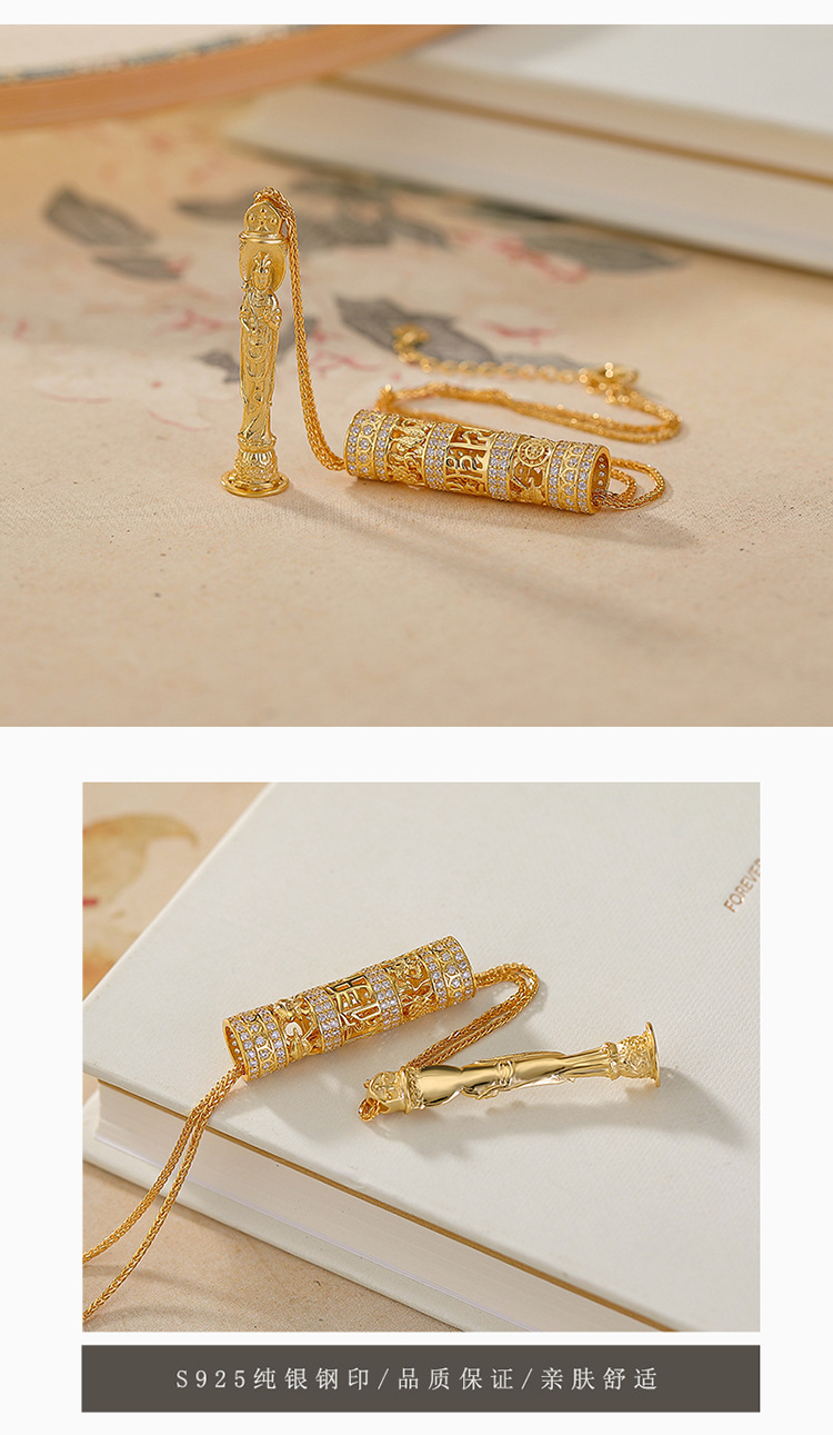 S925纯银镀金金刚杵观音,中式设计感银吊坠套链CW-DZ06801