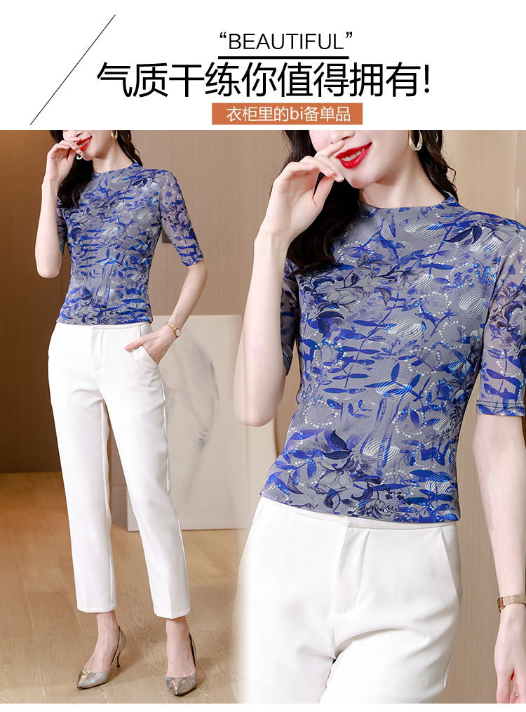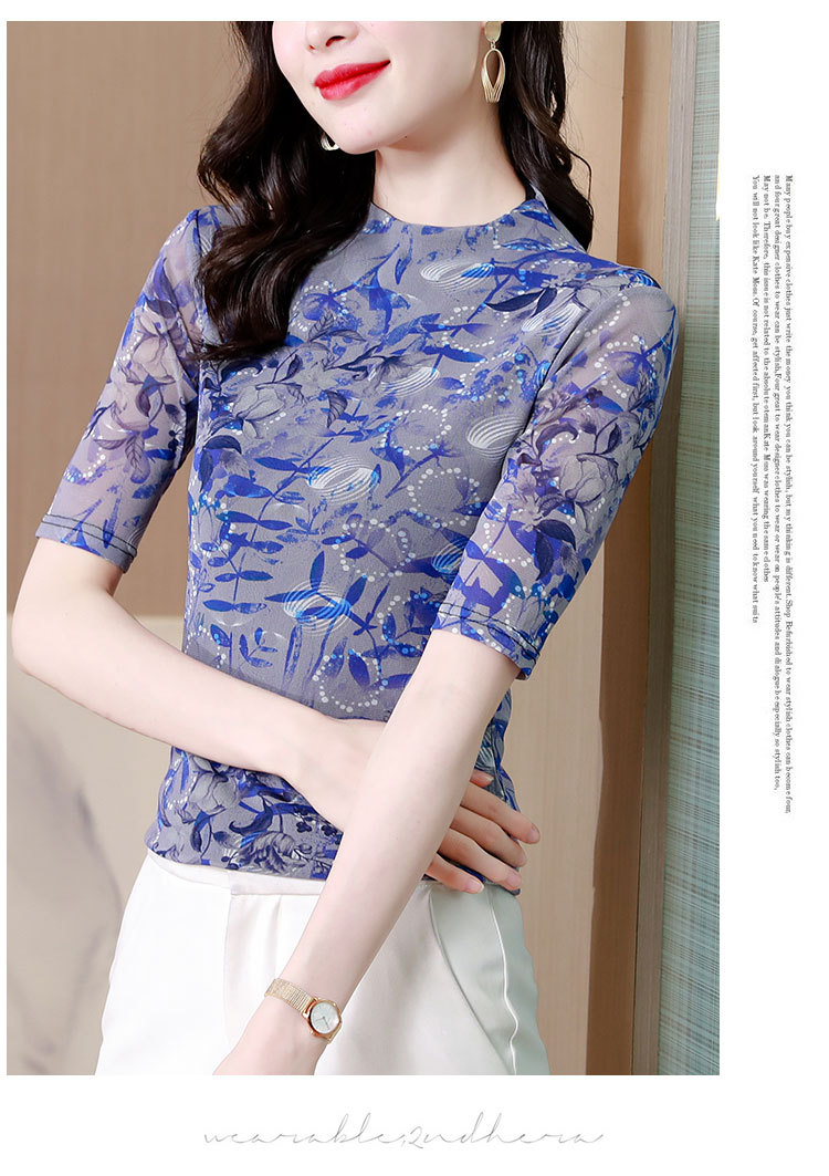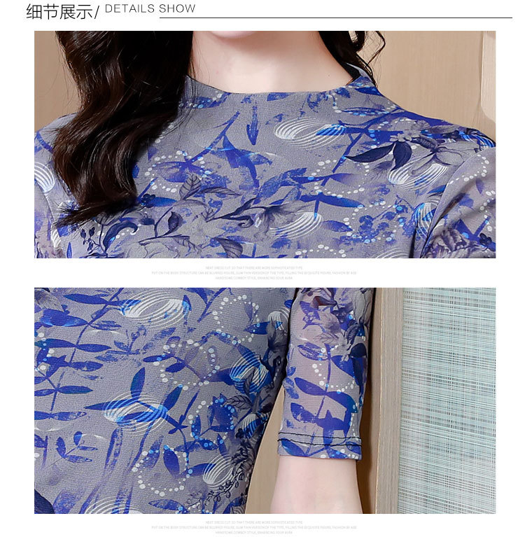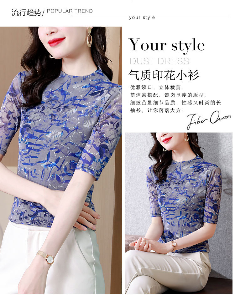 KQL 520N9875大码网纱双层中袖百搭t恤