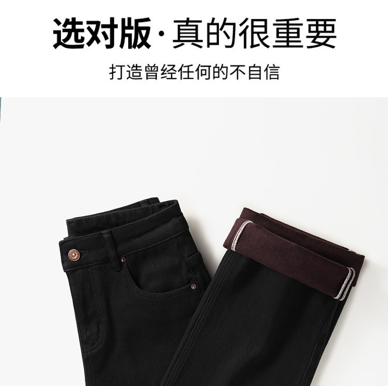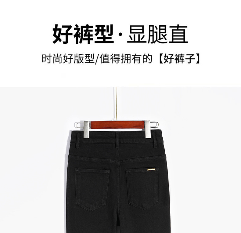 【自】全新升级【铂金会员183/天猫239/差价56】(52019) 洛诗琳2024黑色法棍裤秋冬牛仔裤显瘦保暖窄版加绒直筒裤女