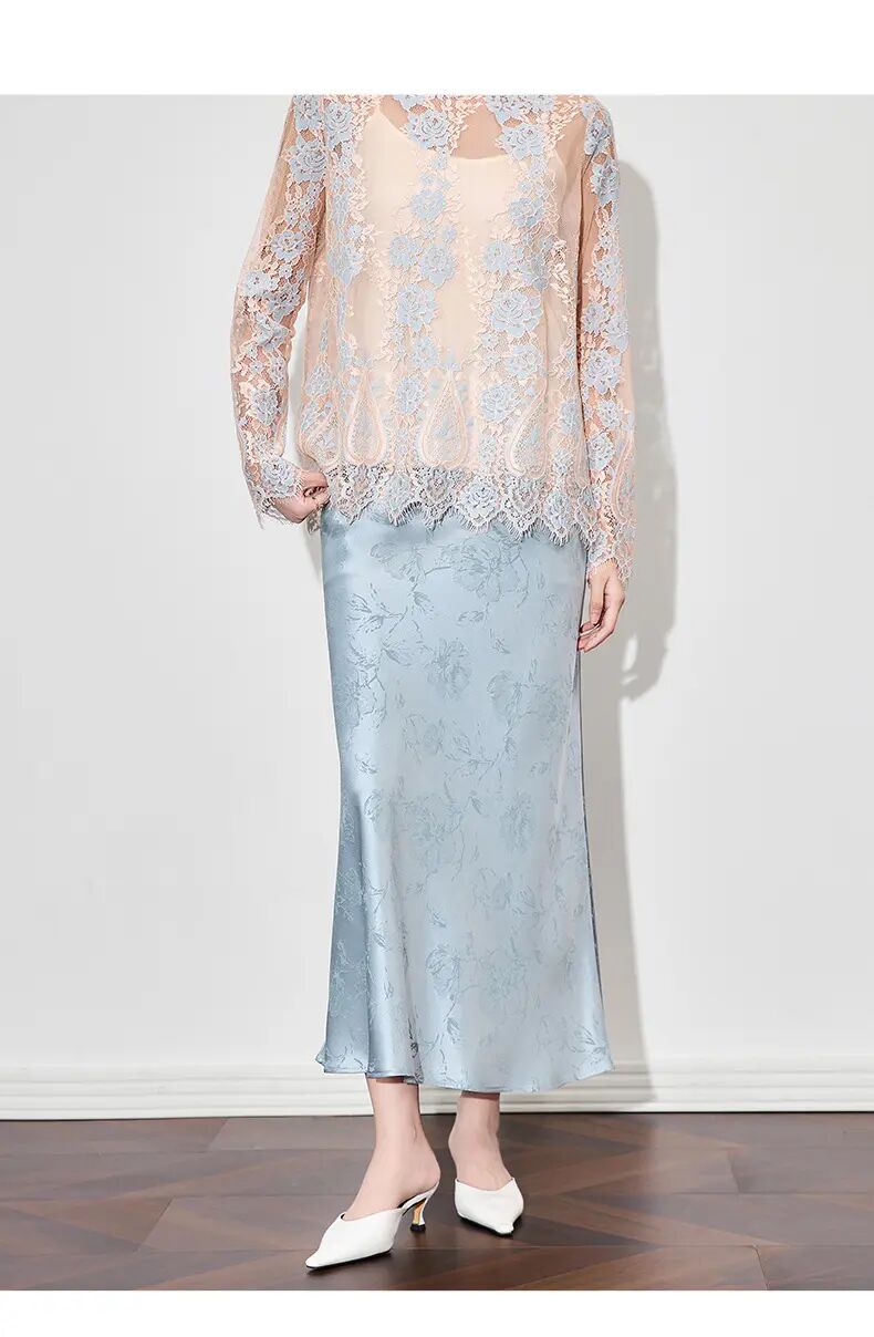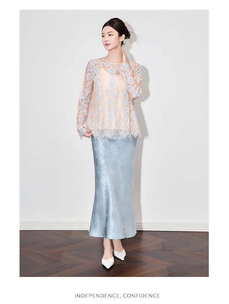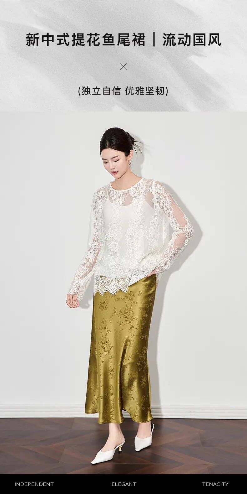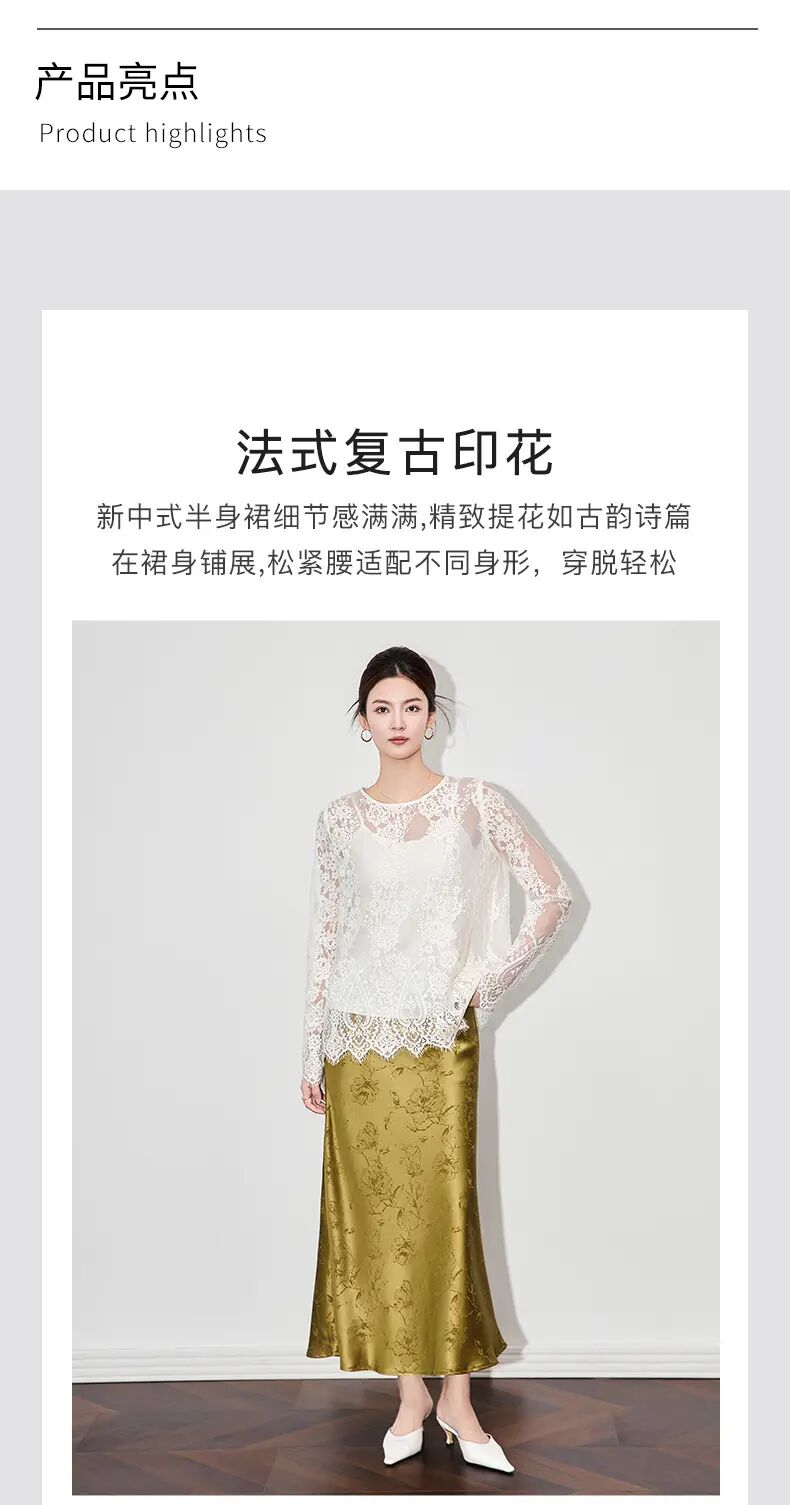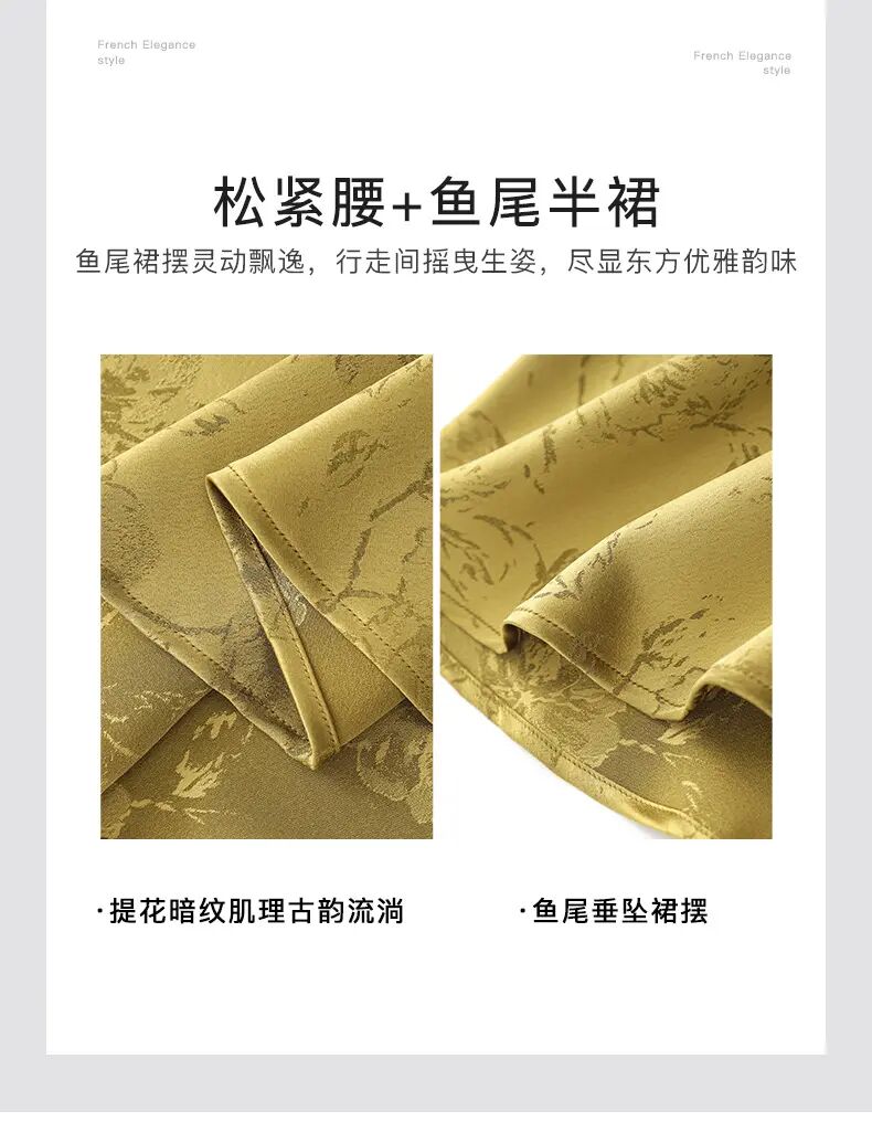 【高货wl】全新升级【铂金会员266/天猫359/差价93】(13115) 洛诗琳新款新中式提花醋酸缎气质半身裙优雅国风鱼尾裙