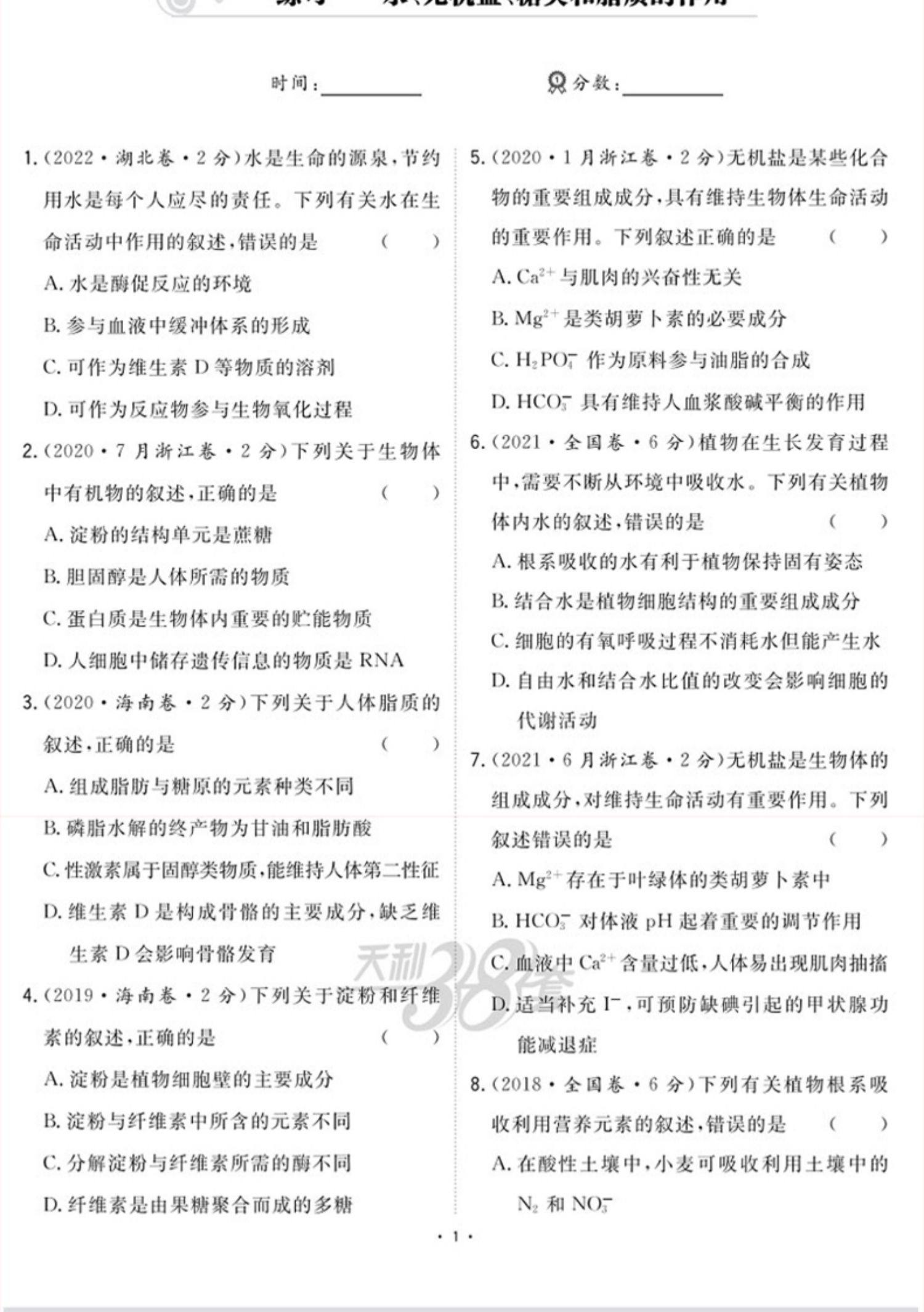 2024新版天利38套高考真题随时练语文数英物化学生物历史政治地理