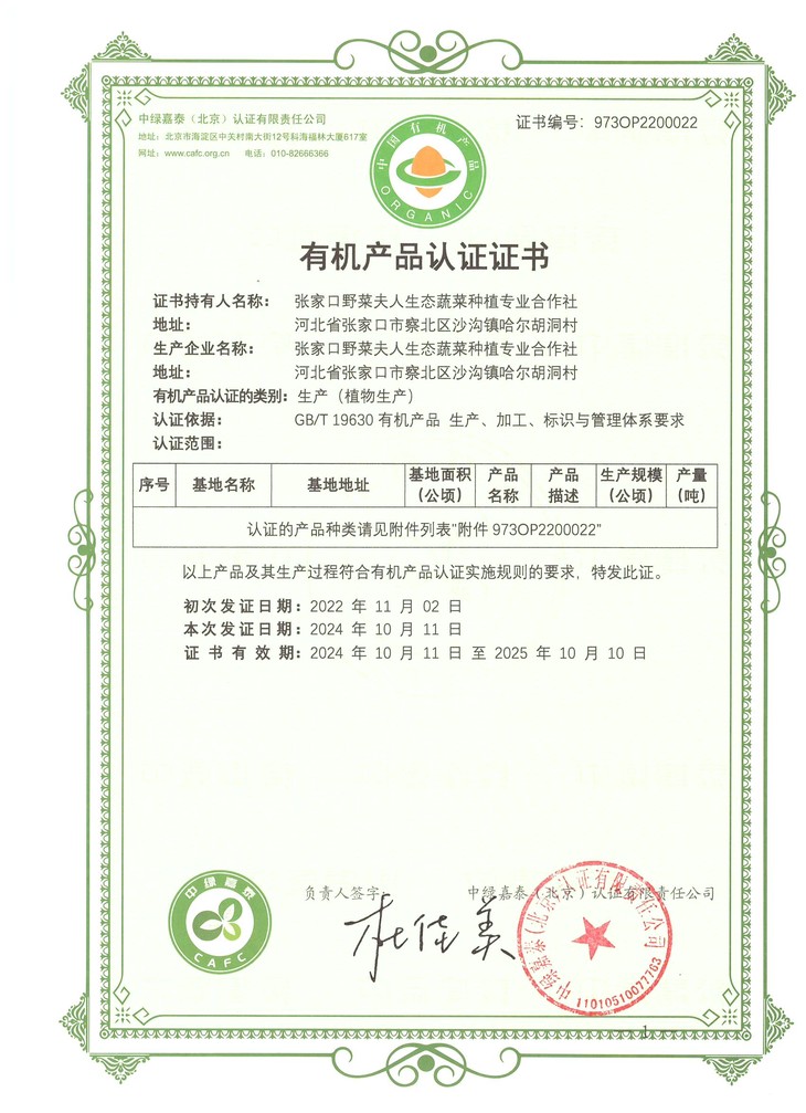 生产方式:2006年起采用生态方式生产,露地种植,轮作不同科属农作物,不使用化肥、农药、除草剂和生长激素,人工除草,肥料来源于当地的羊粪堆肥。