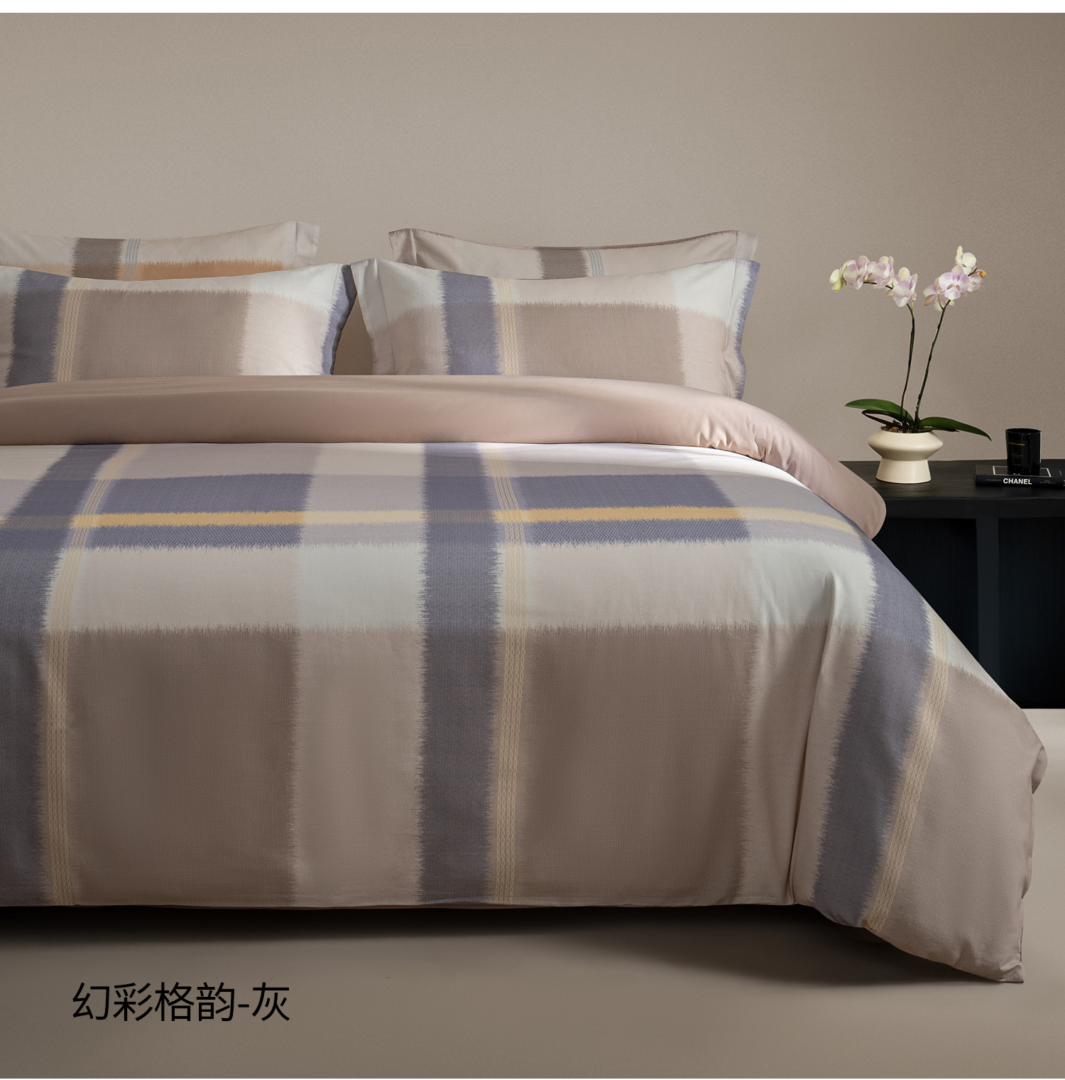 【预售-12月29日配送】佳丽斯全棉印花磨毛套件(幻彩格韵-灰)/1套(床单款,被套220*240cm,适合1.5床)