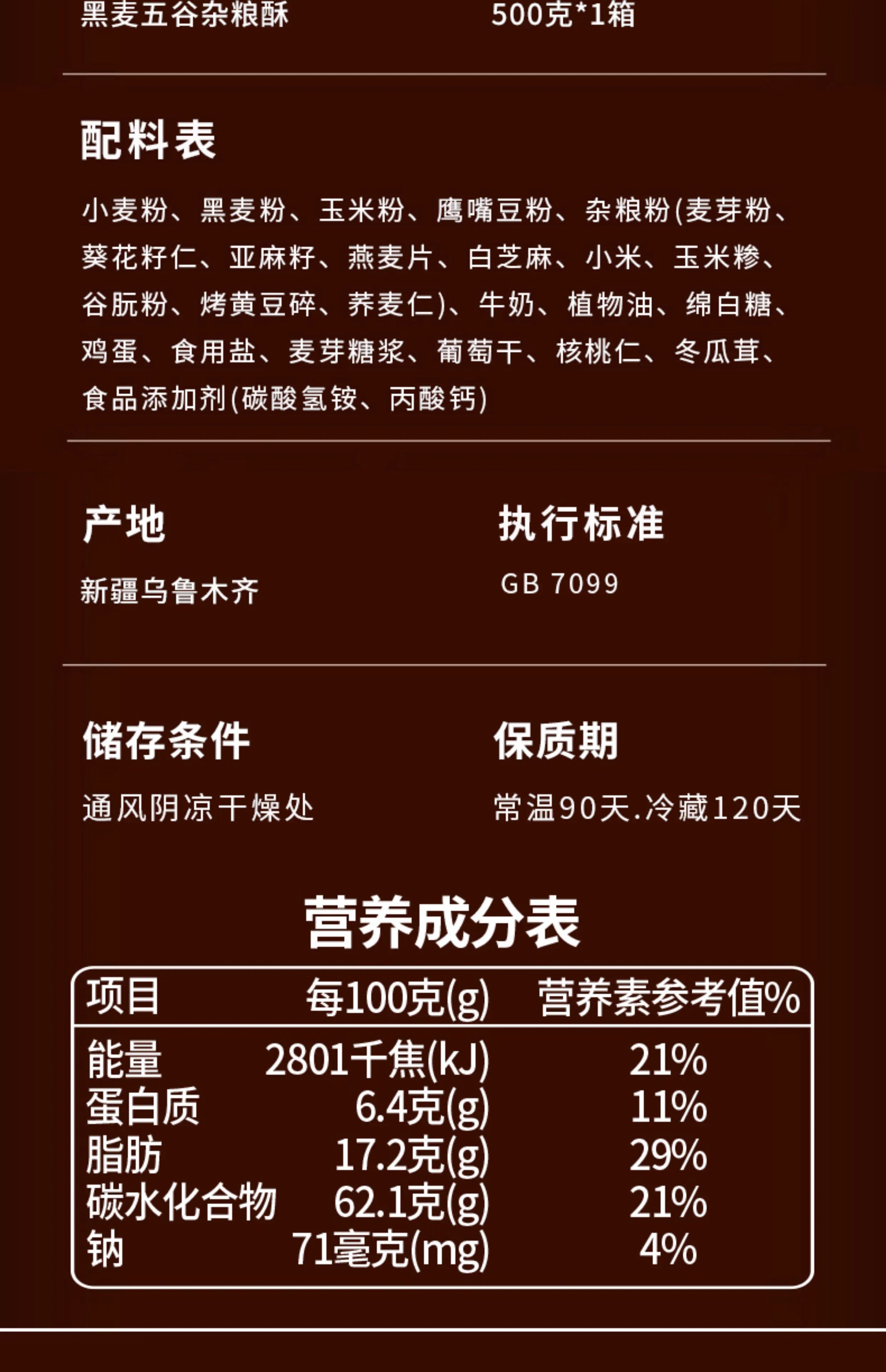 疆小来·黑麦五谷杂粮酥 500g 酥软可口 老少皆宜