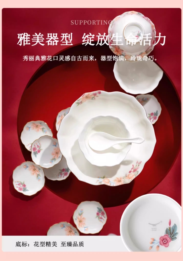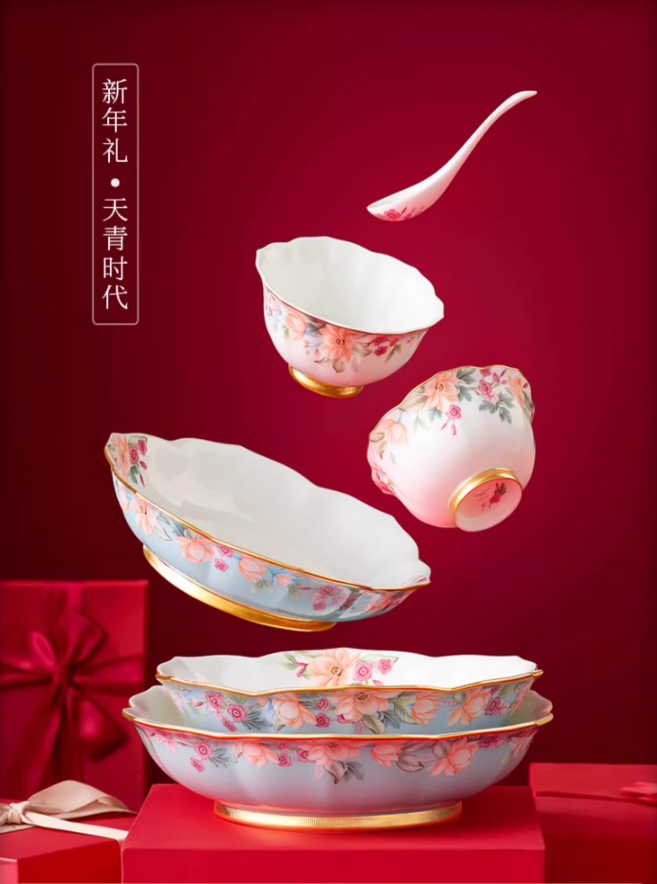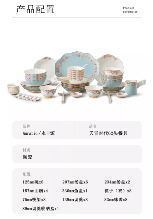 【彼达思】新年礼天青时代62头 8 人位餐具套装 高档陶瓷碗盘碟 结婚乔迁礼