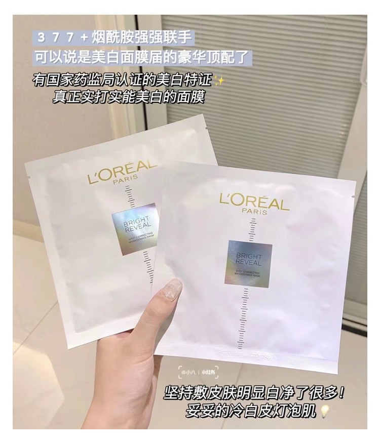 原价125/250 欧莱雅小白方精华面膜 烟酰胺美白淡斑提亮肤色去黄好气色 5片/10片