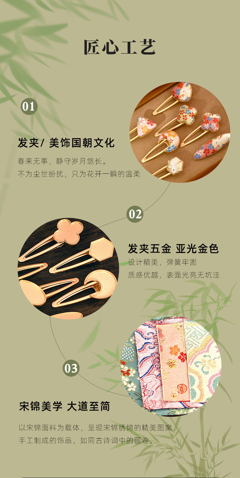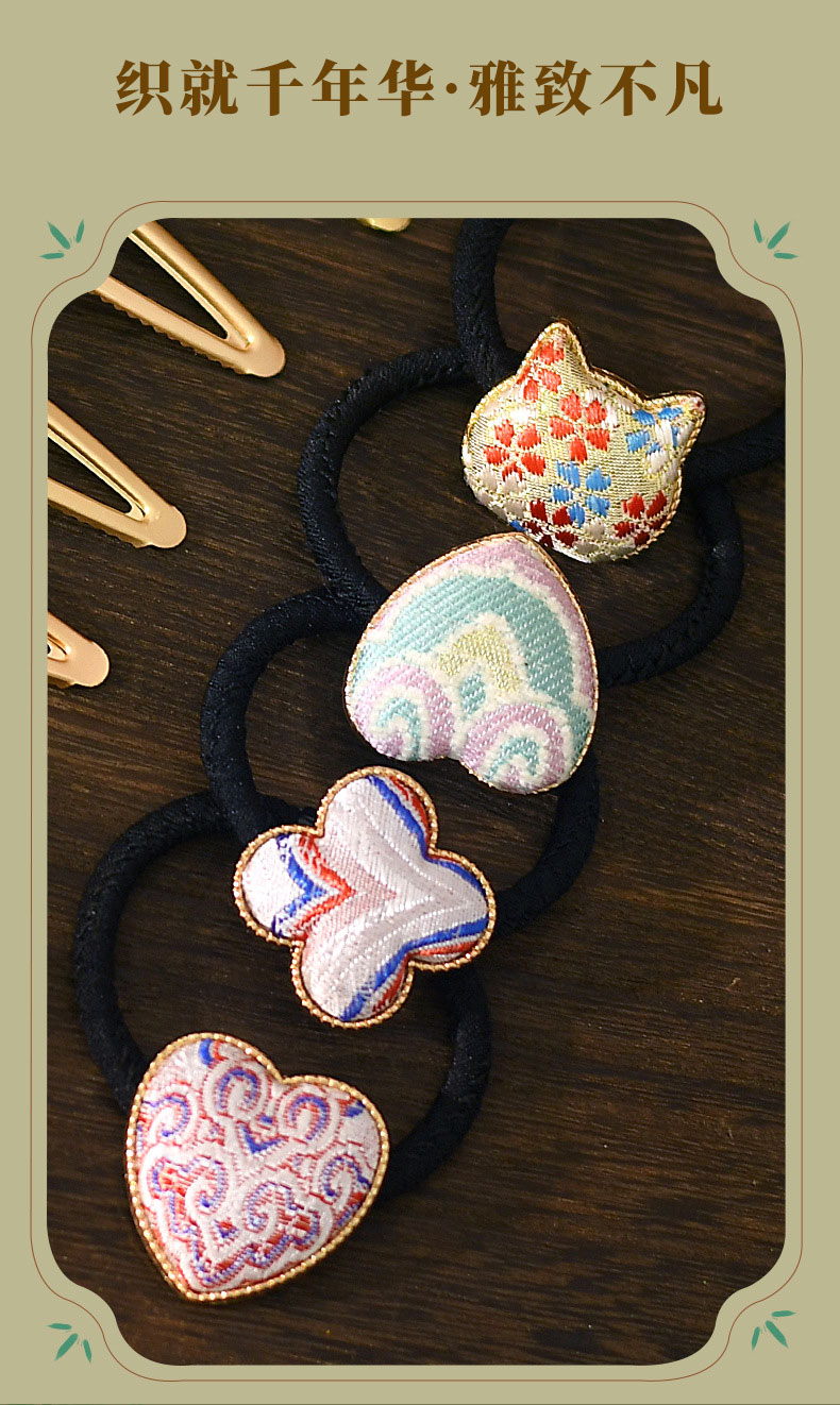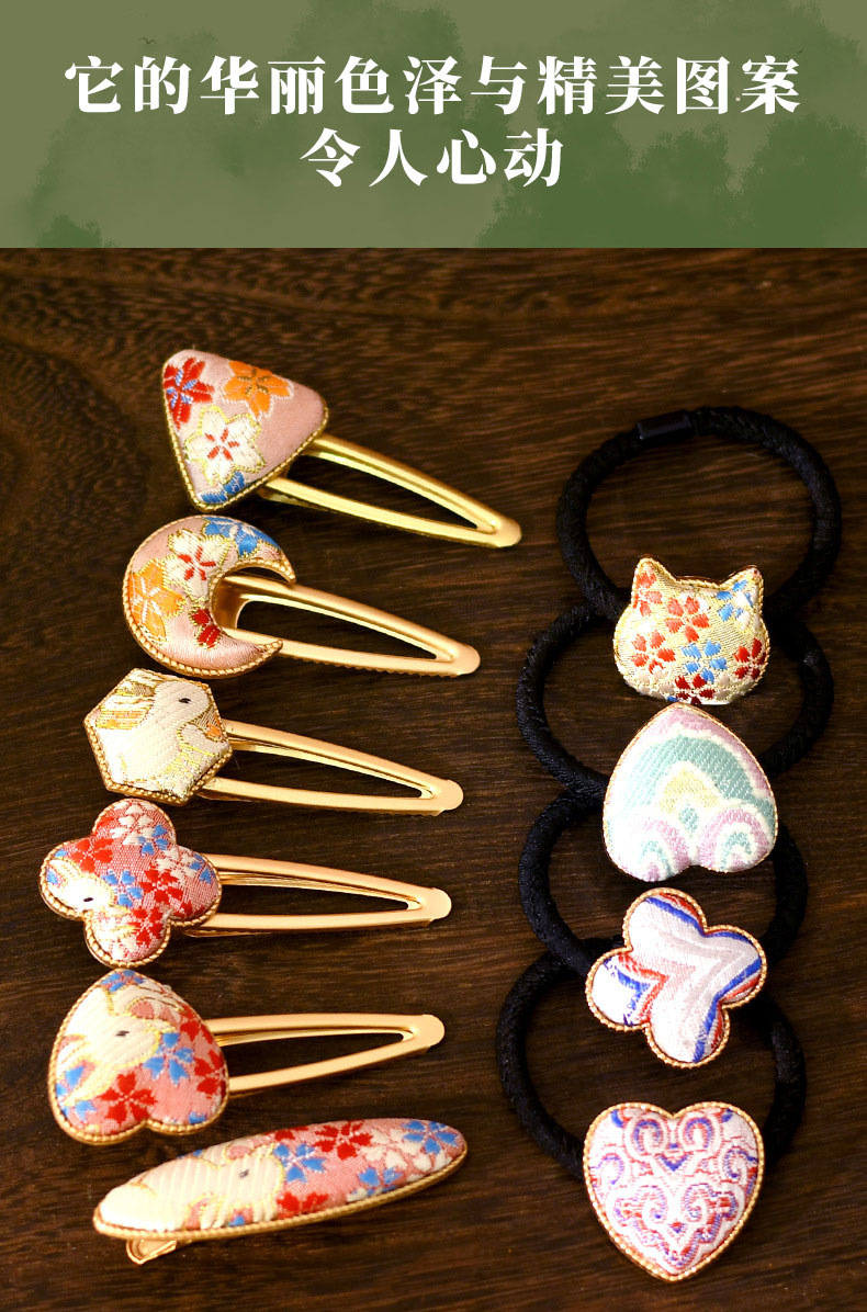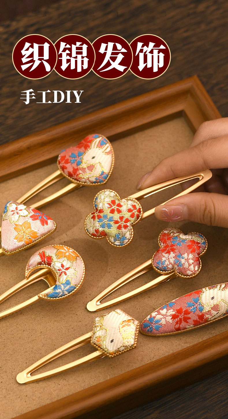 【织锦DIY发夹】非遗仿宋锦手工材料包新中式发饰配件仿刺绣织锦布贴发绳