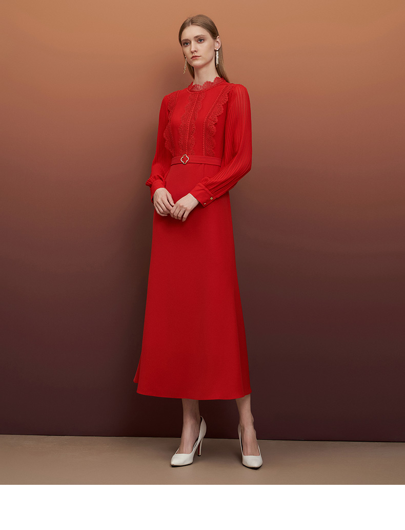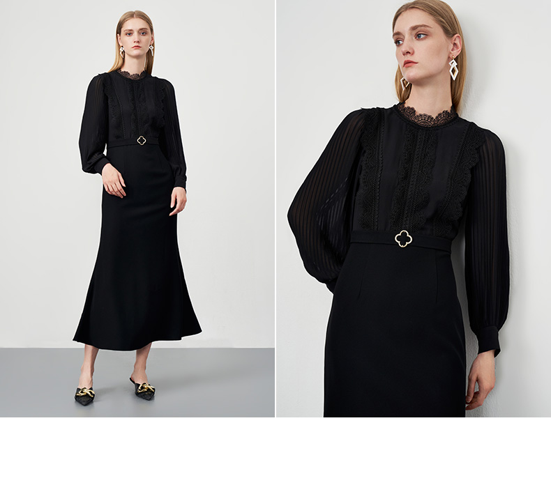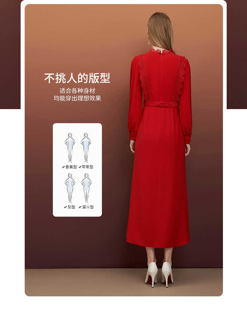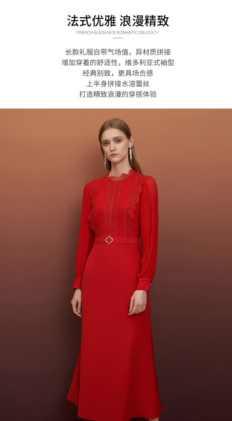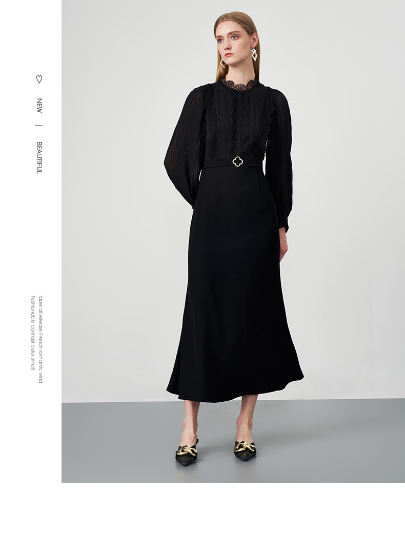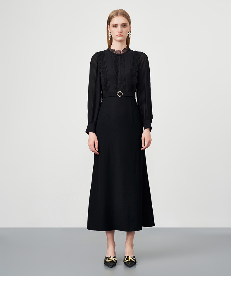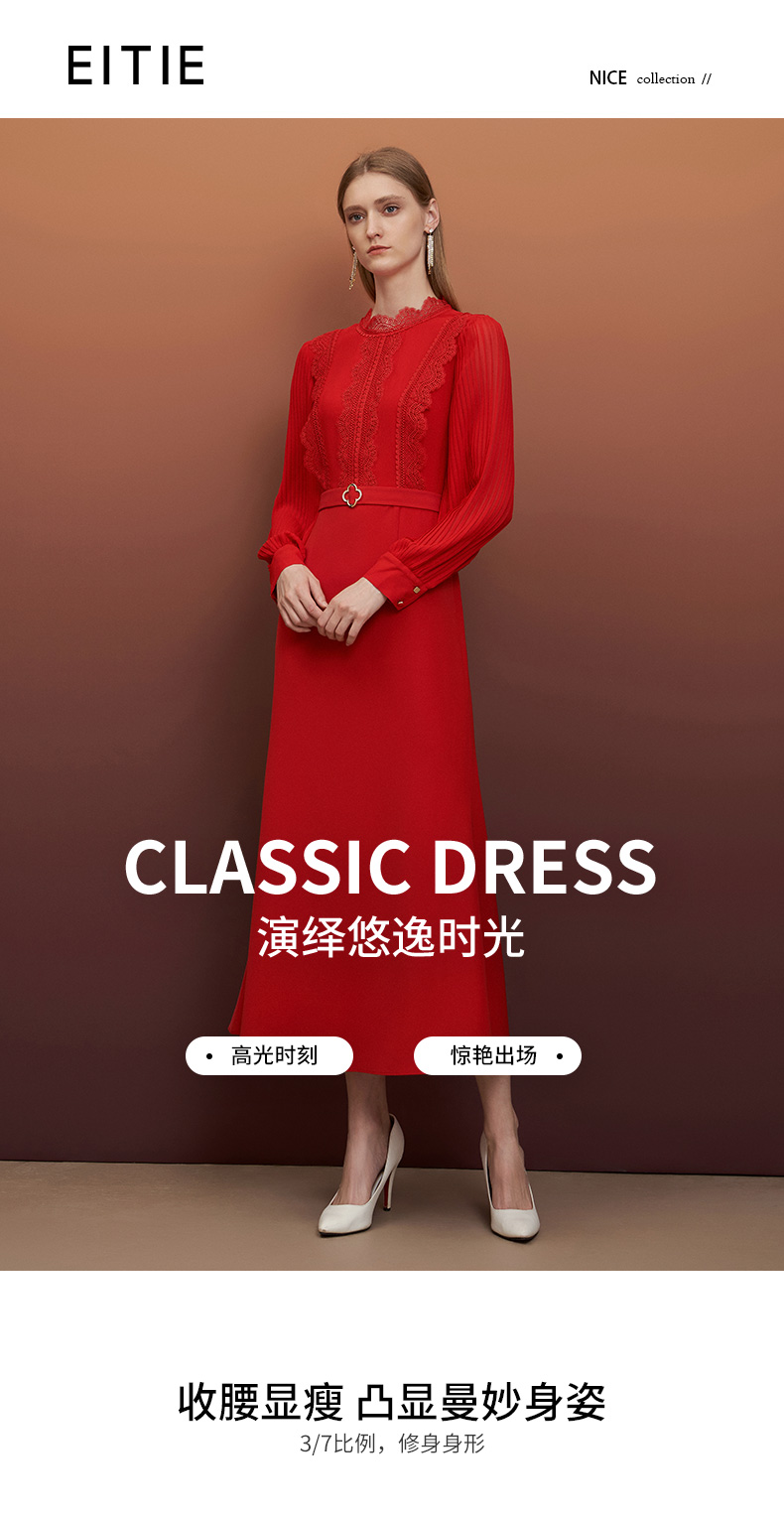 EITIE爱特爱秋季新款束腰长袖优雅显瘦连衣裙6777407