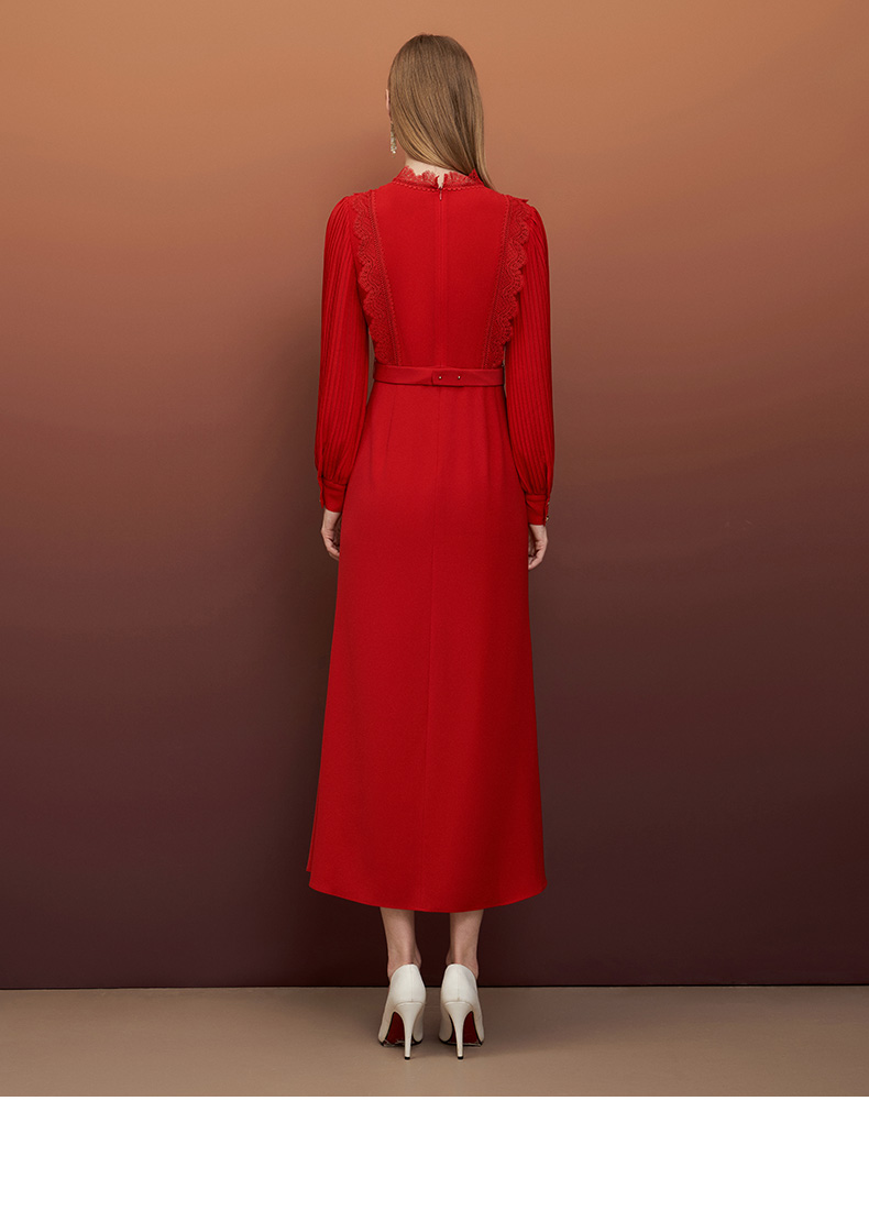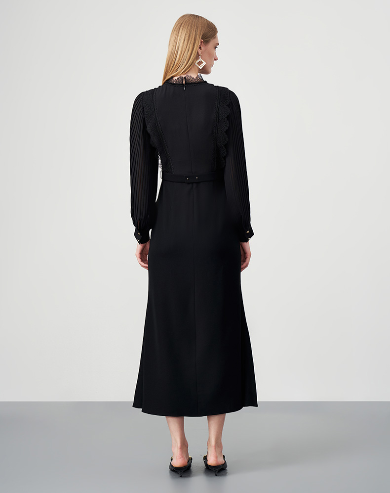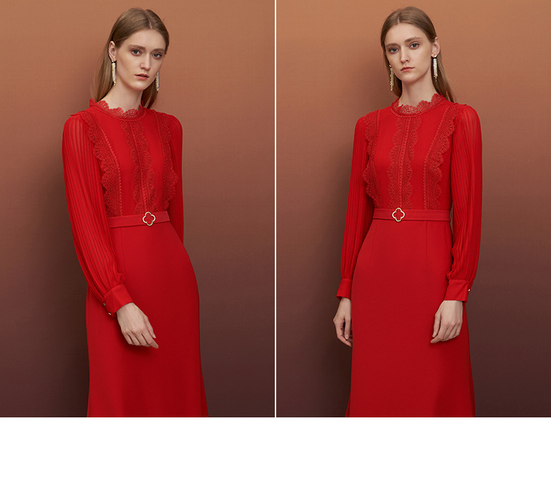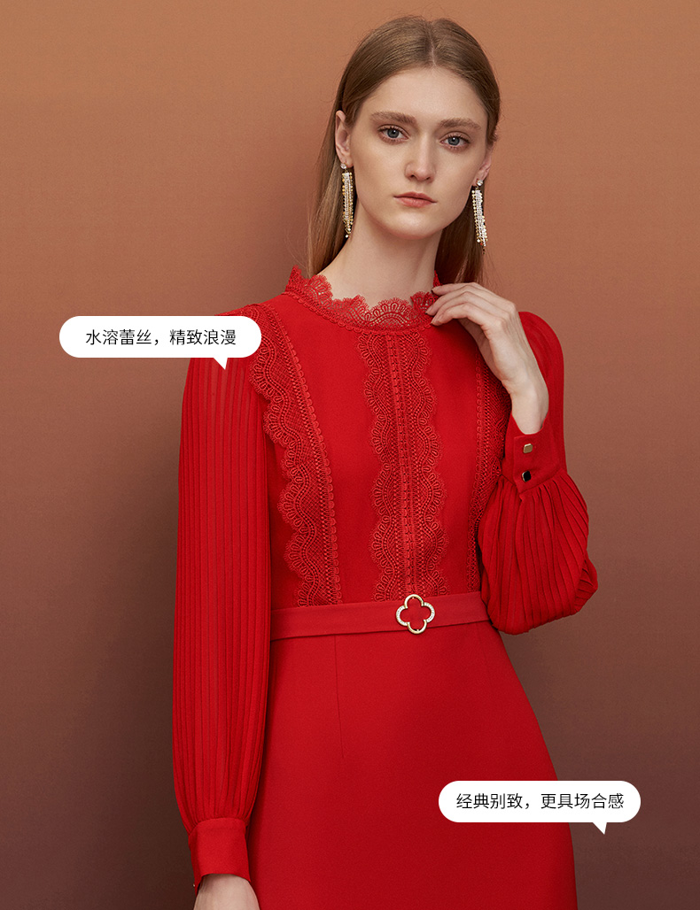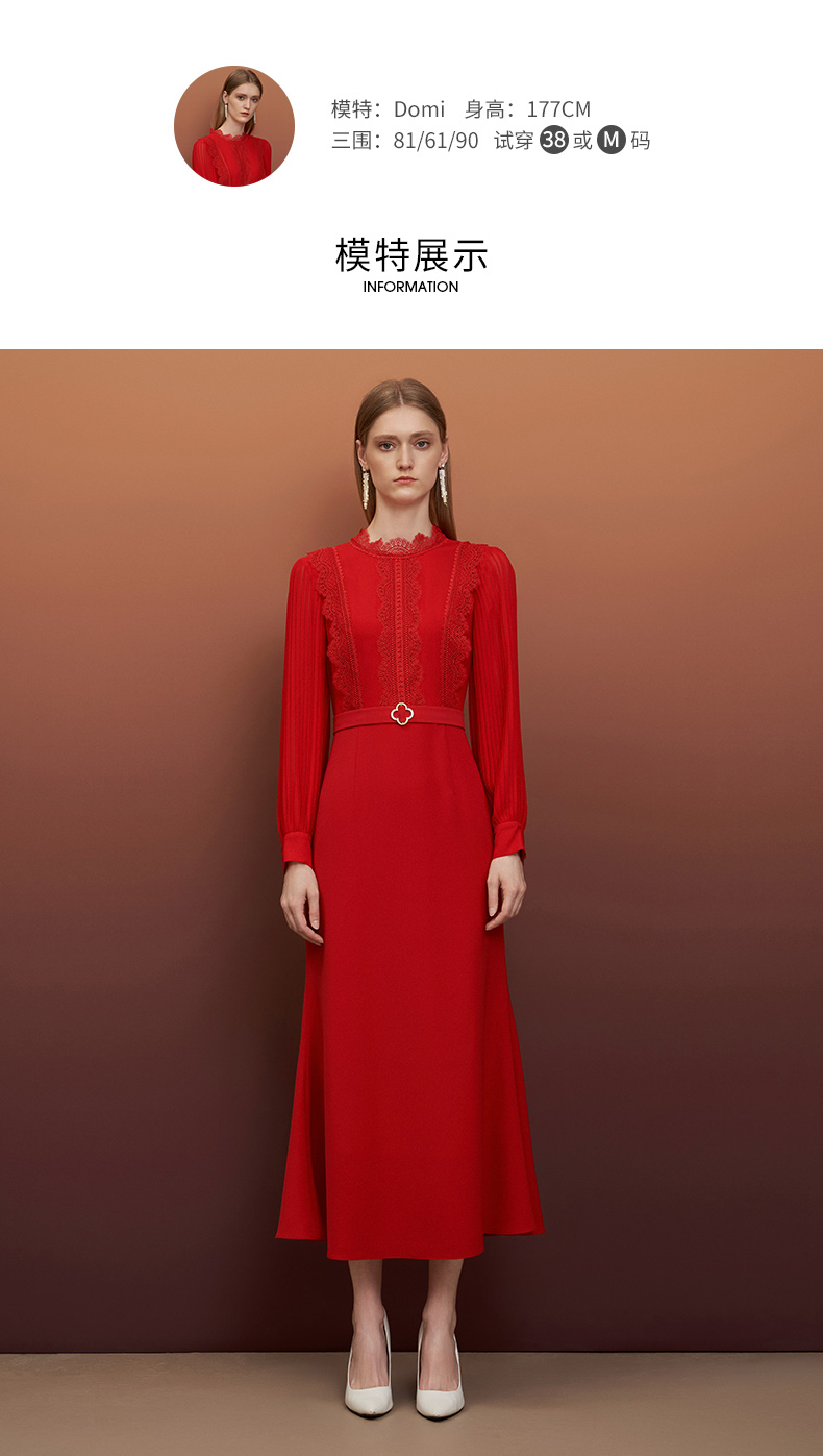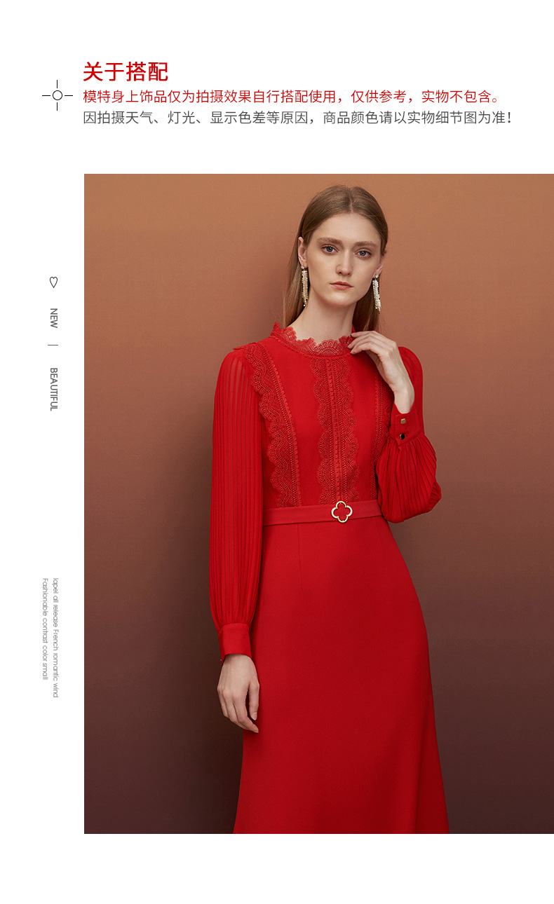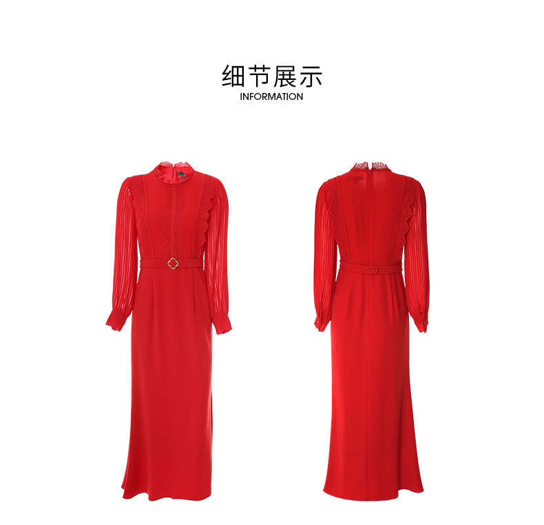 EITIE爱特爱秋季新款束腰长袖优雅显瘦连衣裙6777407