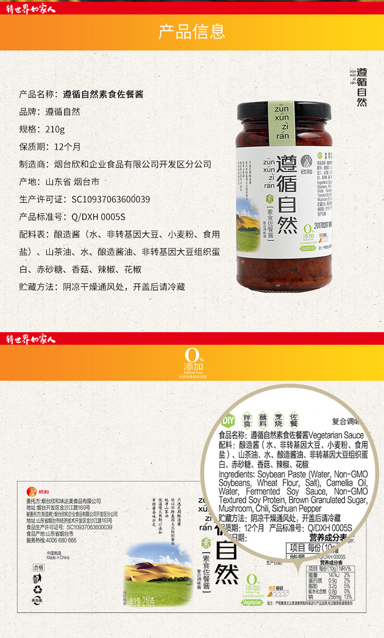 遵循自然 素食佐餐酱 210g