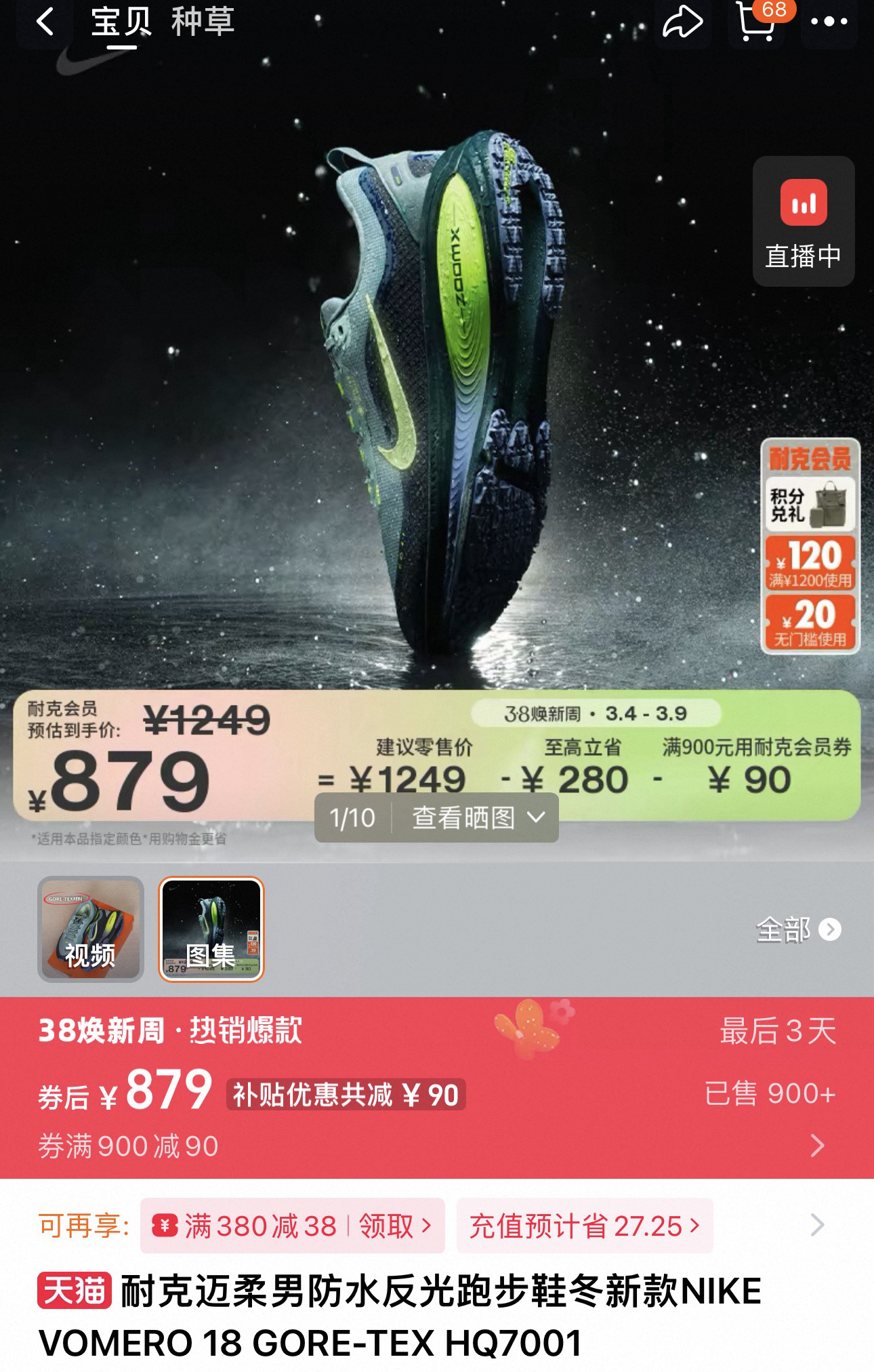 💰289顺丰包邮 最高版本,新款耐克VOMERO 18 GORE-TEX男女款防水运动鞋~官网在售原价1290 同步5⃣️色, 自留款,可直接送人!