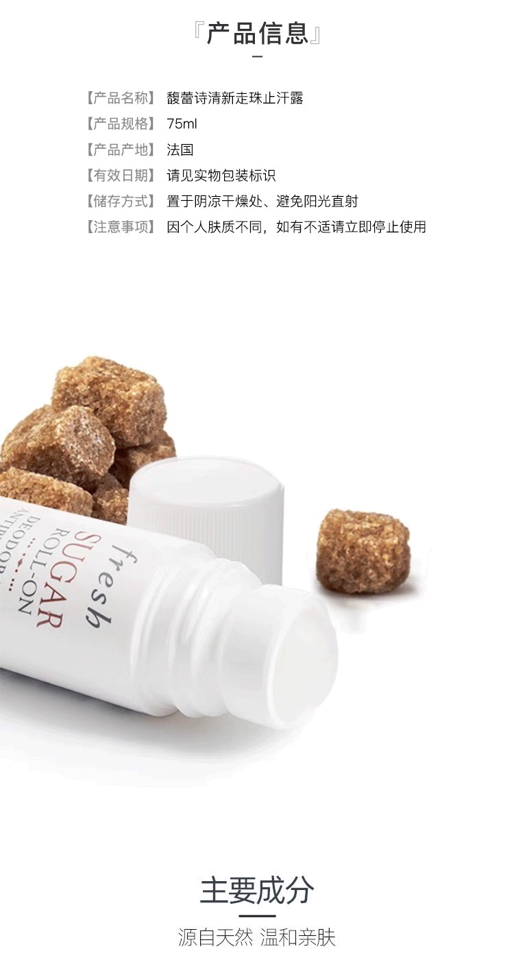 商品信息 —— I N F O R M A T I O N —— 购买须知: 【品牌】:Fresh馥蕾诗【商品名称】:【滚珠止汗露 清晰腋下】Fresh馥蕾诗黄糖走珠止汗露75ml 一般贸易 【原产国】:法国(以实际收到为准) 【规格】:75ml*1 75ml*2 【生产批号/限期使用日期】: LA4R02 有效期:20270401 【注!!!】批次更新较快,具体以实收批次日期为准 【保存方法】:常温保存 【包装方式】:裸妆(无包装盒无塑封) 【发货时效】:正常72小时内 【发货地区】: 广东 【配送快递】:韵达快递 【运费标准】:全国包邮,新疆 西藏+20 【售后说明】:支持七天无理由退换(未拆封且配件齐全,不影响二次销售);质量问题,我司承担退换运费;非质量问题,客户承担退换运费。 【注意事项】:使用后盖好盖子,请置于婴幼儿触及不到之处,请勿于极高温度、极低温度下或日光直射处存放。 |