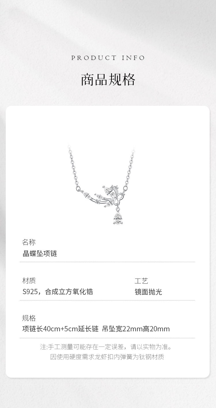 Winy s925银晶蝶坠项链送女朋友/老婆/闺蜜生日节日礼物