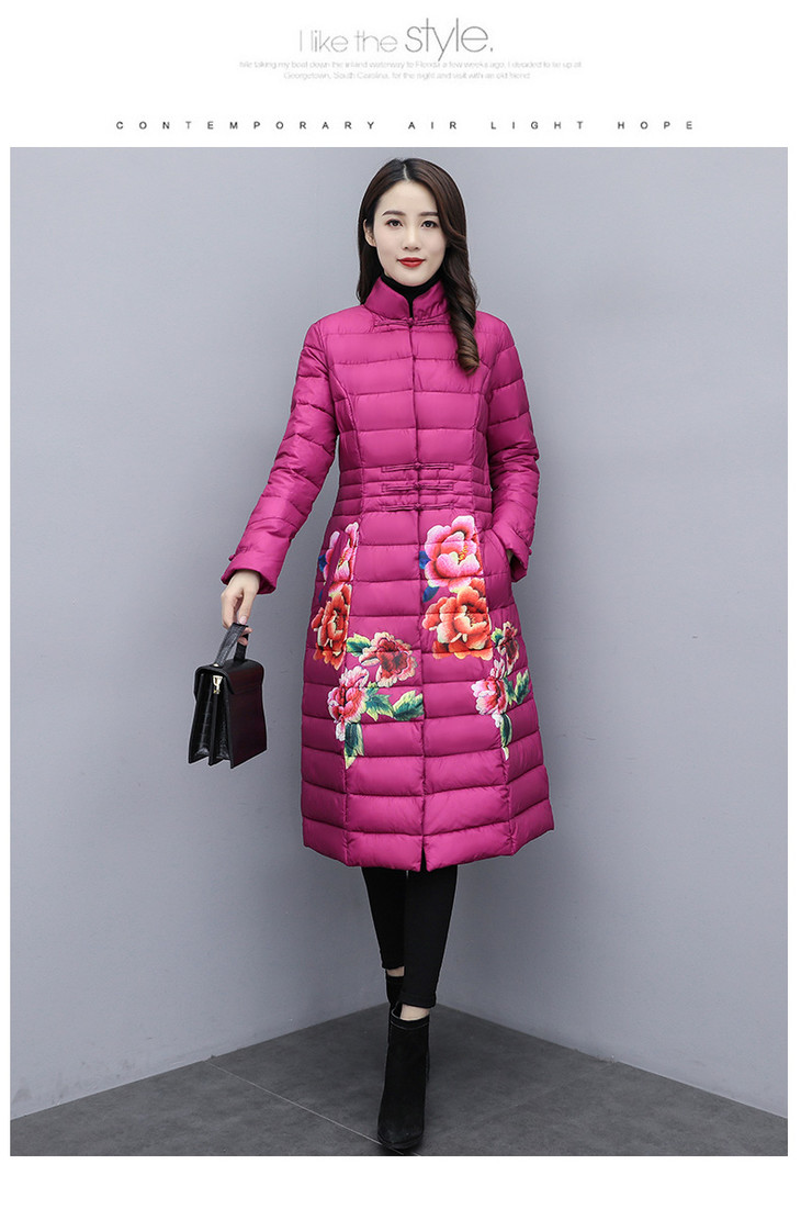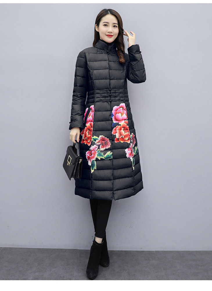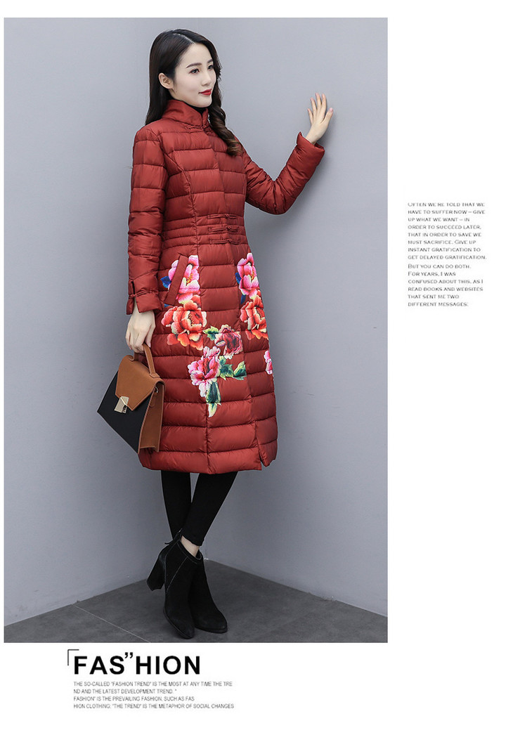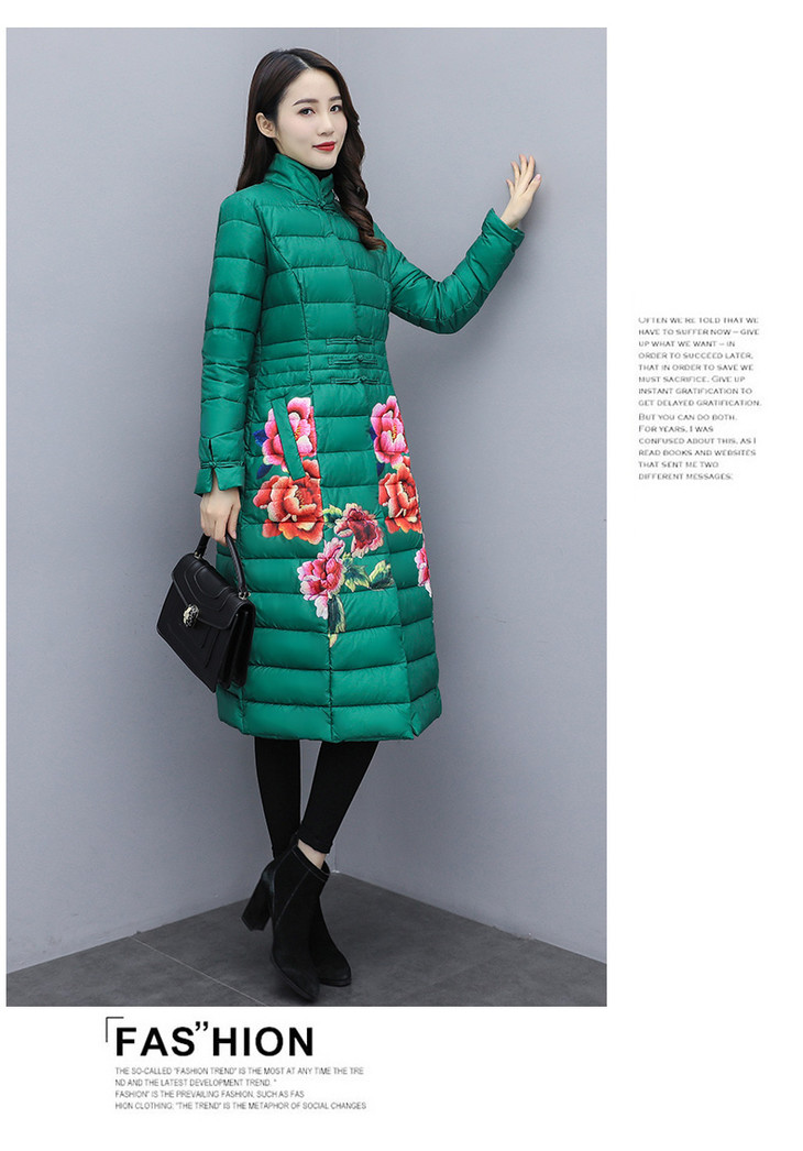CQ-SYG925收腰显瘦长款立领盘扣印花棉服