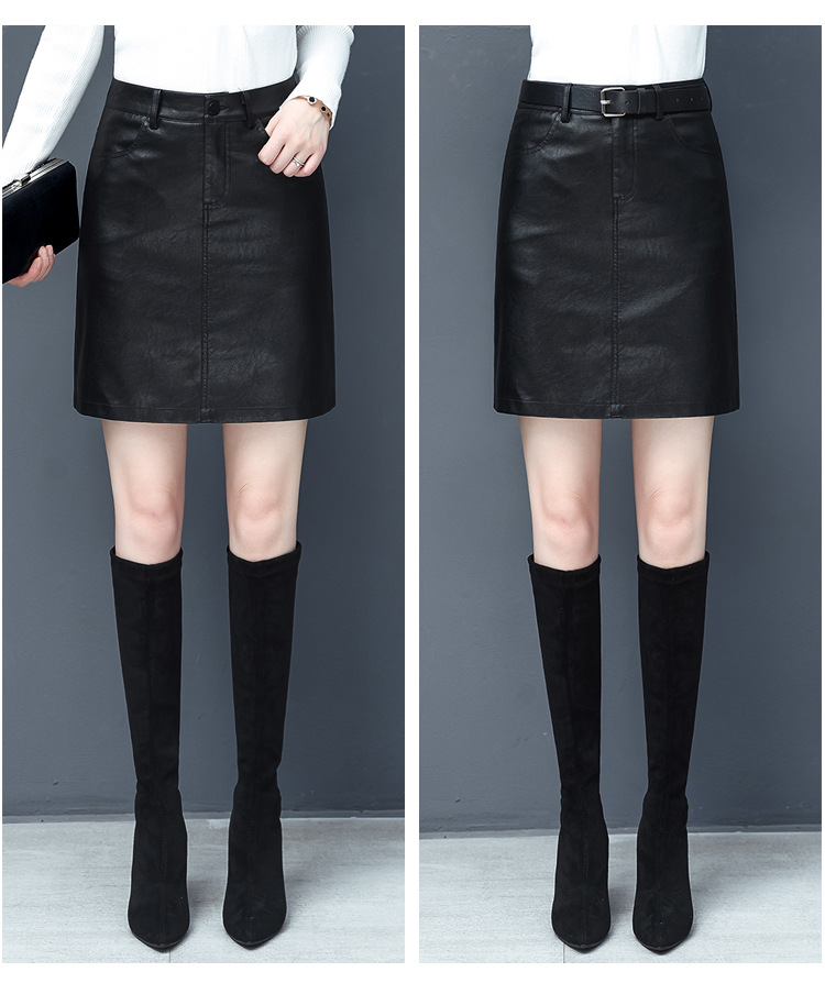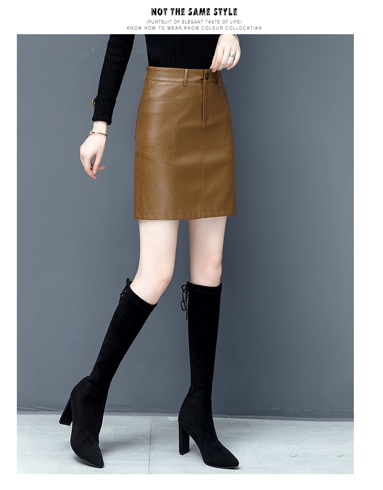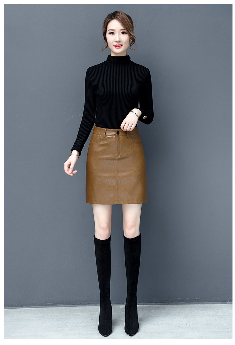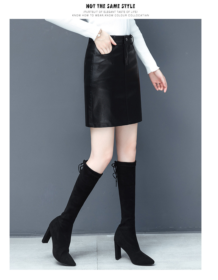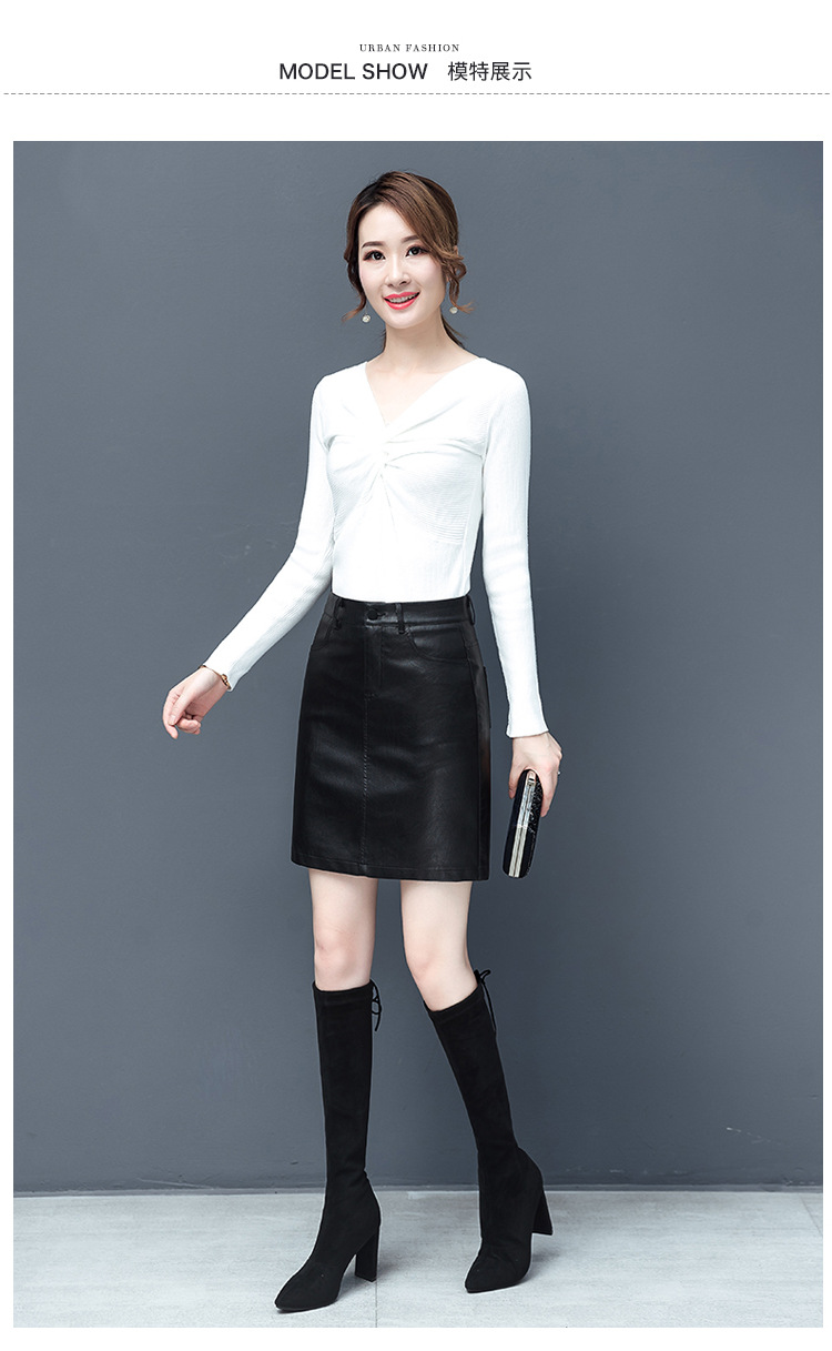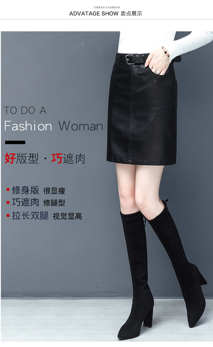 ZMYP-895皮裙女绵羊皮中裙气质显瘦包臀半身裙