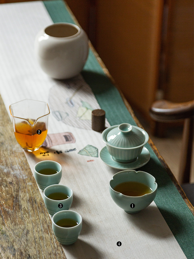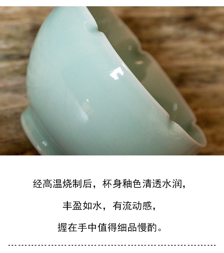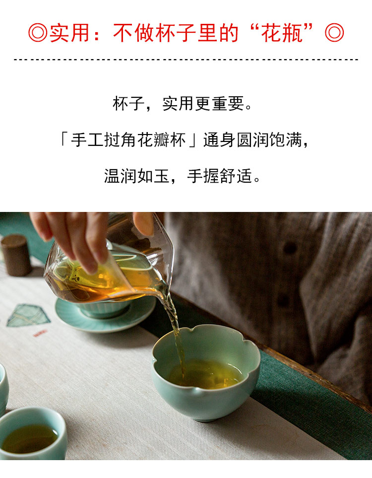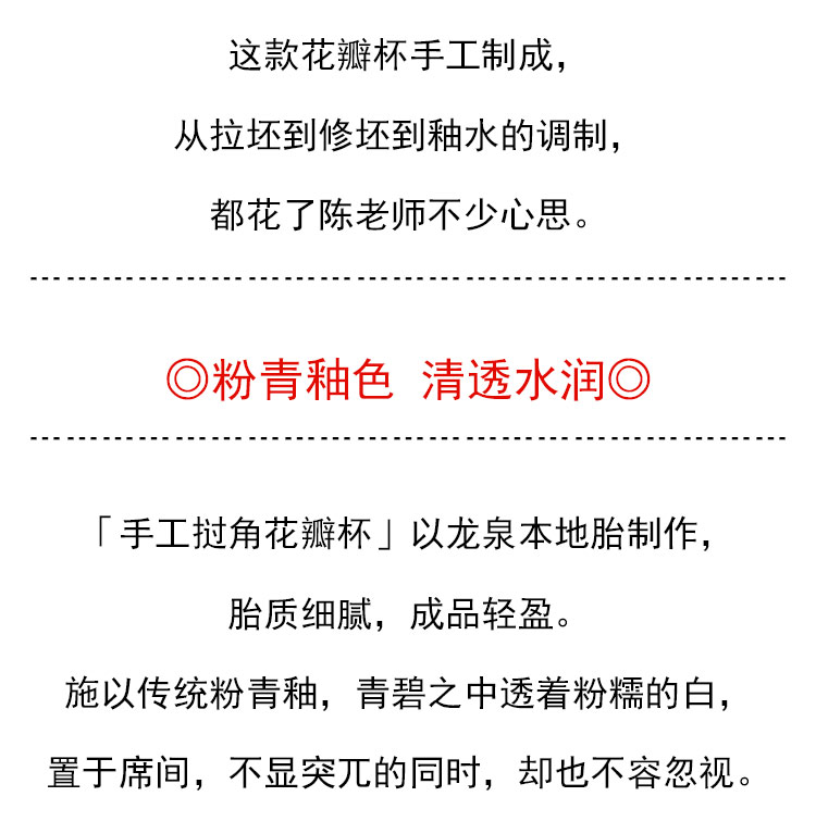 茶香记 龙泉陈均林手工挝角花瓣杯140ml粉青釉色清透水润茶杯品杯