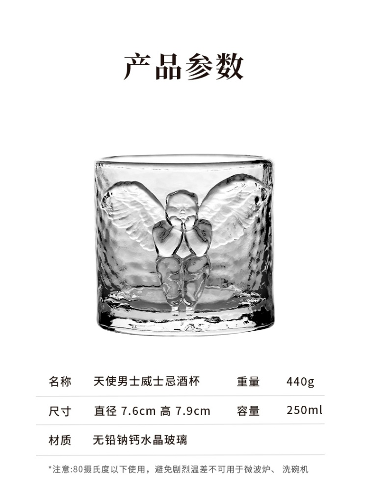 稀奇艺术天使浮雕清酒杯威士忌洋酒玻璃杯冷饮杯