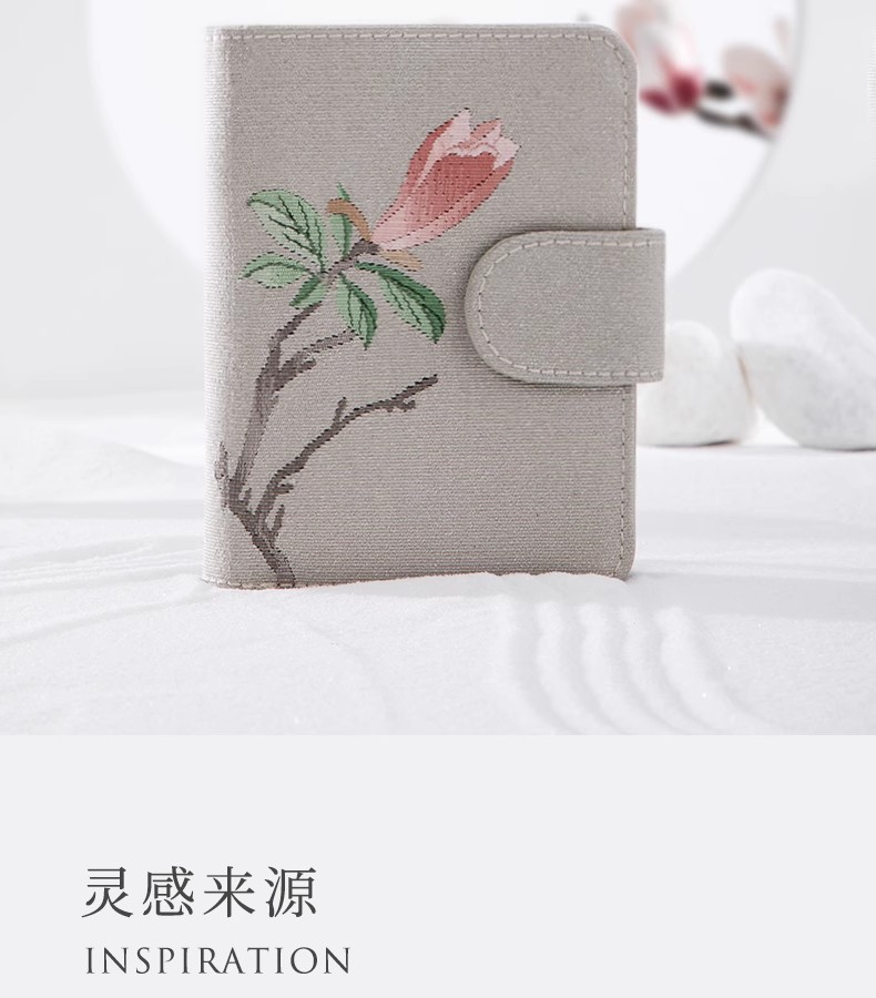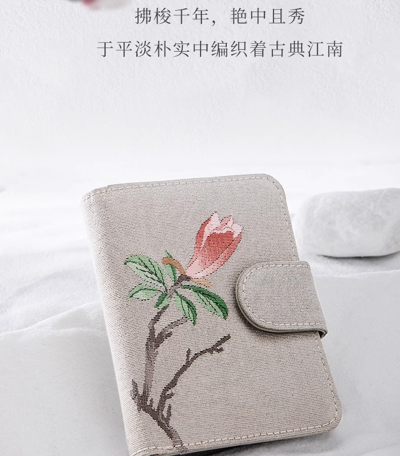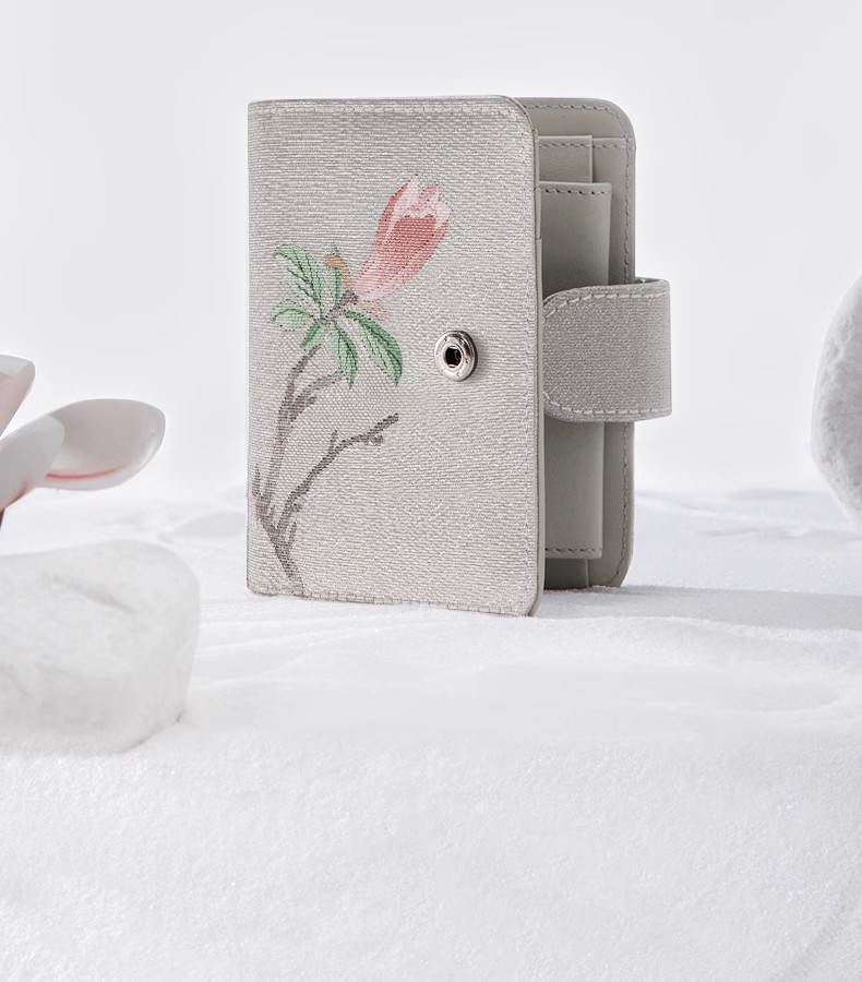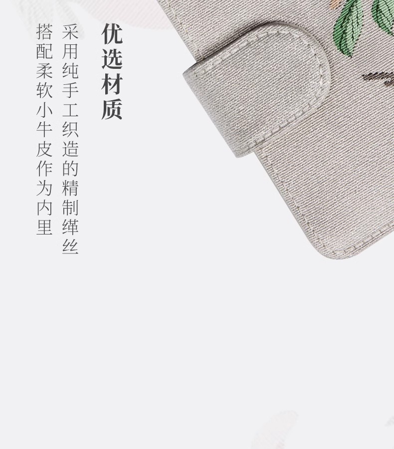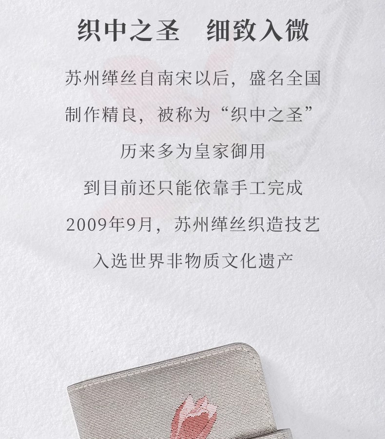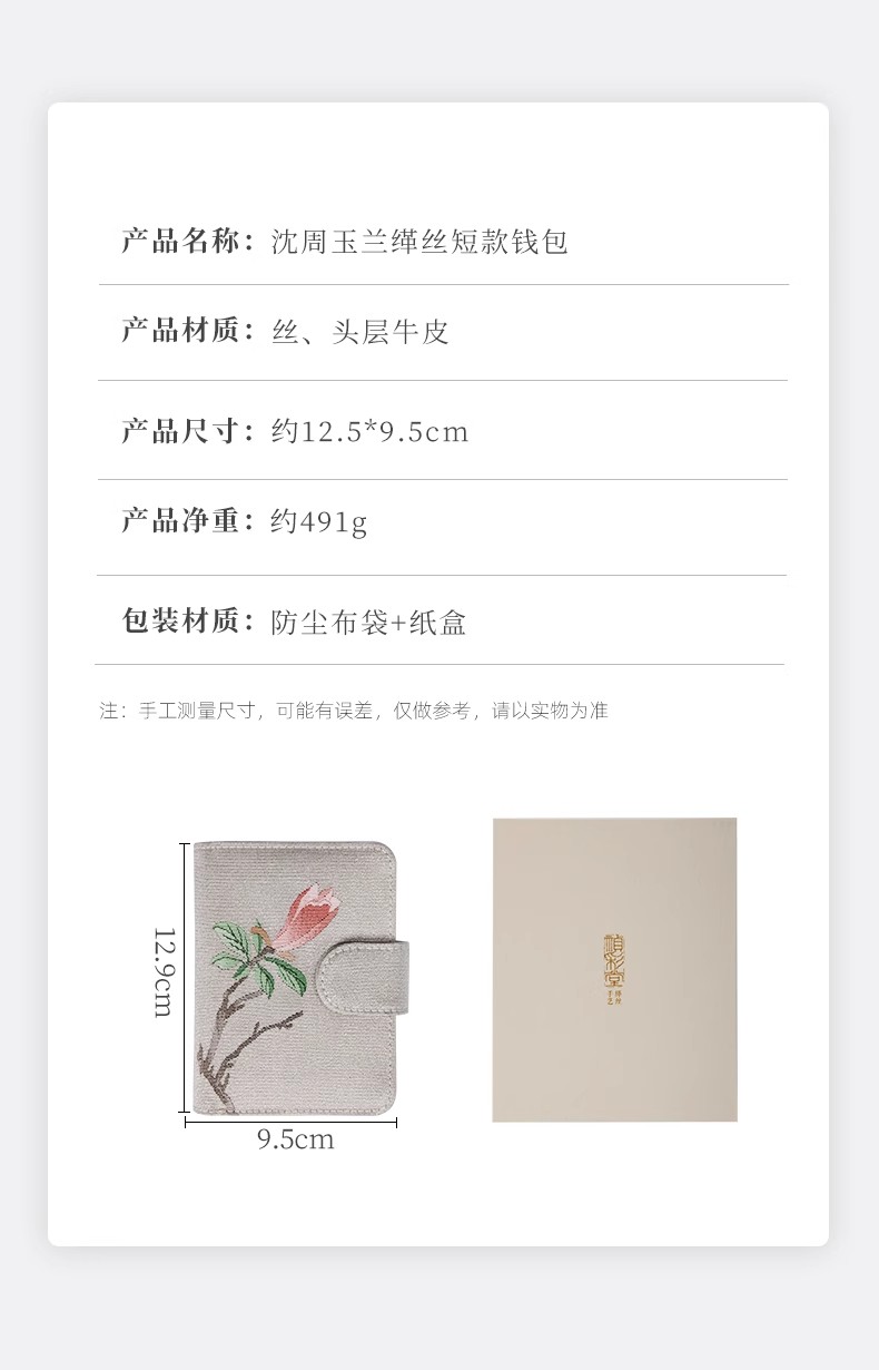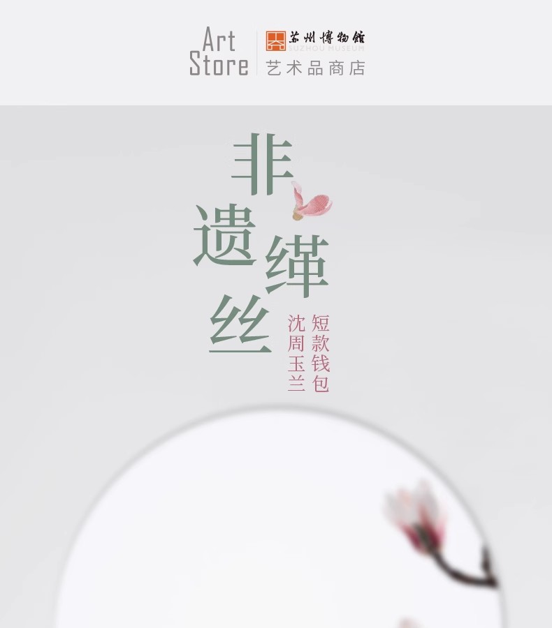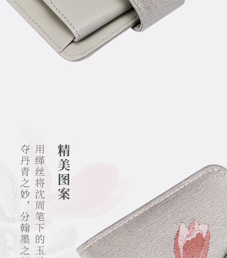 苏州博物馆 缂丝真皮短款钱包(沈周玉兰)