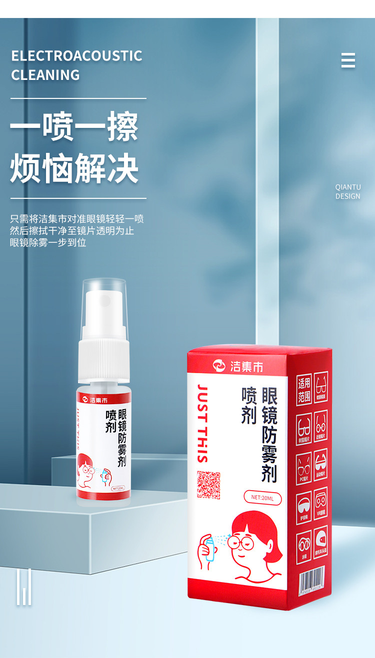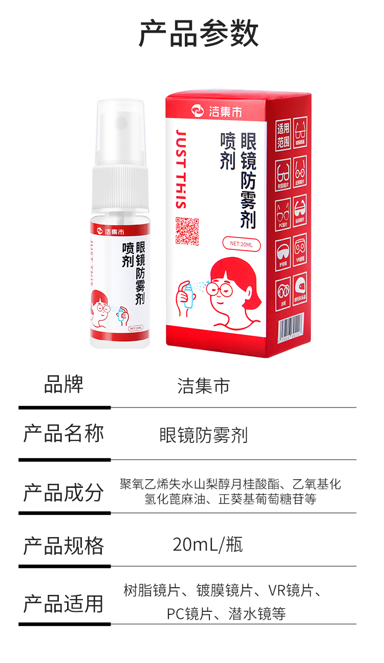 【小巧方便携带】洁集市JUSTTHIS眼镜防雾喷雾轻松防雾安全不伤眼温和不刺激