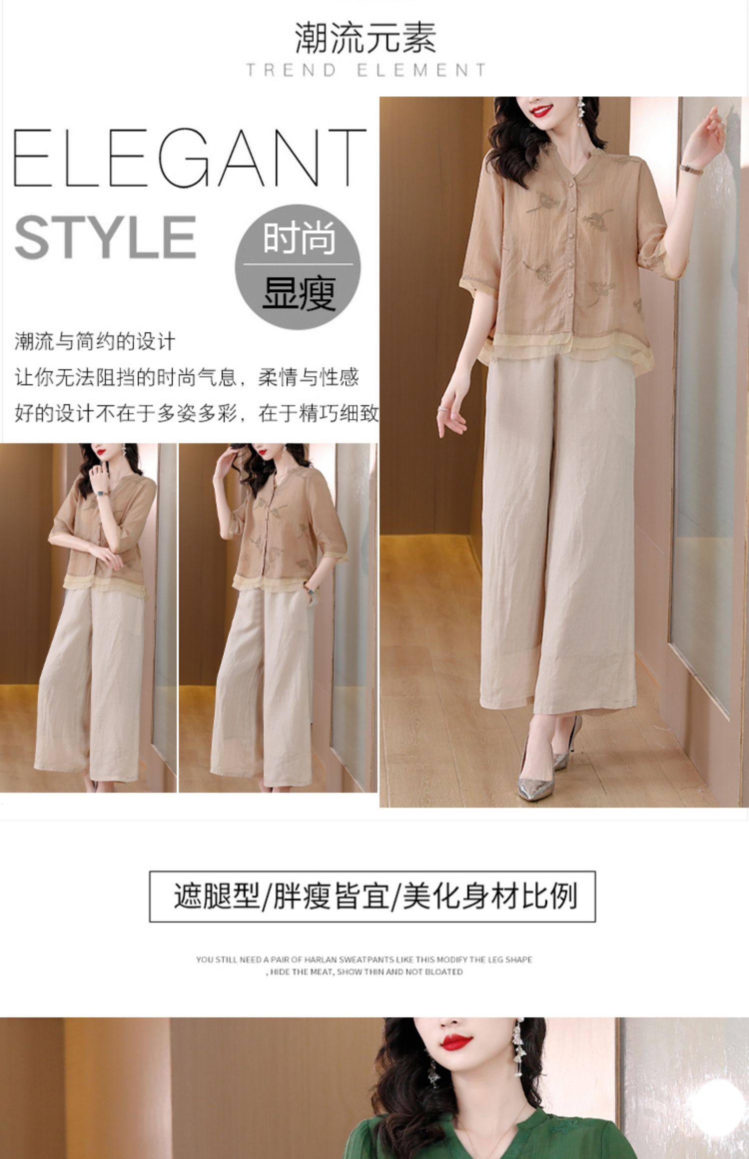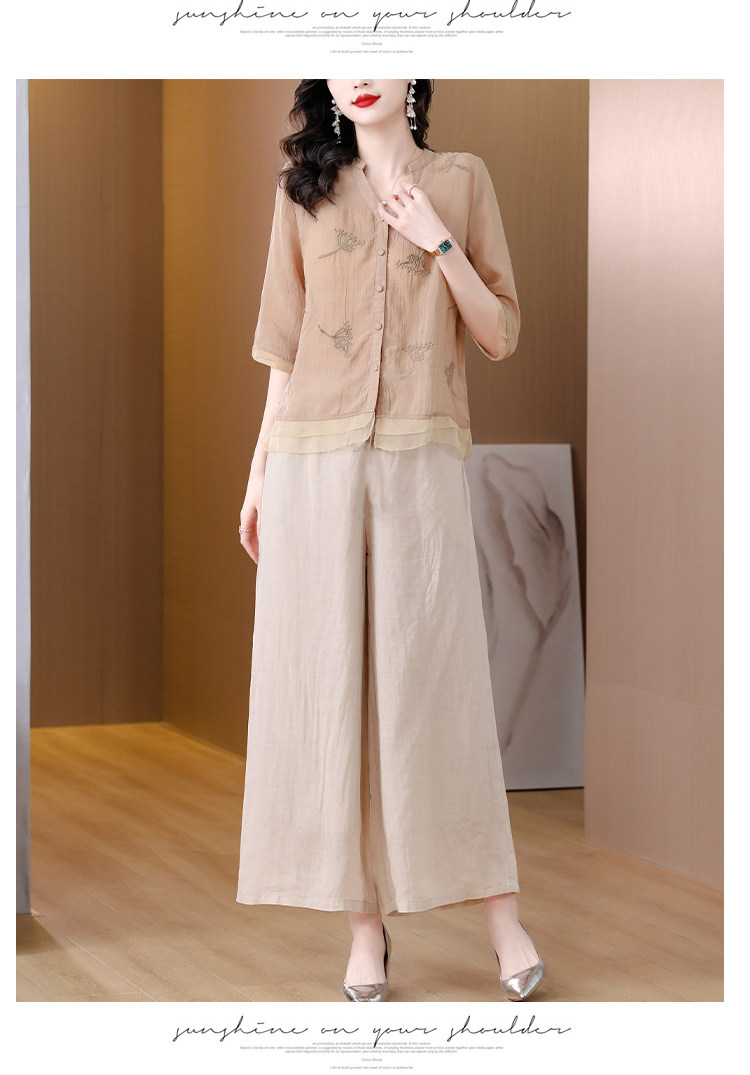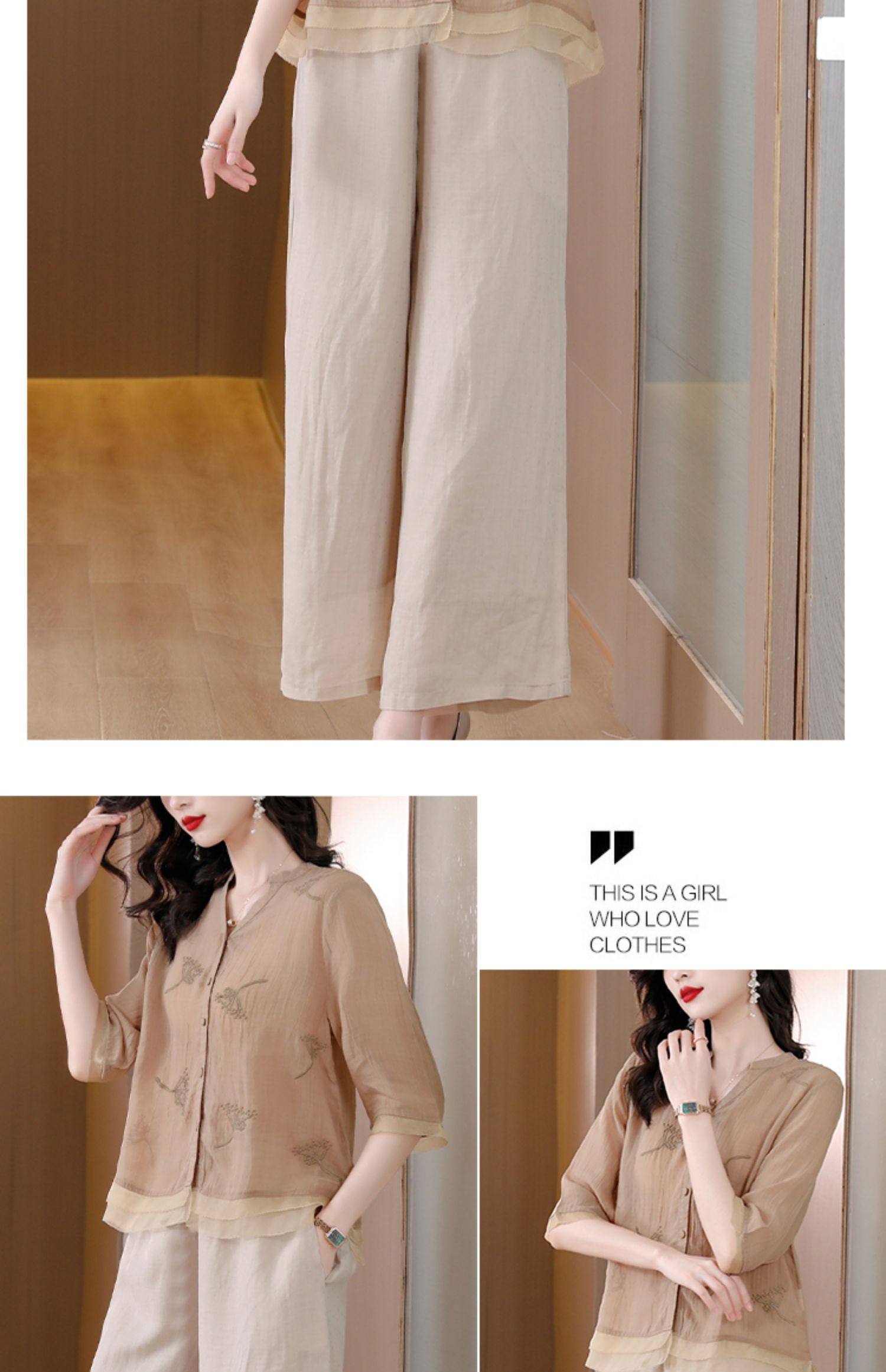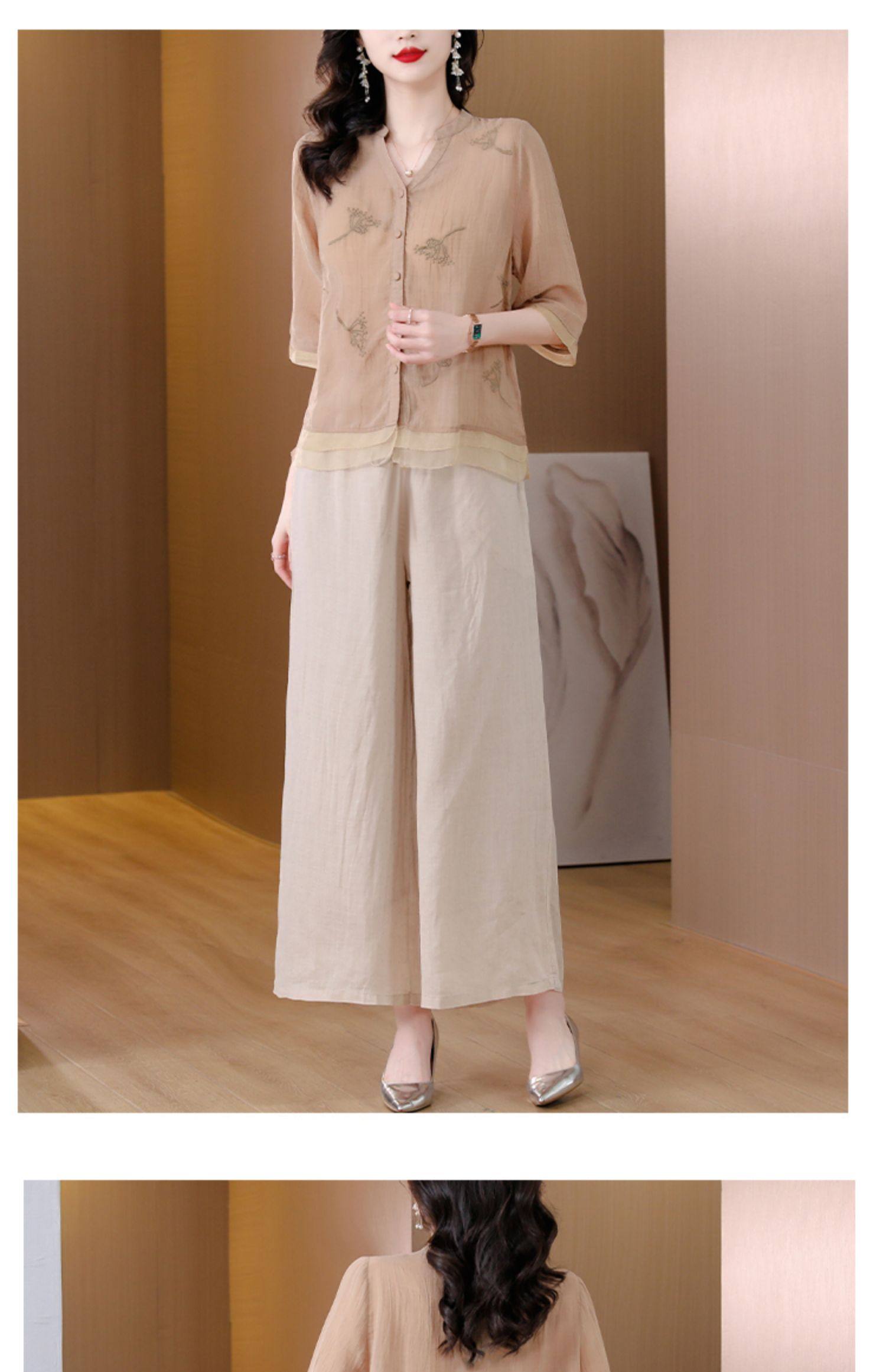 A9909薄款天丝棉麻套装女夏季2024新款阔太太中年妈妈宽松阔腿裤两件套