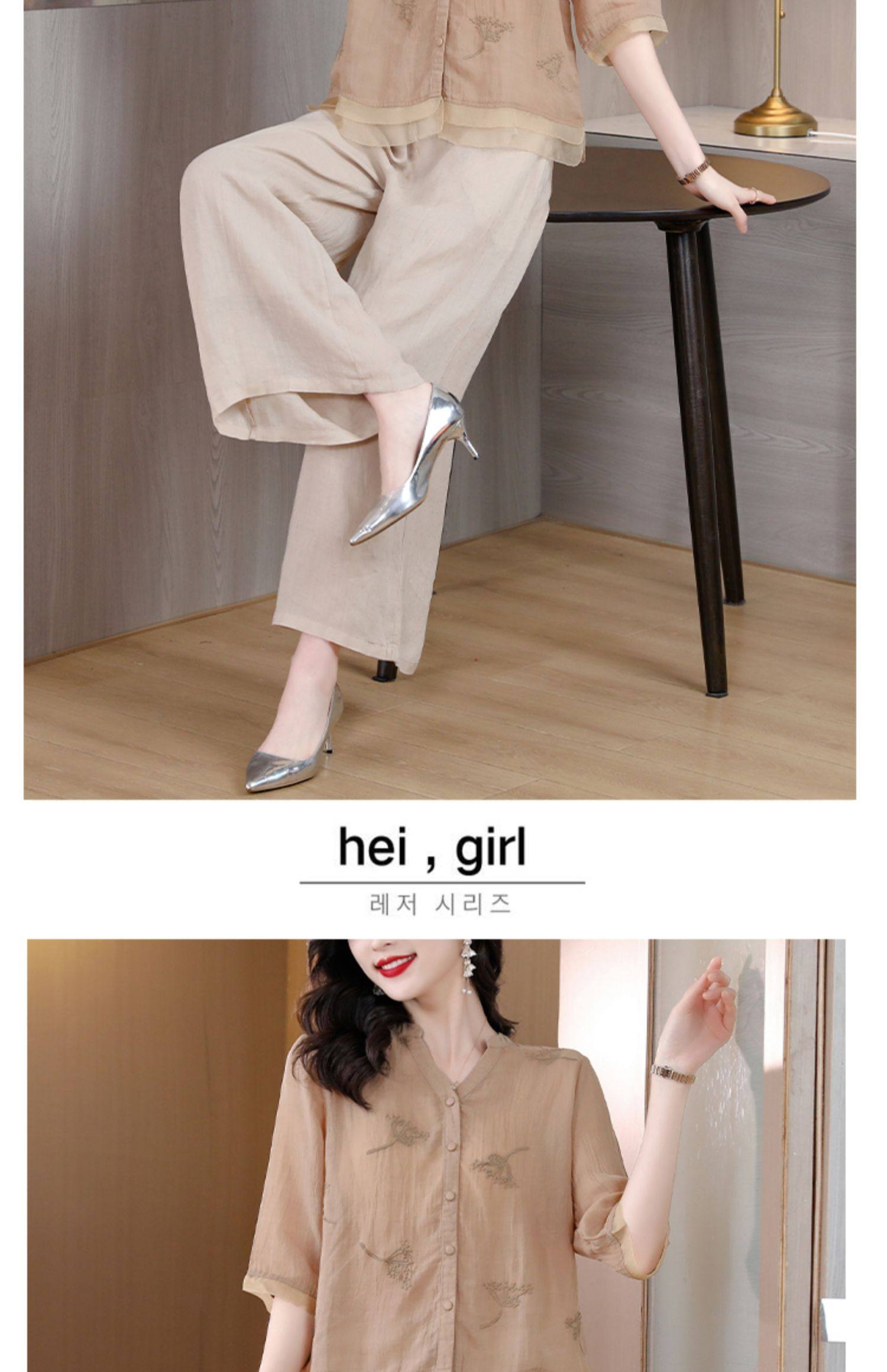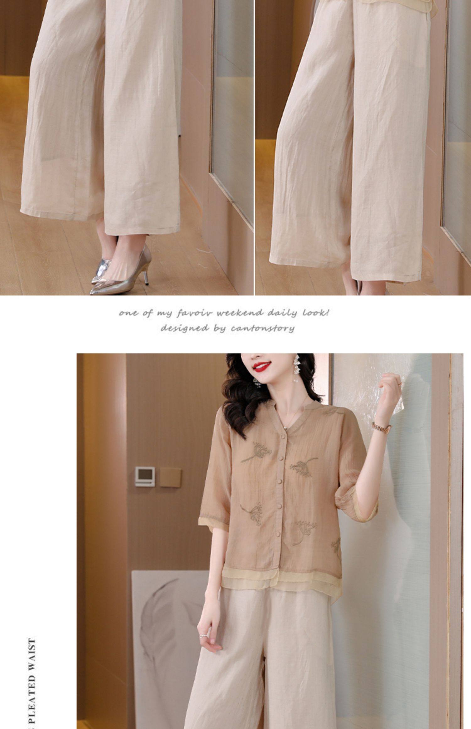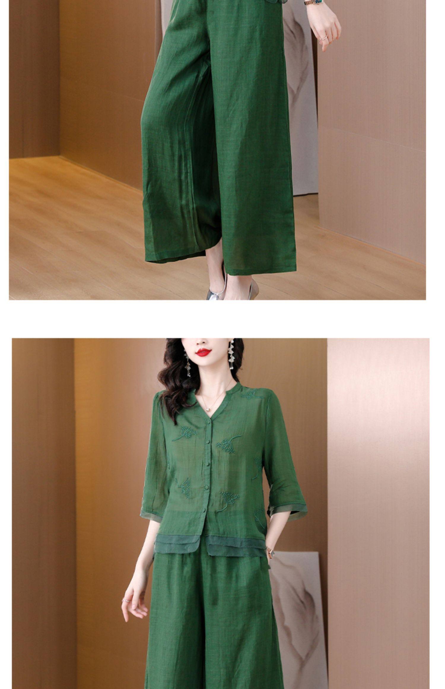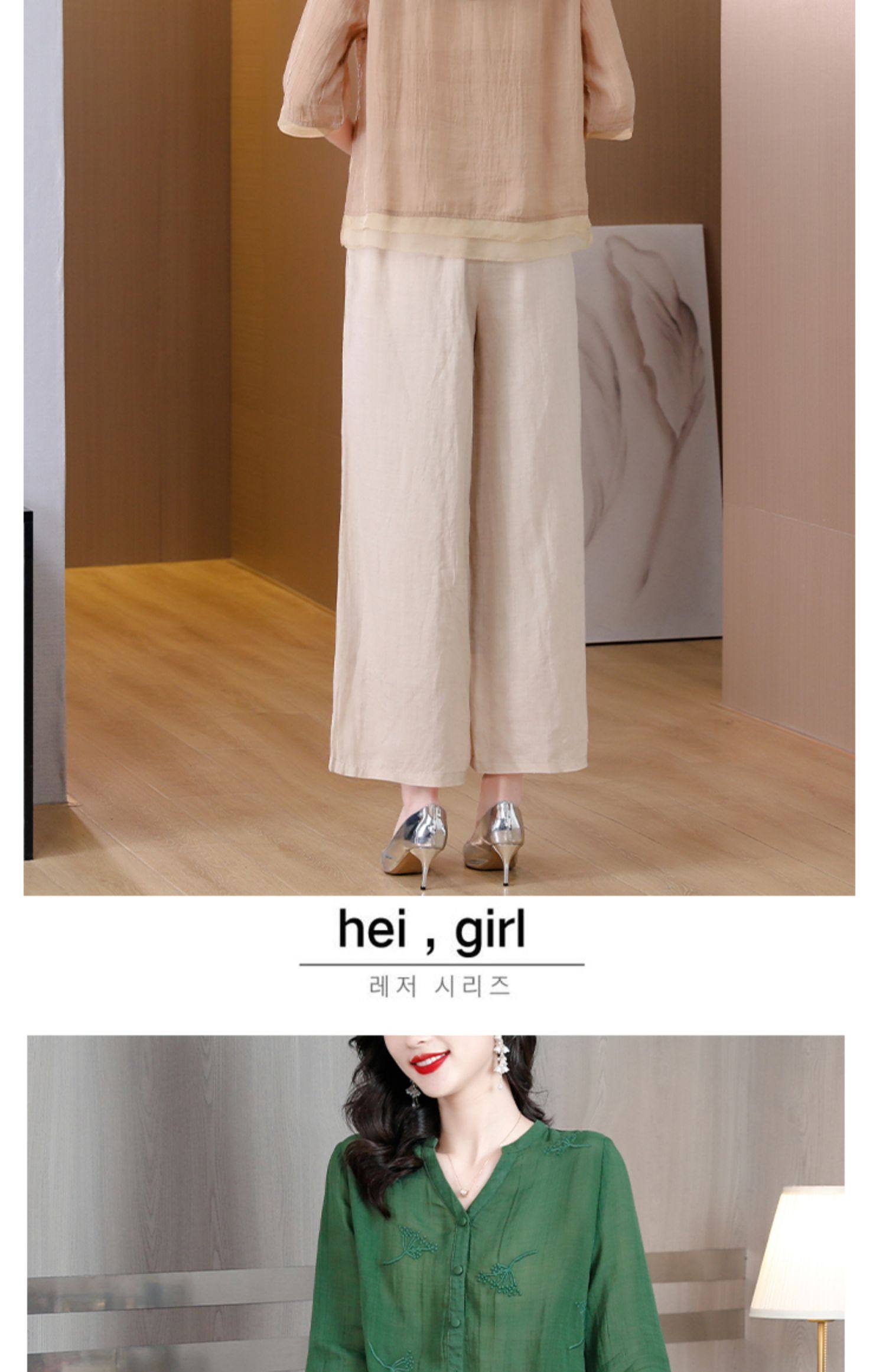 A9909薄款天丝棉麻套装女夏季2024新款阔太太中年妈妈宽松阔腿裤两件套