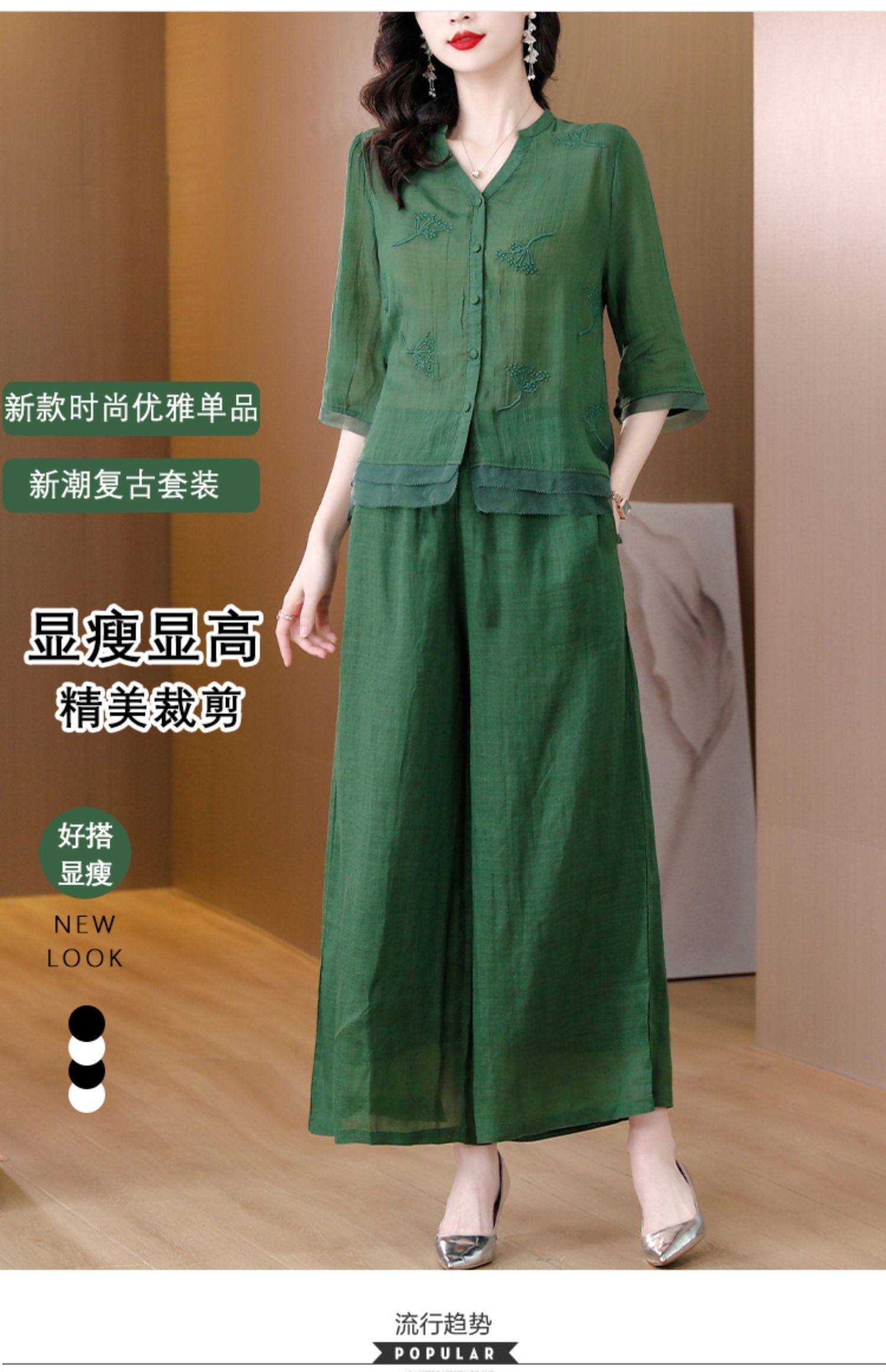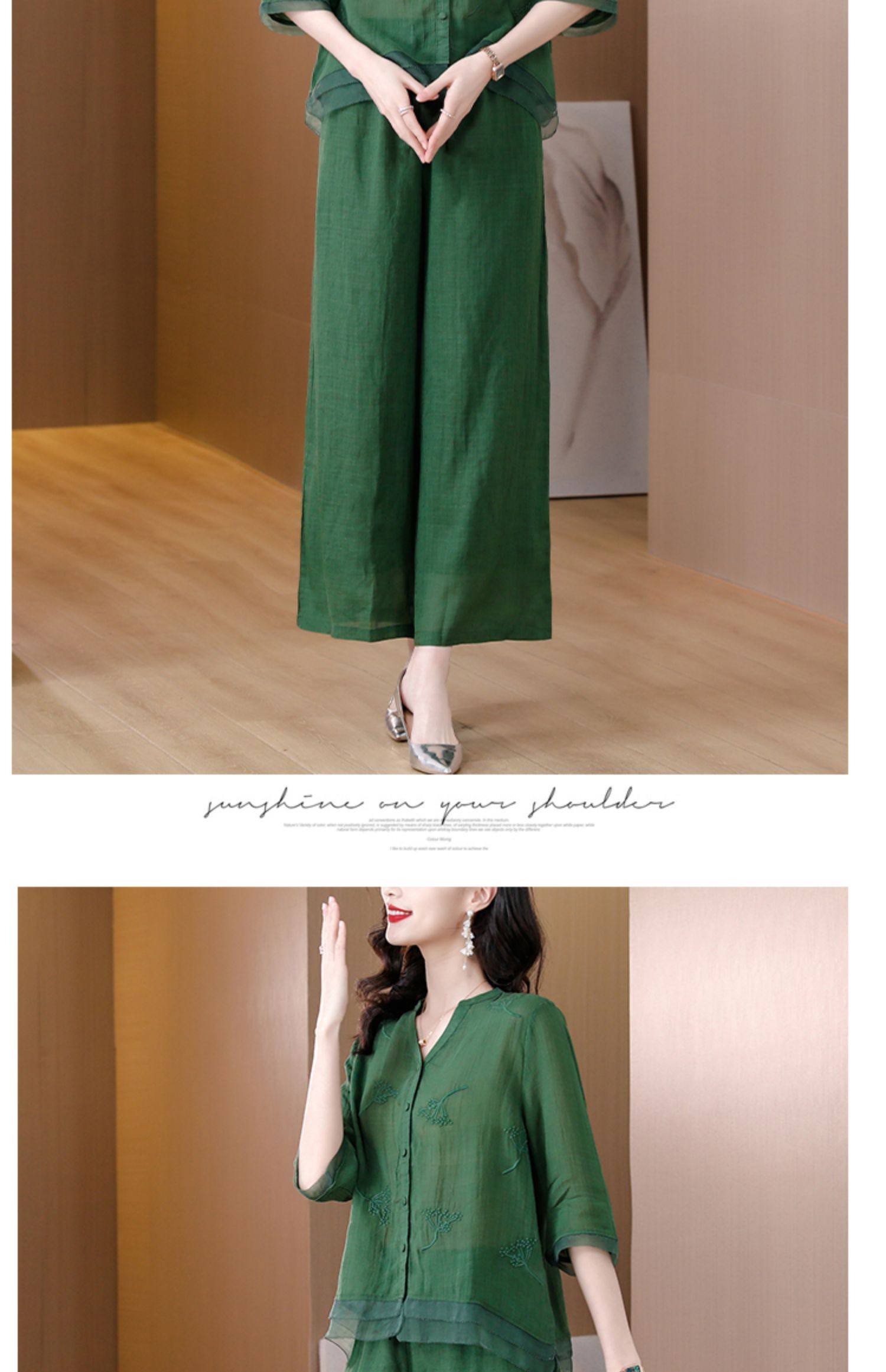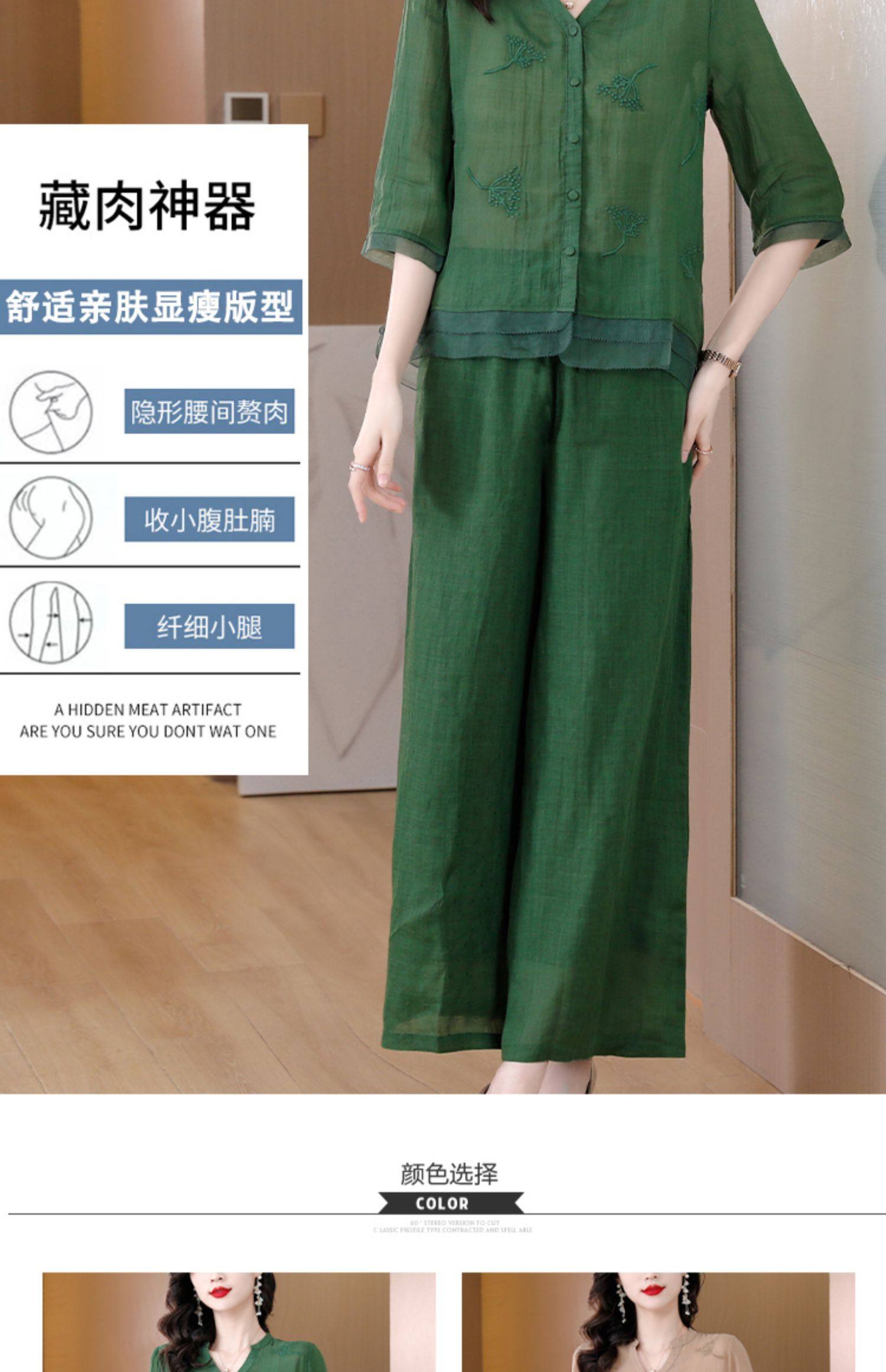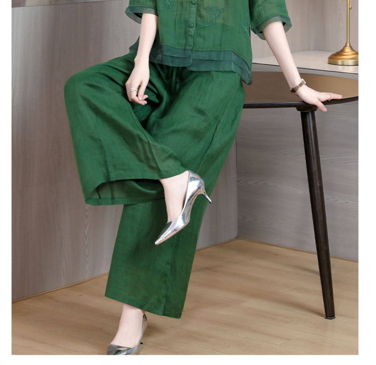 A9909薄款天丝棉麻套装女夏季2024新款阔太太中年妈妈宽松阔腿裤两件套