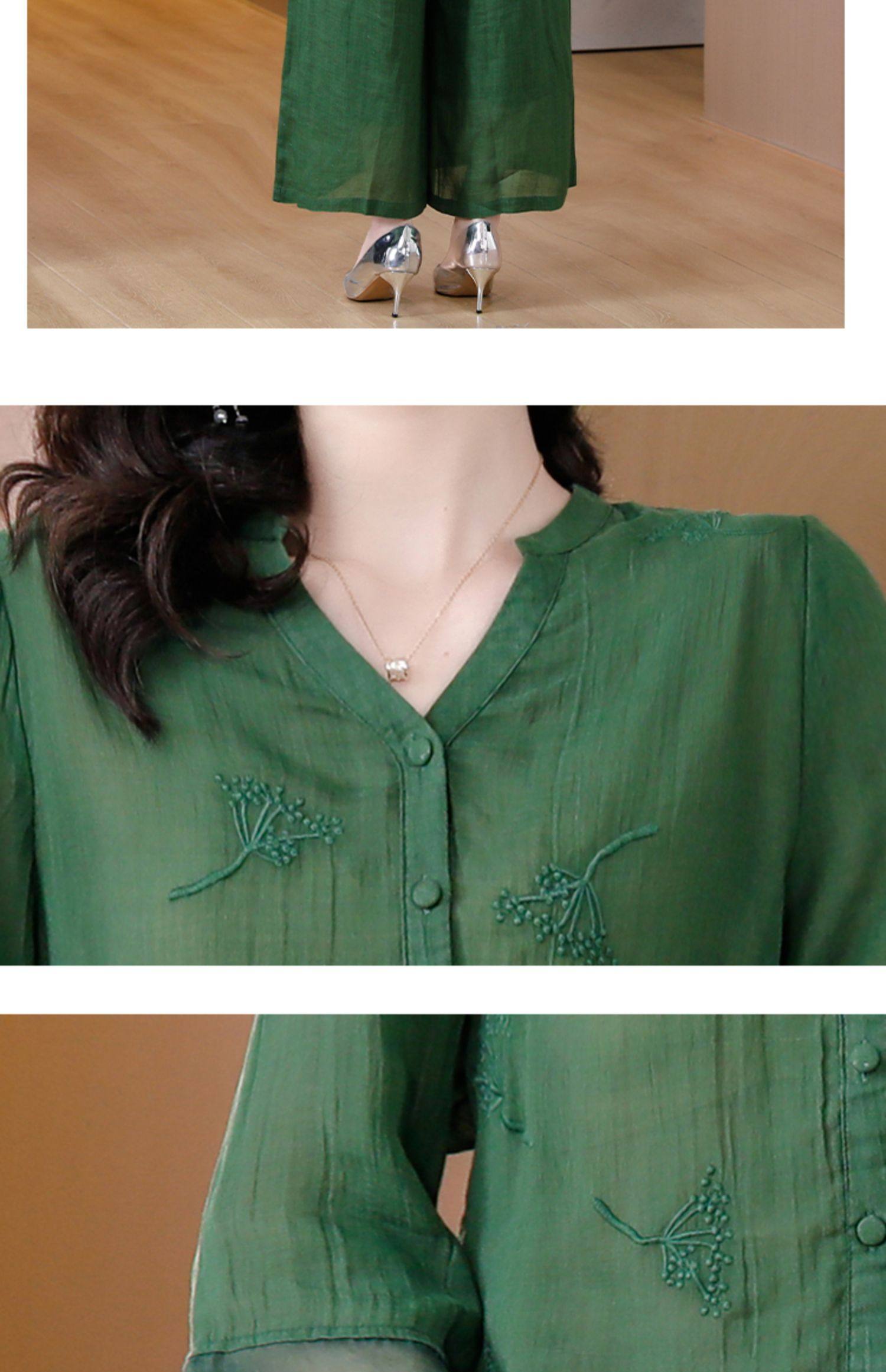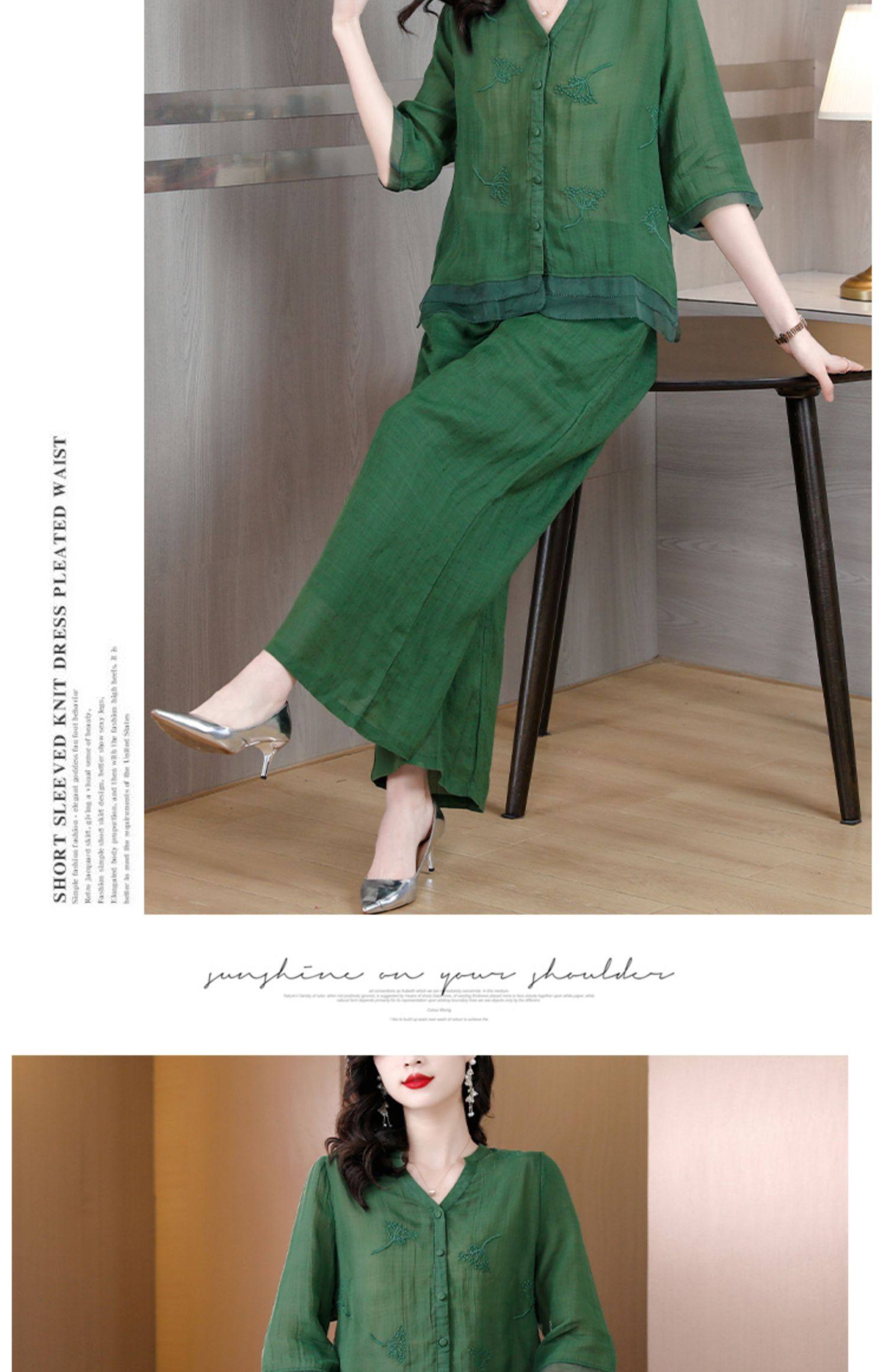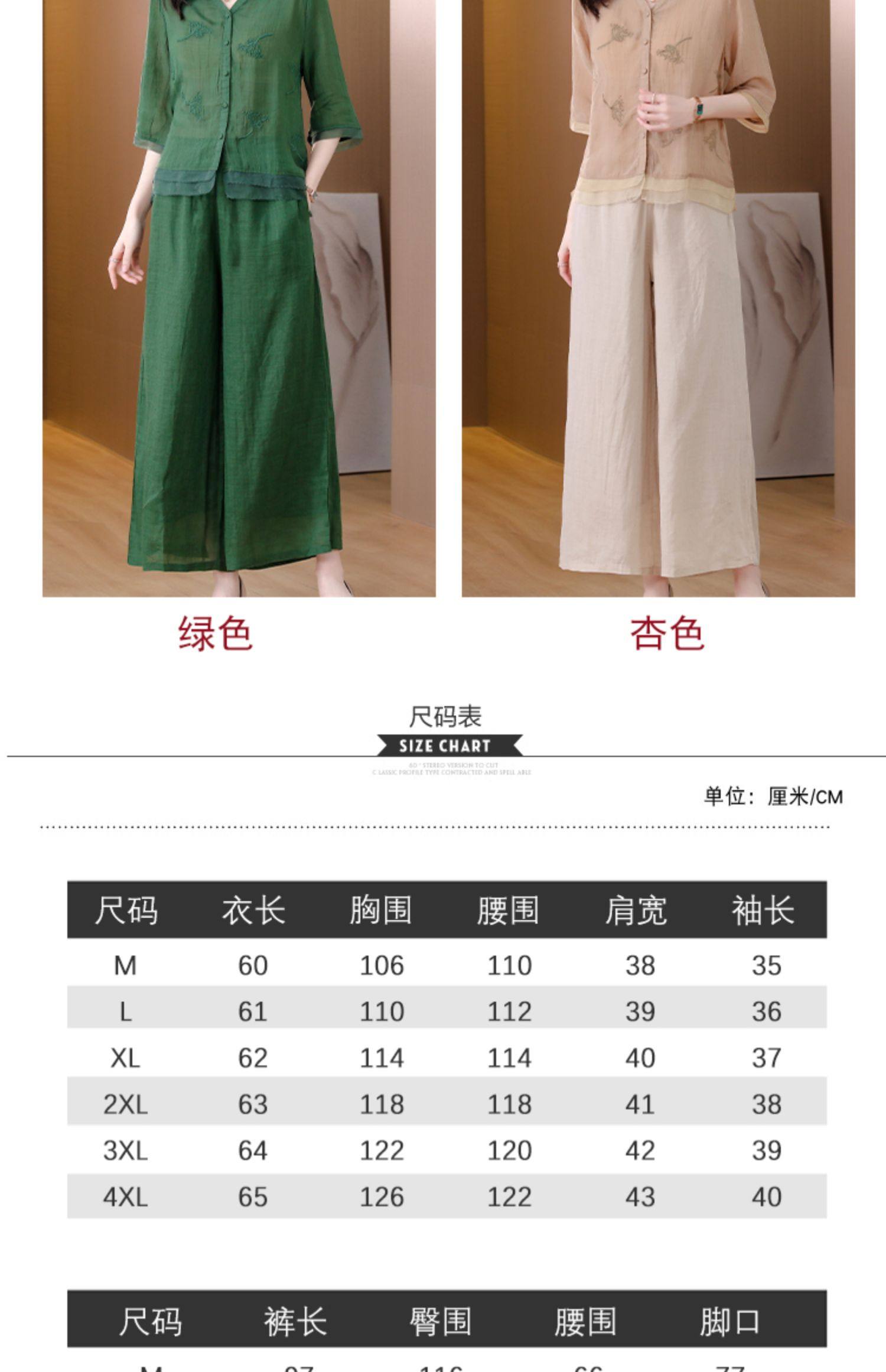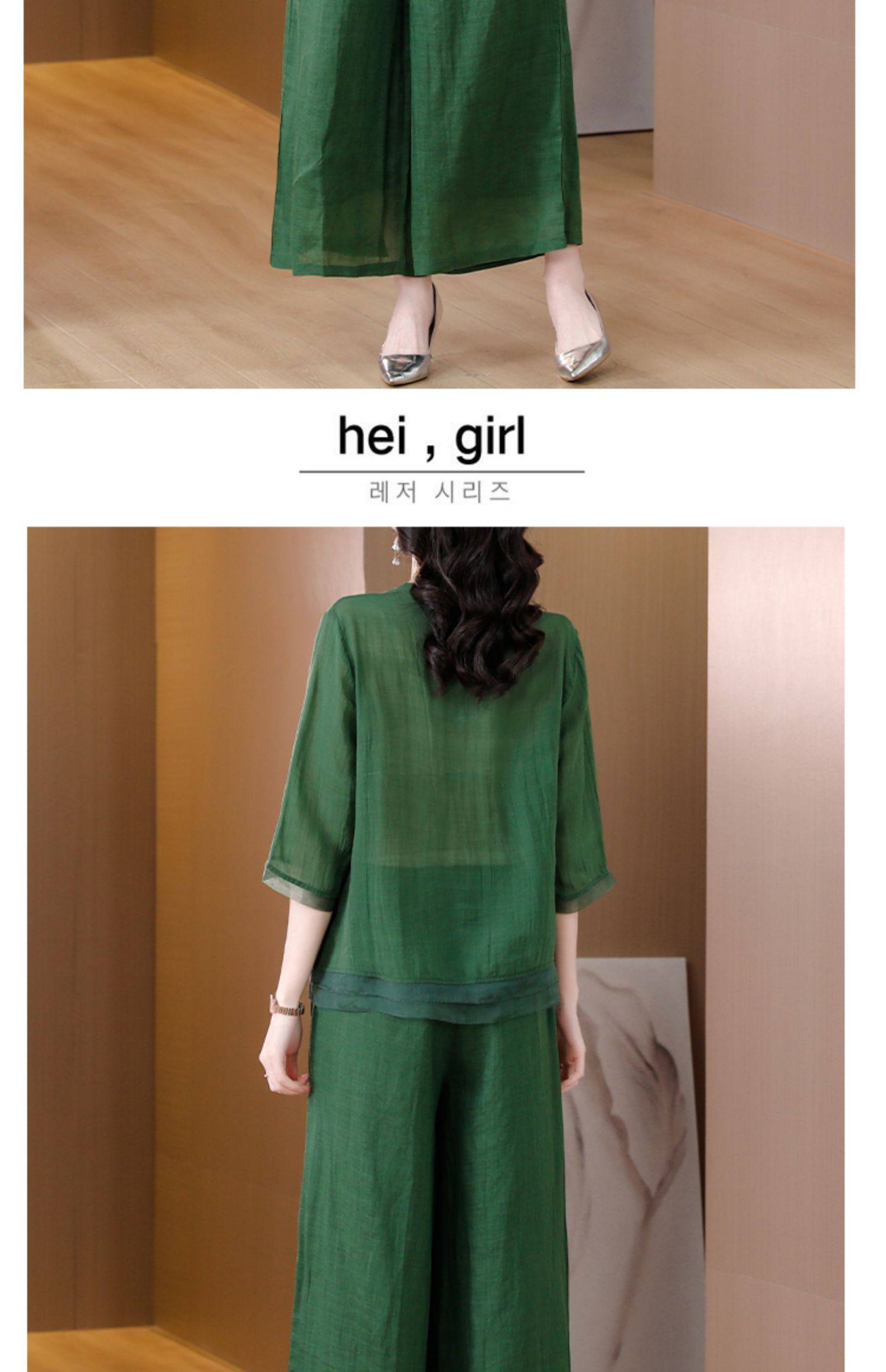 A9909薄款天丝棉麻套装女夏季2024新款阔太太中年妈妈宽松阔腿裤两件套