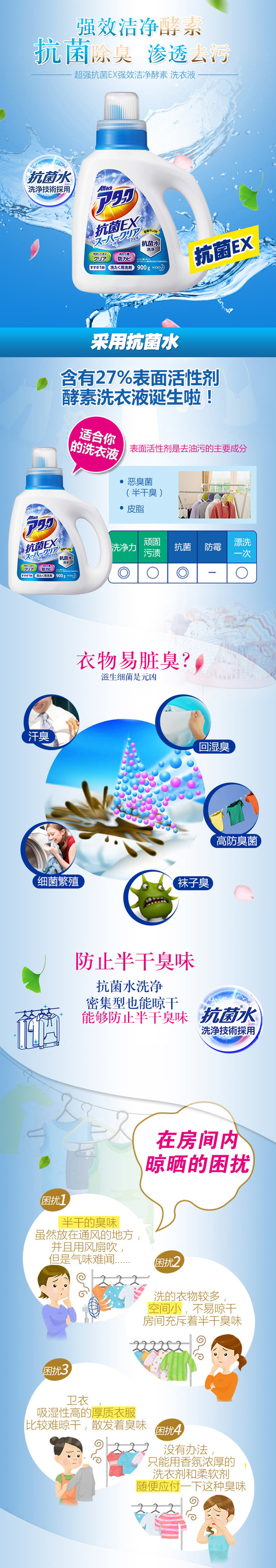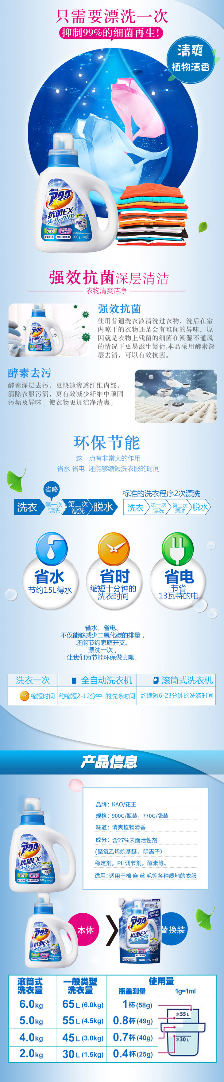 日本原装KAO花王高渗透抗菌消臭酵素洗衣液900g*3瓶