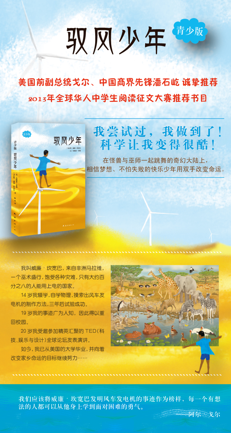★ 非常好的一本书。讲述了一个贫穷的年轻人不畏艰险,敢于创新的故事。通过艰苦不懈的努力,威廉终于把自己的想法变成了现实。每个有梦想的年轻人都应该读读这本书。——人文学者卡梅隆·辛克莱尔