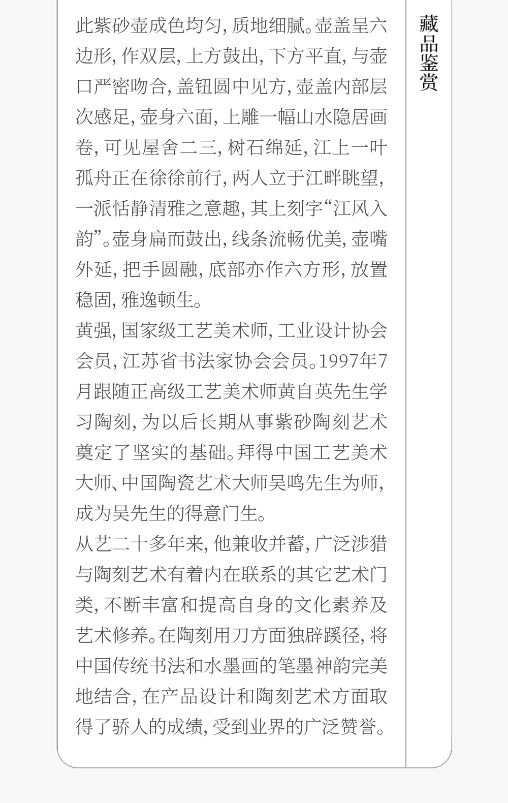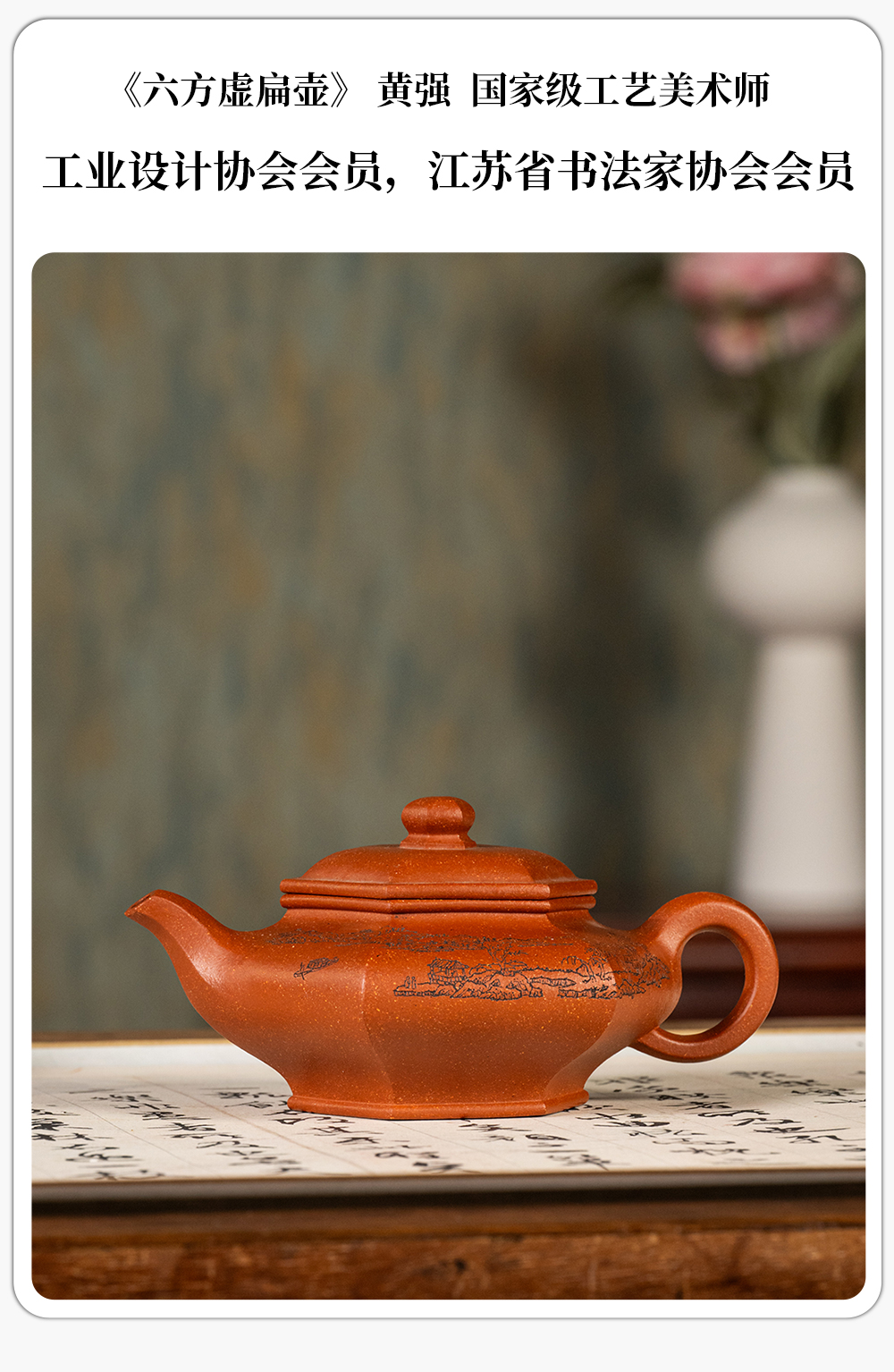 《六方虚扁壶》 黄强 工艺美术师,工业设计协会会员,江苏省书法家协会会员