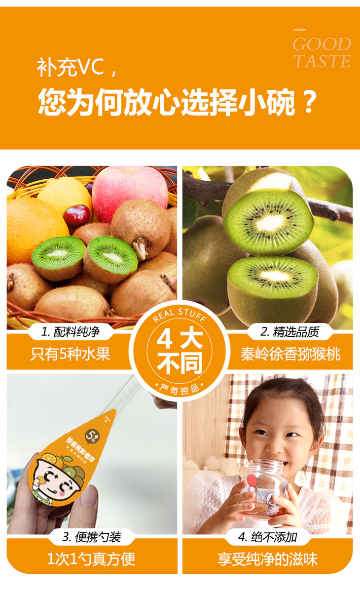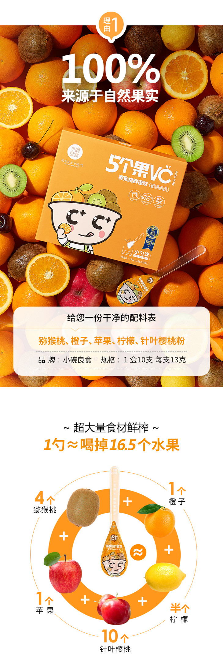 【小碗良食官方】猕猴桃鲜橙萃 猕猴桃橙子苹果柠檬樱桃萃取 天然VC非人工合成