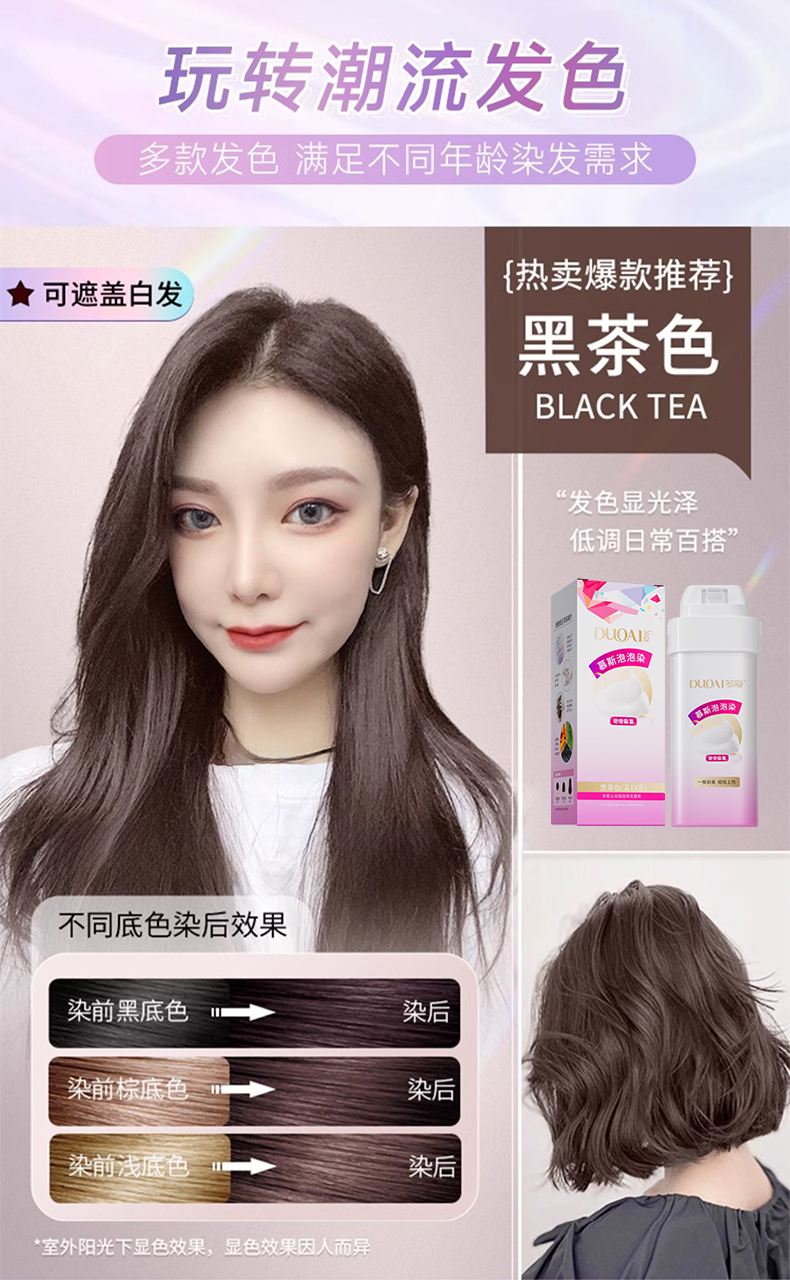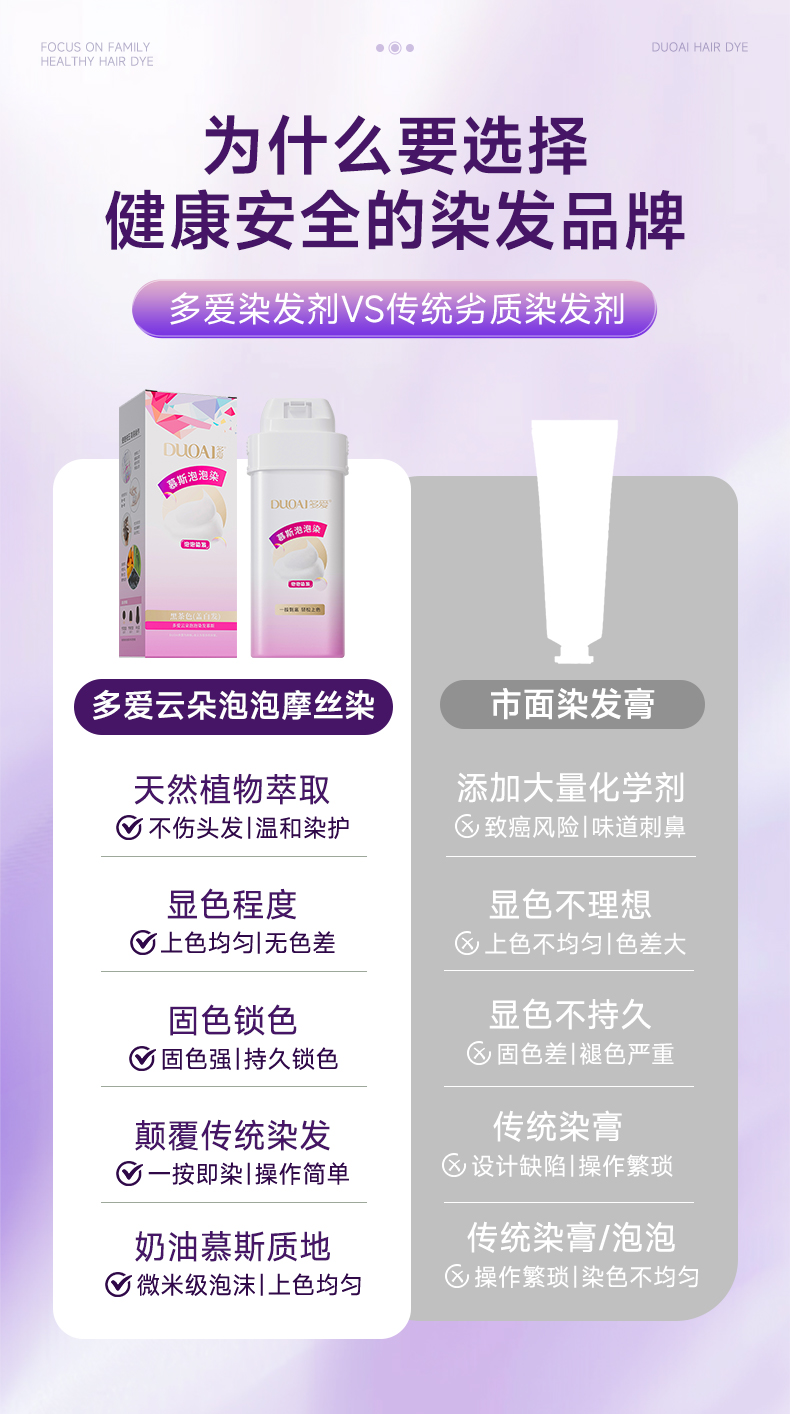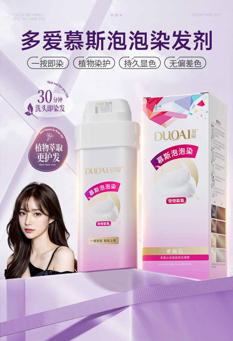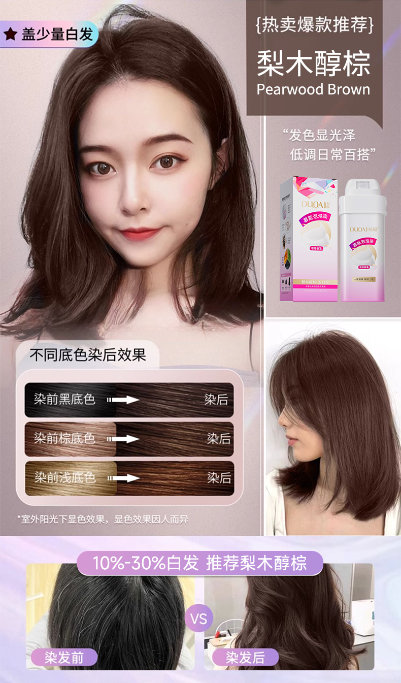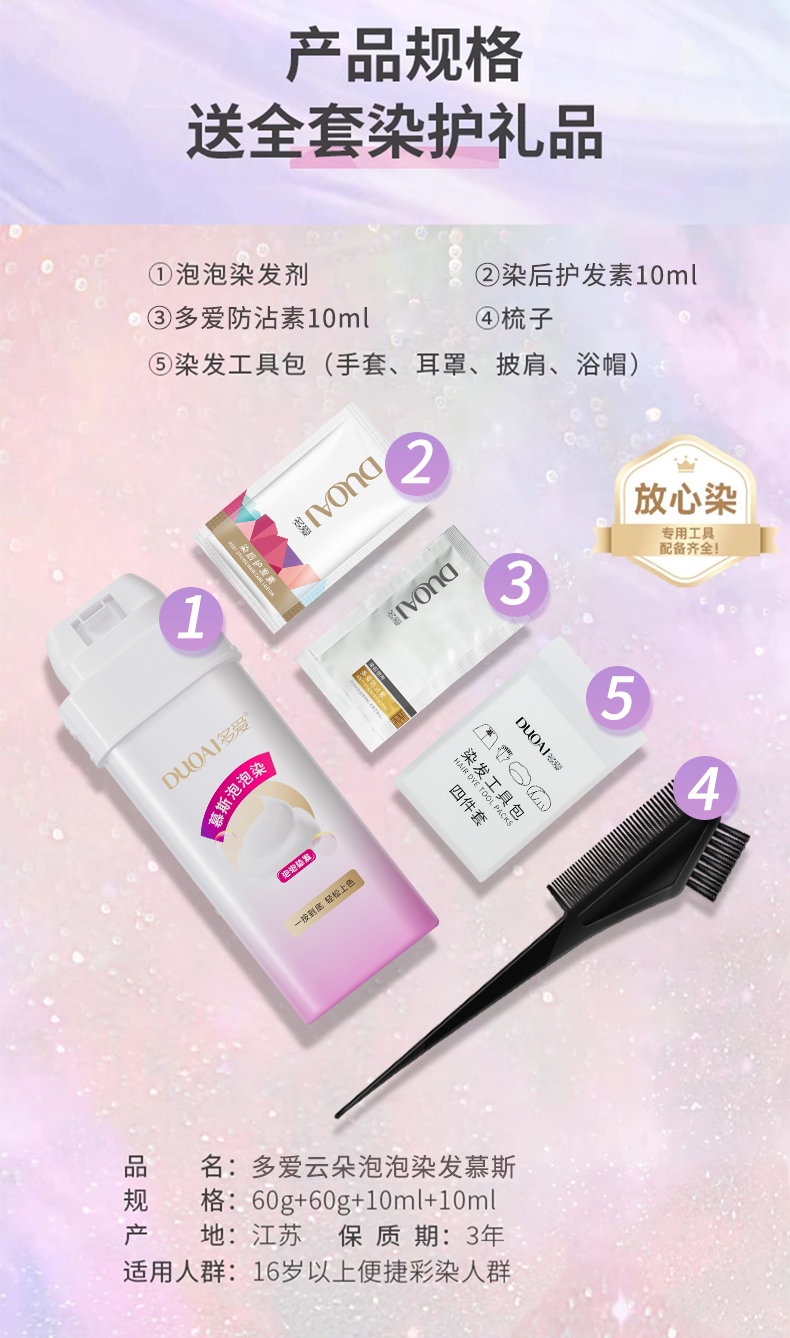 【秒杀】多爱云朵慕斯染 专利技术无需手调 自动出泡在家轻松染发剂 黑茶色遮白发
