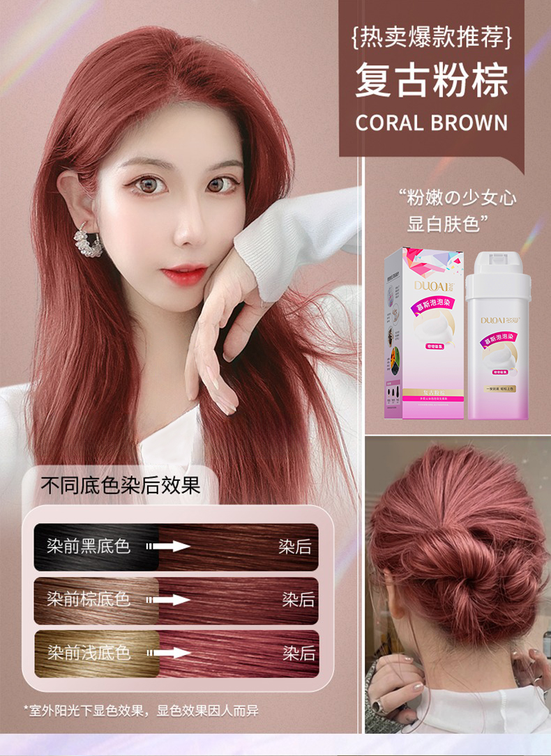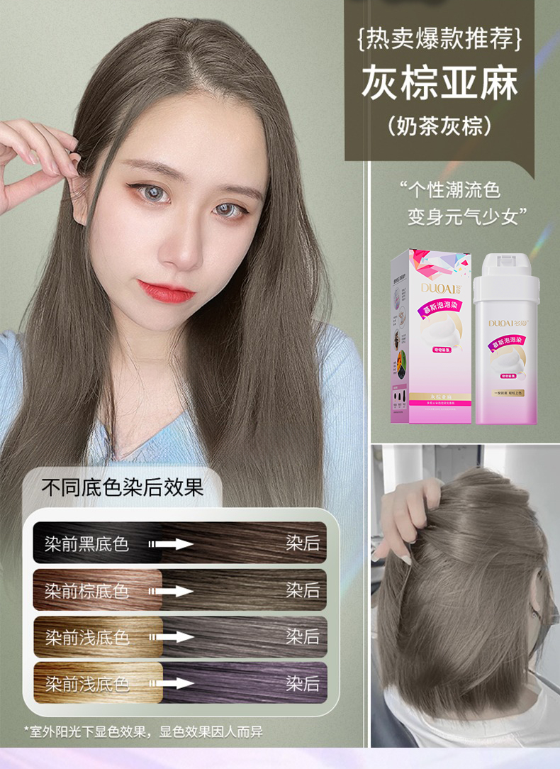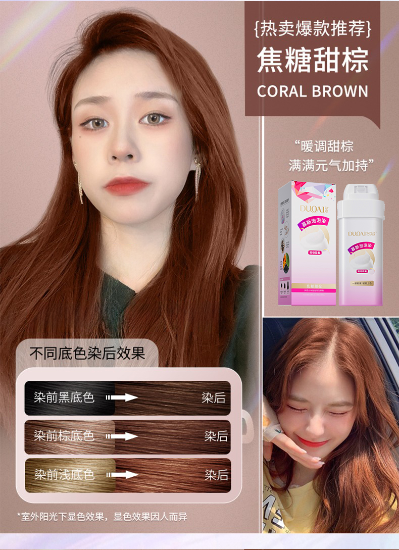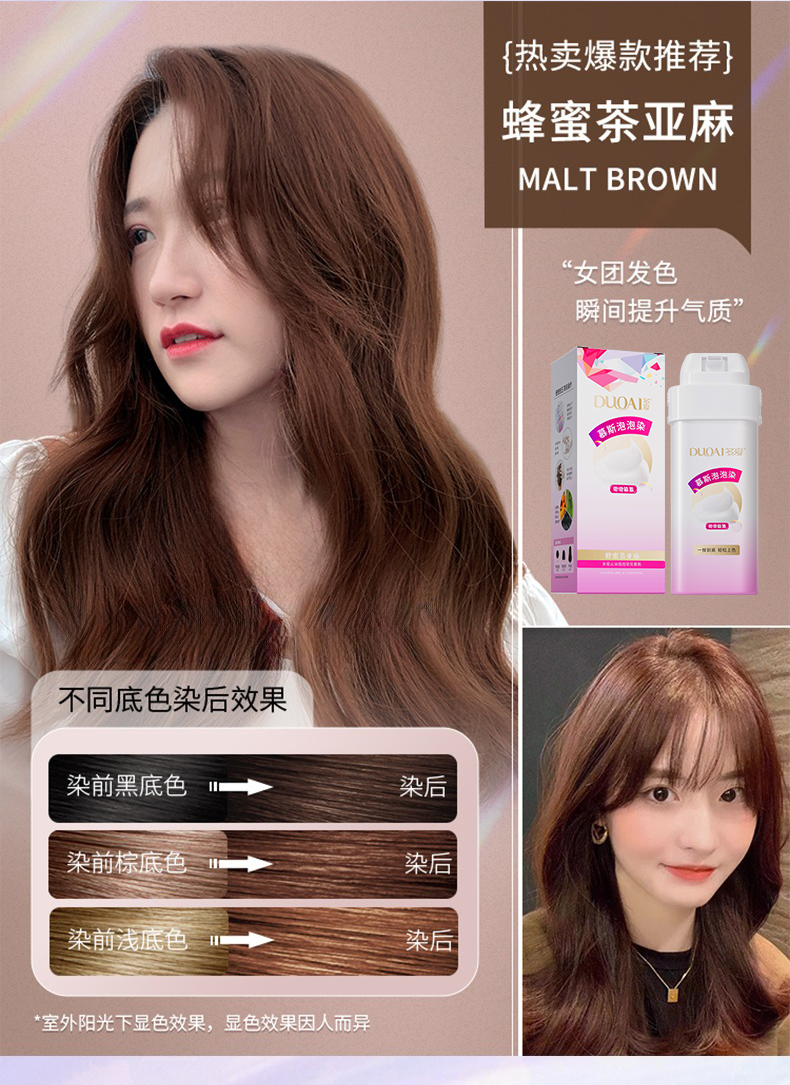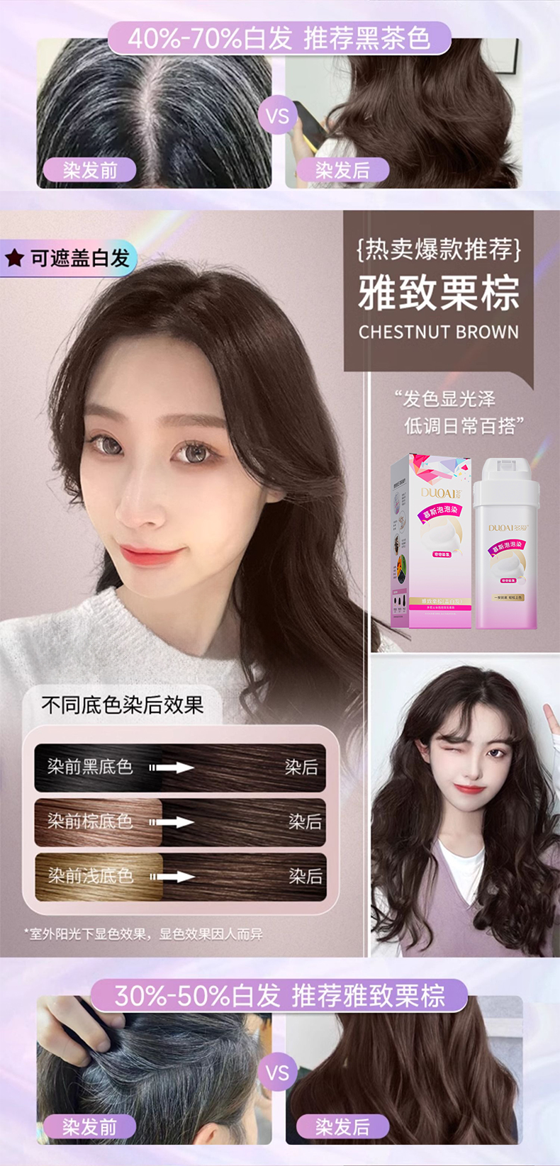 【秒杀】多爱云朵慕斯染 专利技术无需手调 自动出泡在家轻松染发剂 黑茶色遮白发