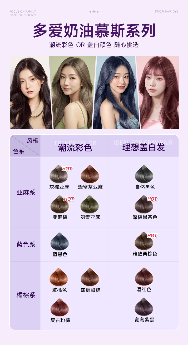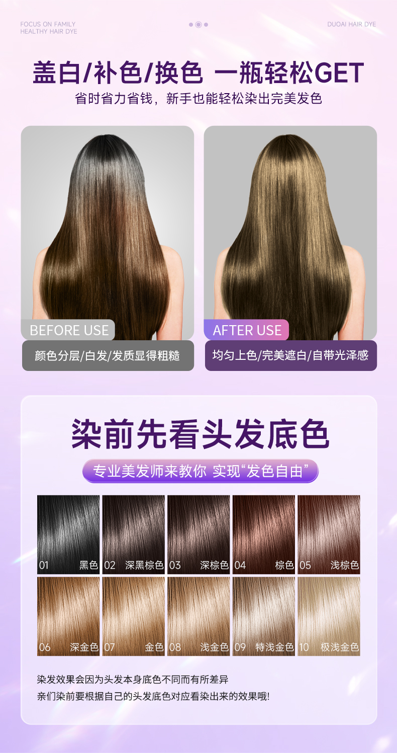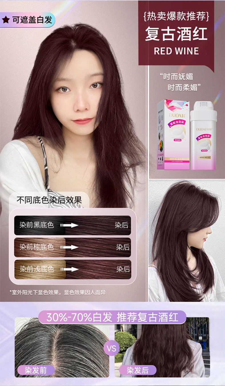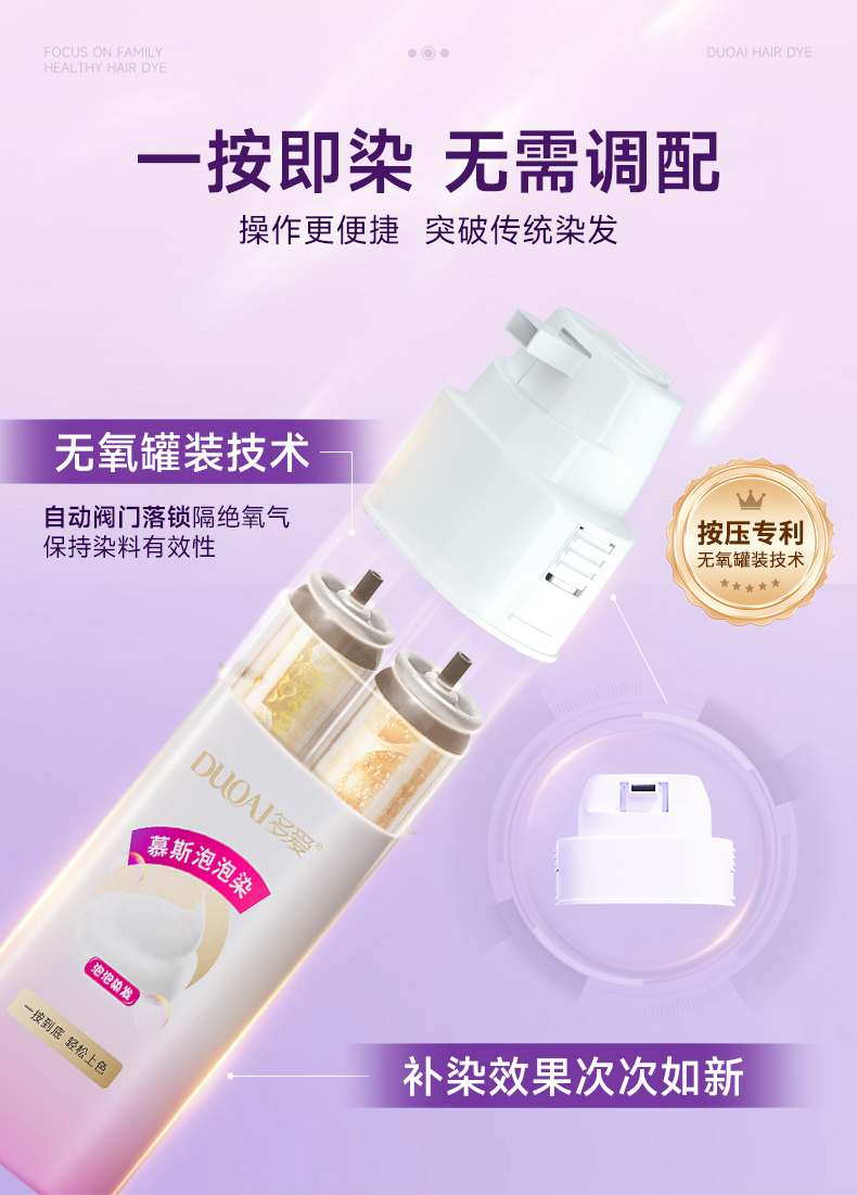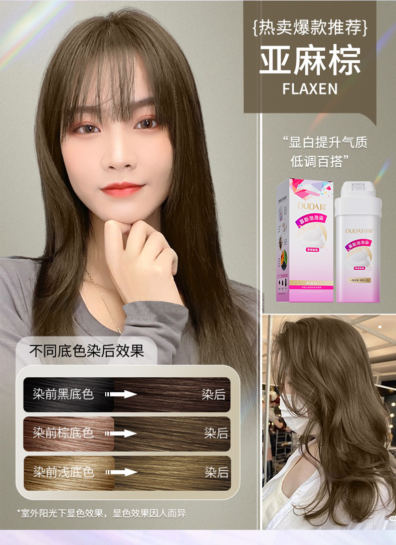 【秒杀】多爱云朵慕斯染 专利技术无需手调 自动出泡在家轻松染发剂 黑茶色遮白发