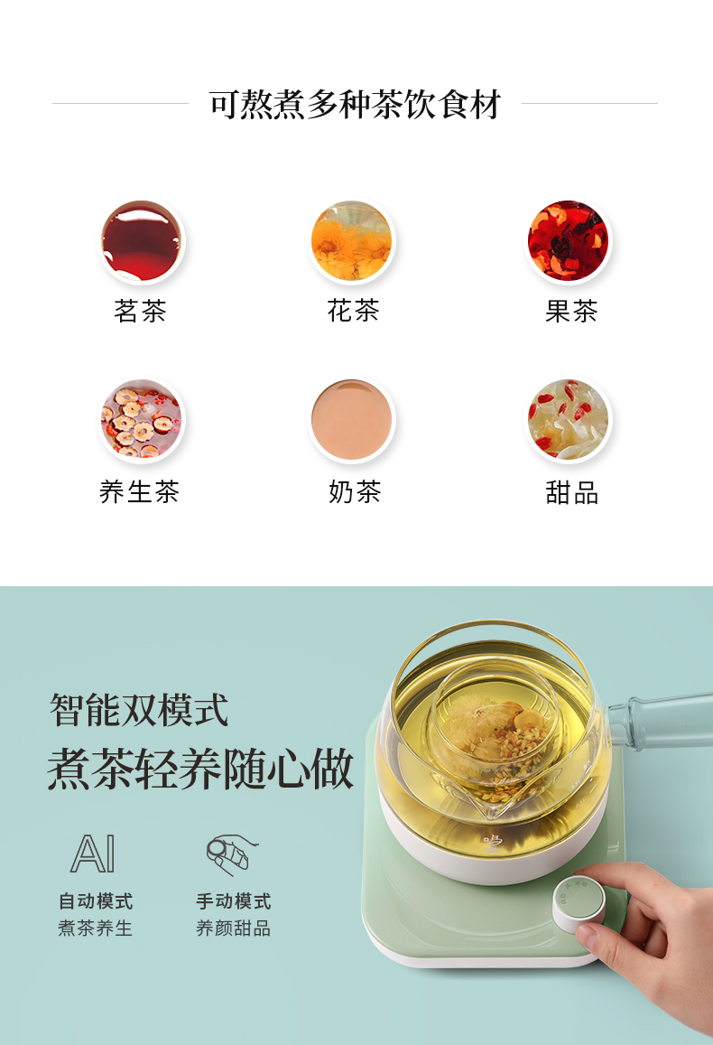 鸣盏煮茶器养生壶办公室多功能全自动小型迷你玻璃煮茶壶电热茶炉