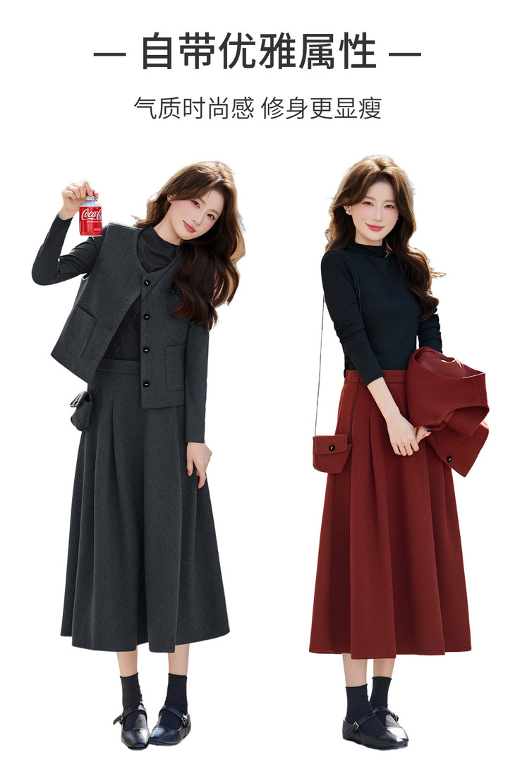 春季新款时尚气质马甲打底衫半裙三件套 YF2699 商品图0