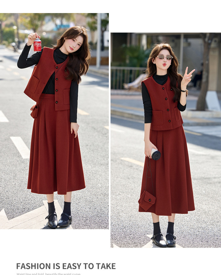 春季新款时尚气质马甲打底衫半裙三件套 YF2699