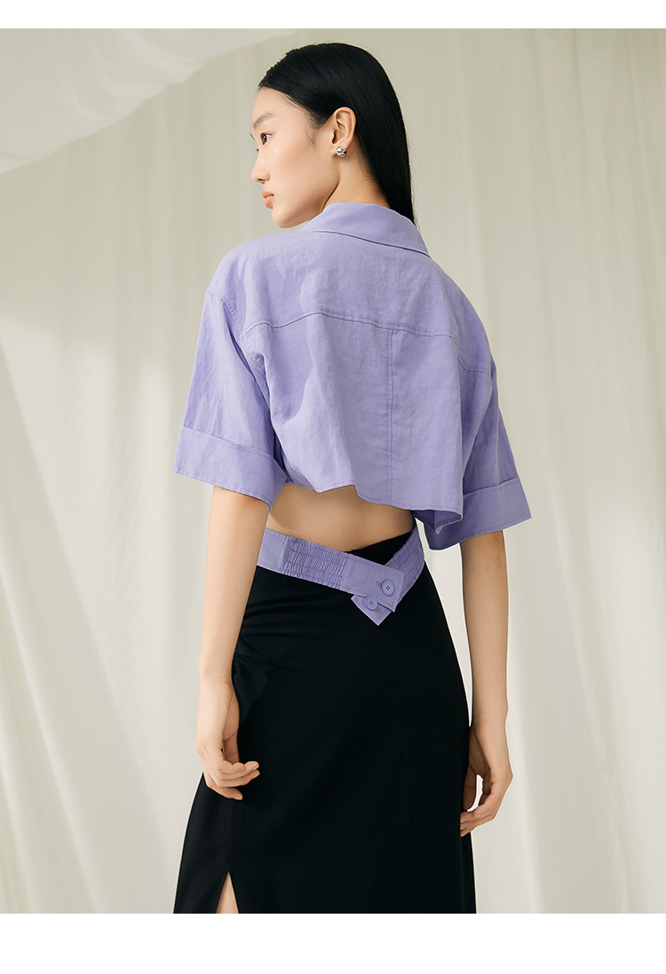 VIMAGE纬漫纪夏季新款时尚小众设计短款衬衫女上衣衬衣V1909519