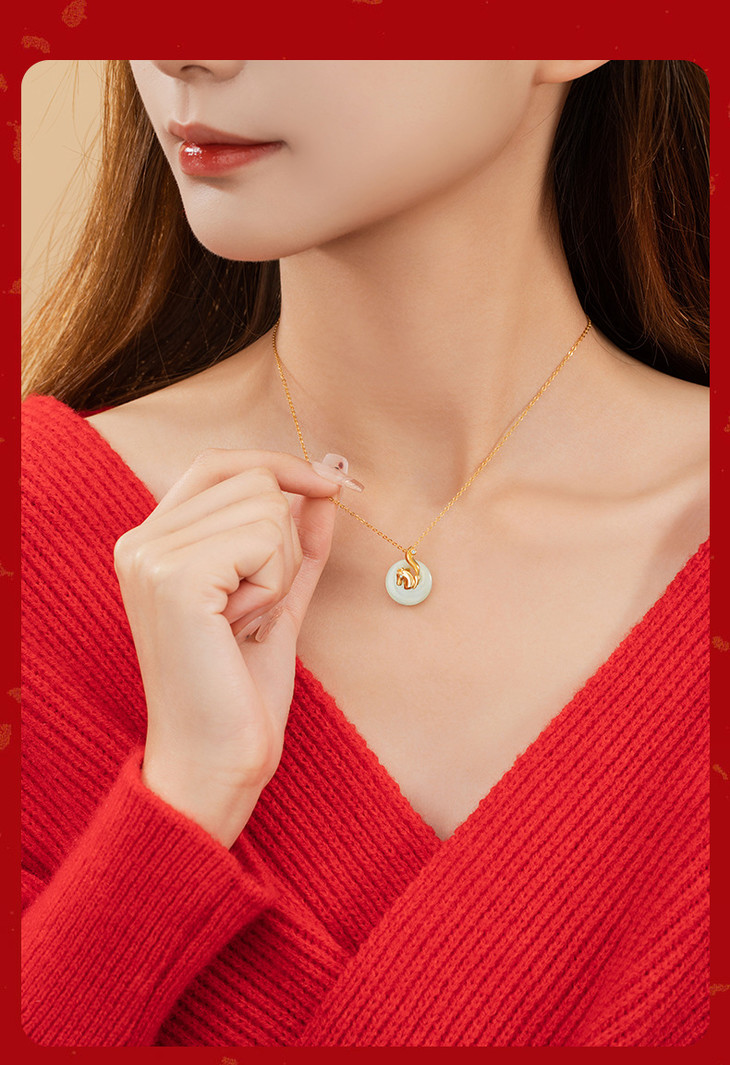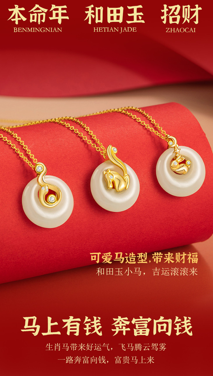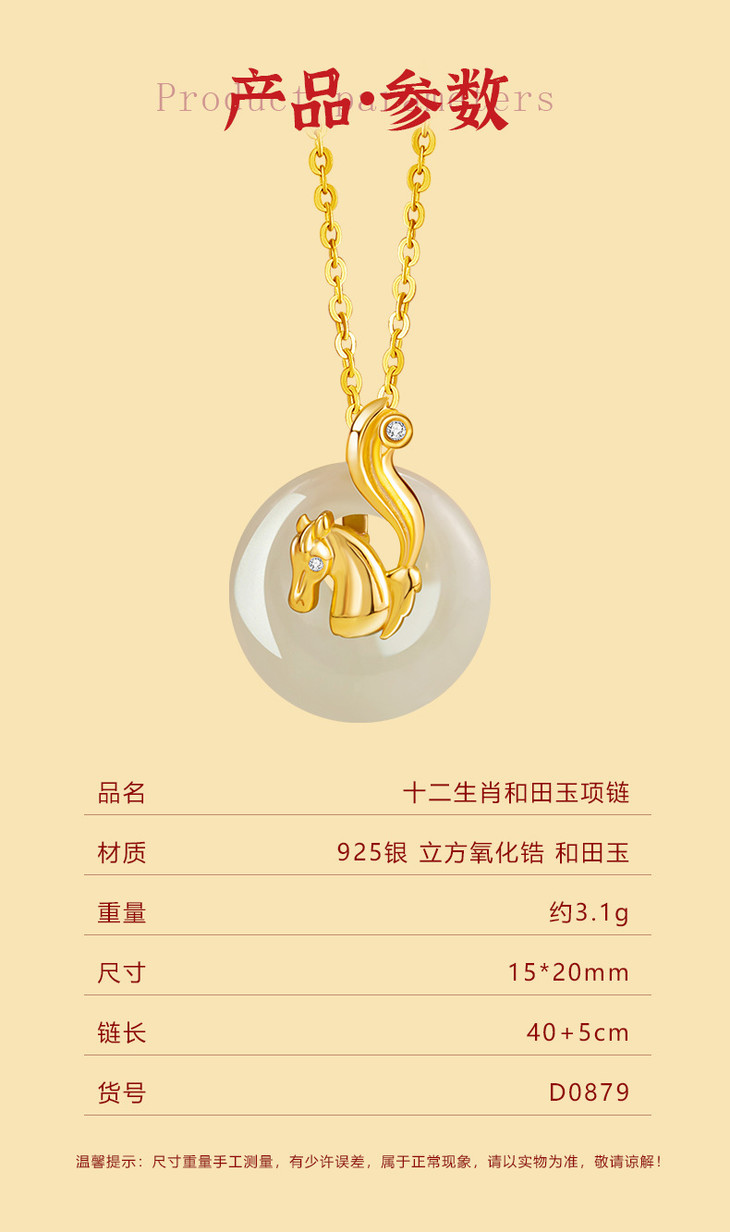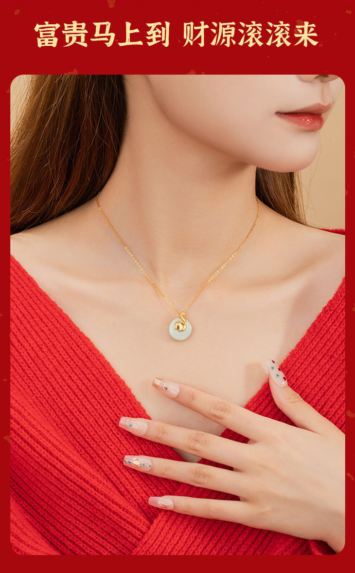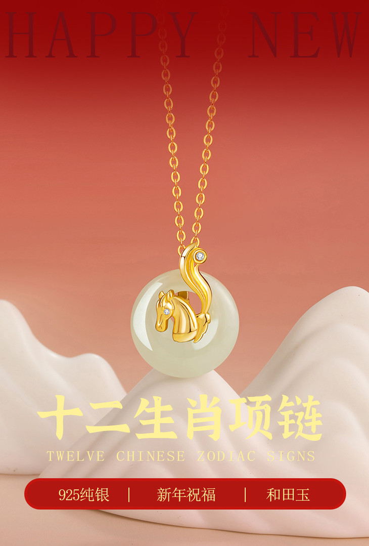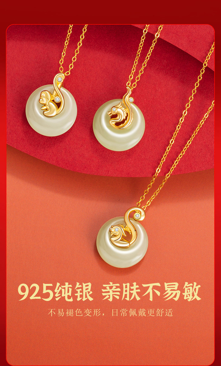 十二生肖纯银925和田玉项链,本命年平安扣锁骨链马上有钱D0879