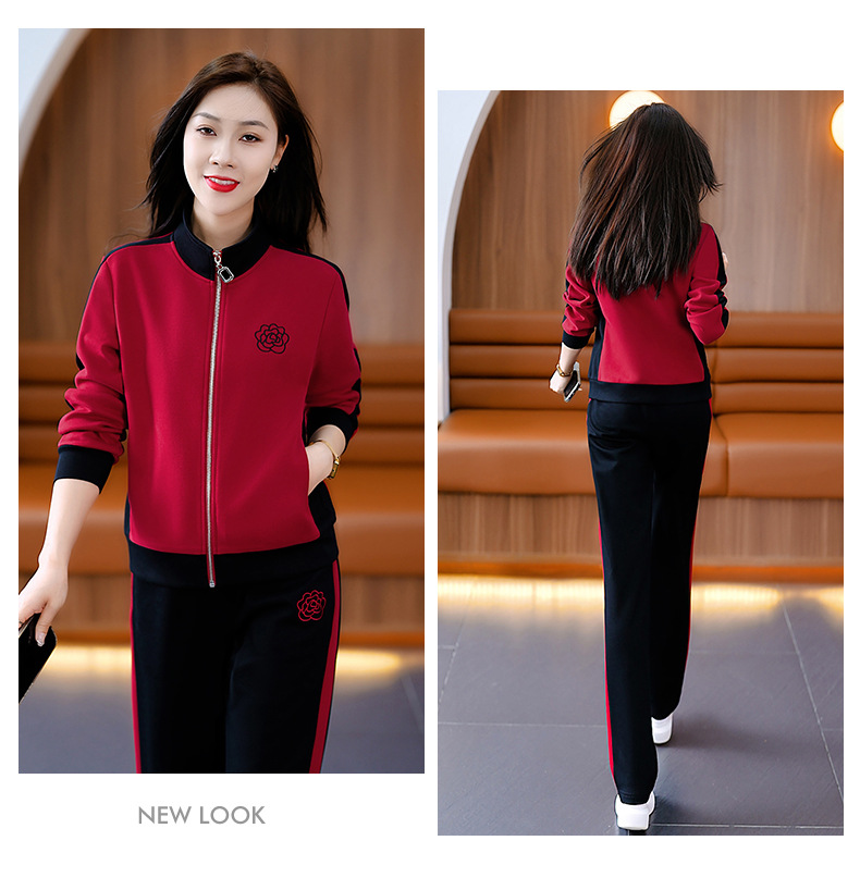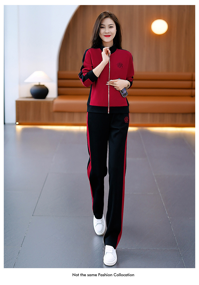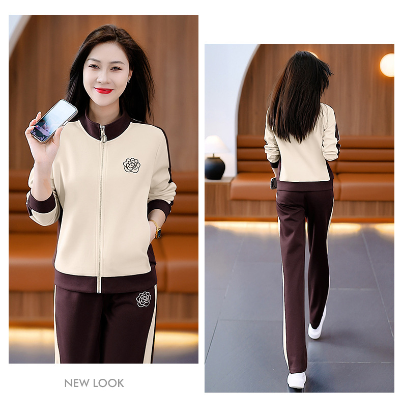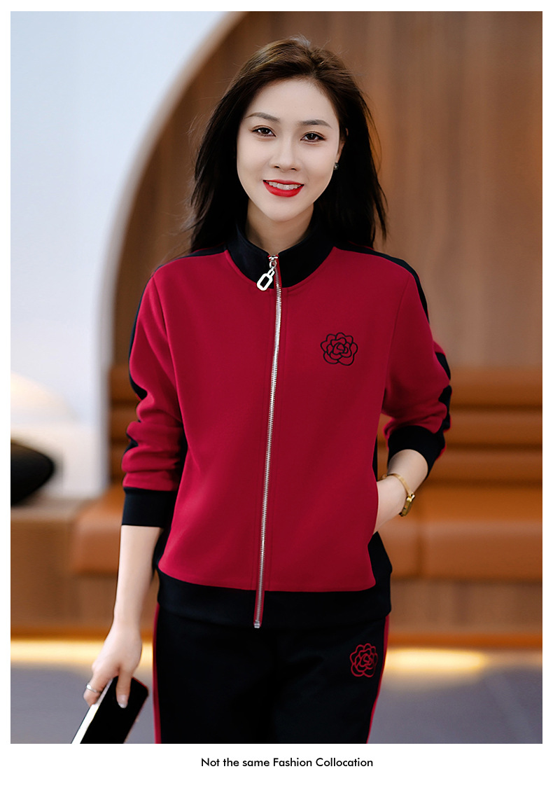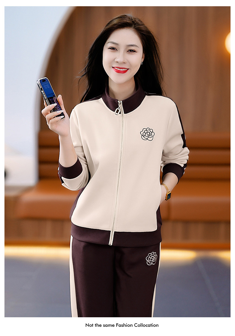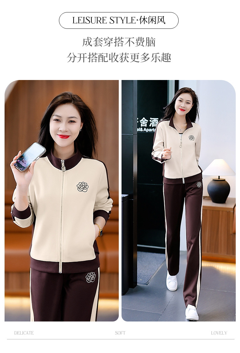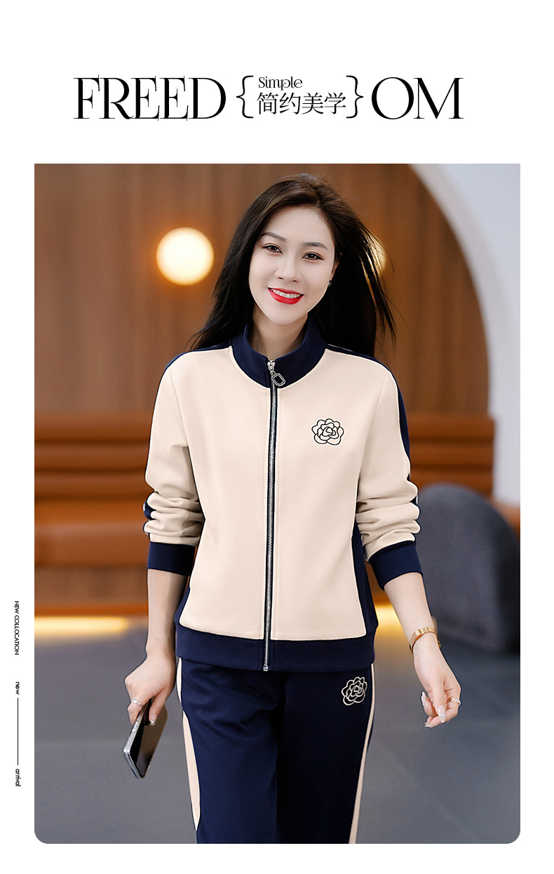雀说运动套装女士新款立领长袖宽松显瘦外套两件套AL33018
