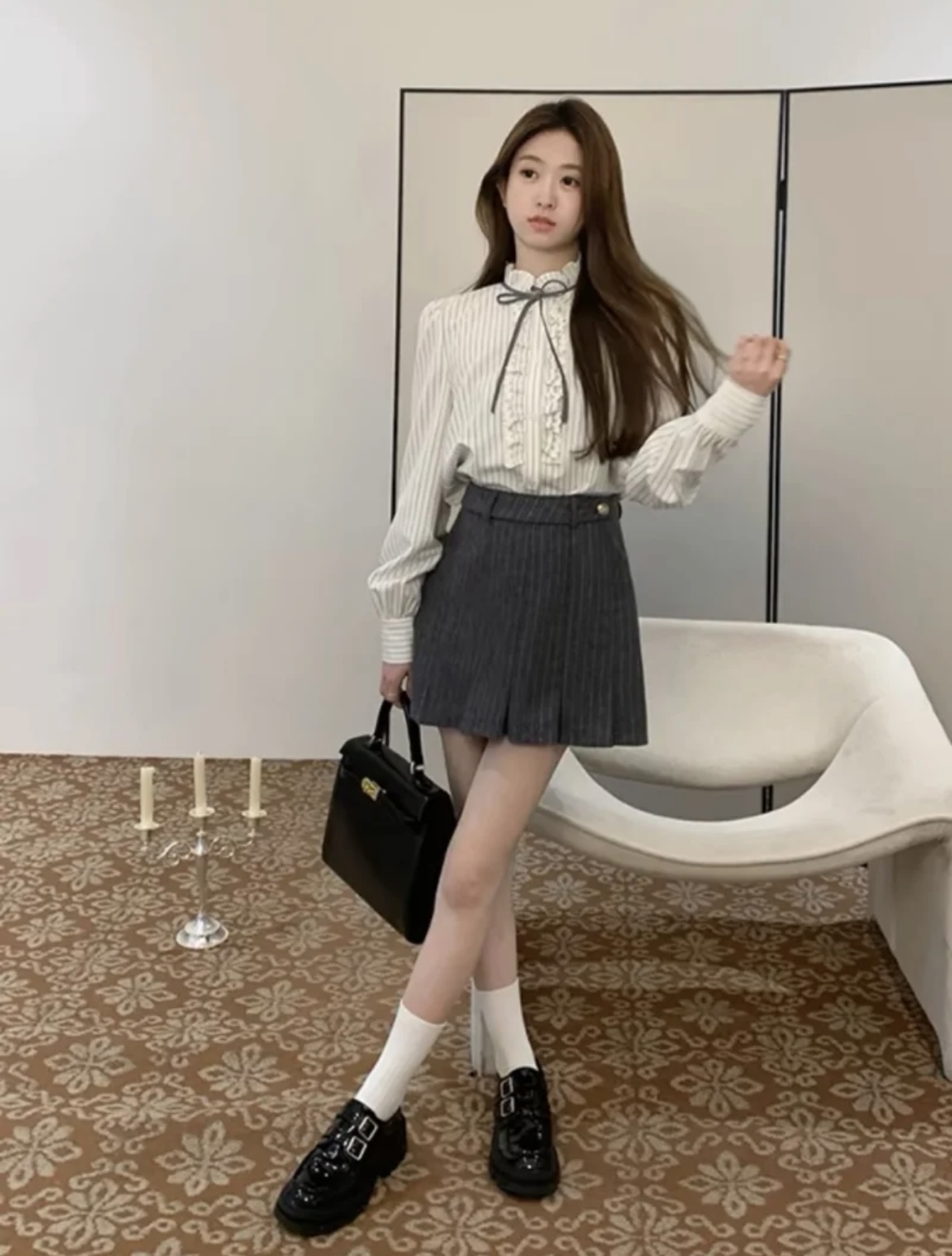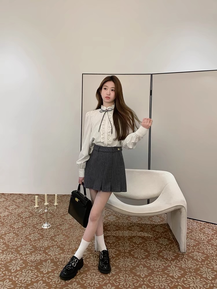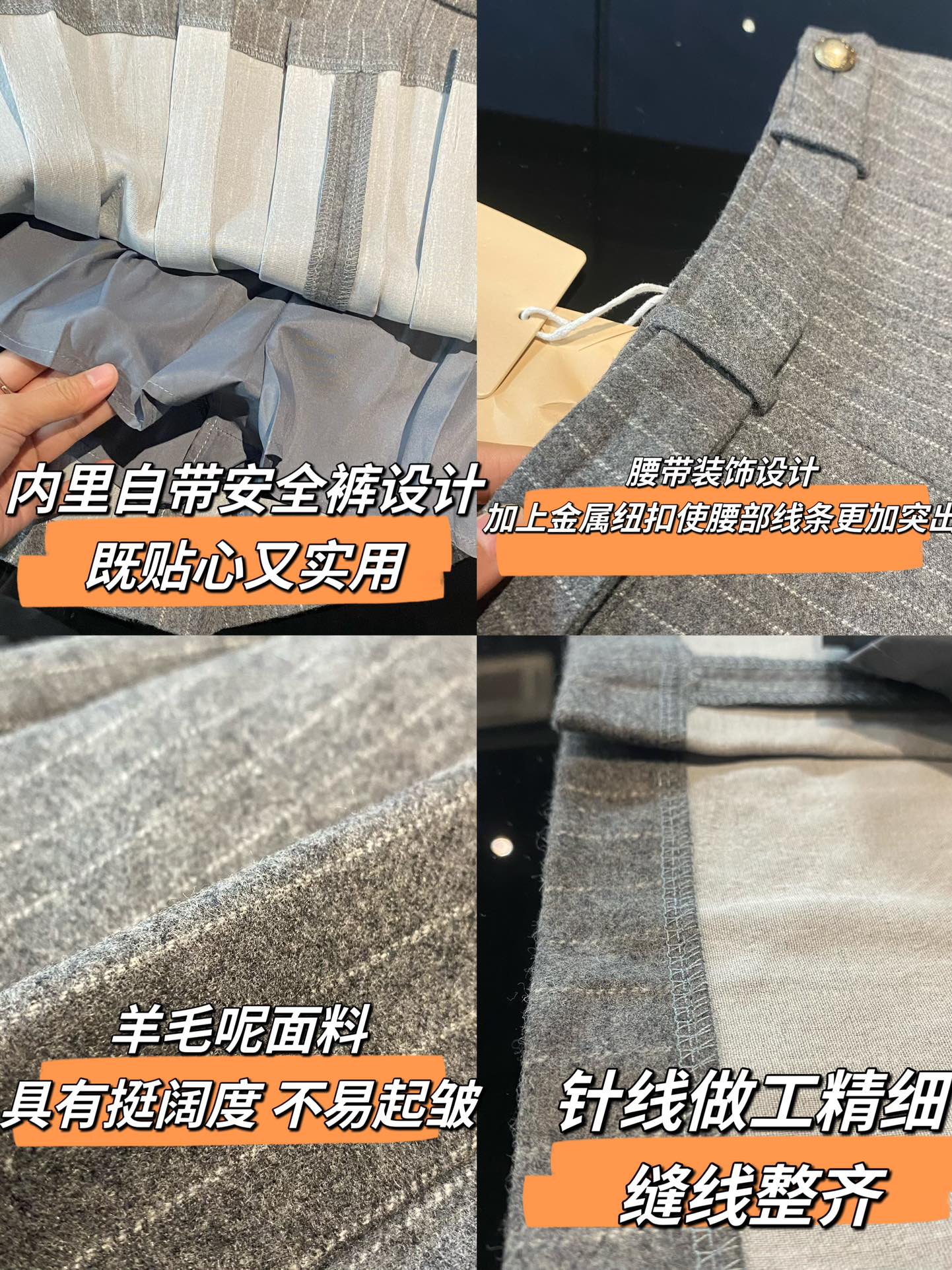 网红品牌订单‼️ 数量就几十秒完无补!真羊毛半裙!品质无敌赞👍含安全裤!安全裤都是真丝材质!秋冬衣橱的“全能ACE” 来了! 这条羊毛混纺的条纹百褶裙,简直就是为浪漫冬天而生的神仙单品! •“黑科技”羊毛🦙混纺面料,要风度也要温度!软糯羊毛,像被云朵包裹,保暖度满分型!丝滑人造丝,让裙子走路带风,垂感超好,一点都不显臃肿!韧性尼龙,抗皱耐穿,褶皱不容易塌,随便坐也不怕! 蕾姐实拍S参考!⚠️ S码80-105斤⚠️ M码100-120斤以内⚠️L码120-135斤以内⚠️