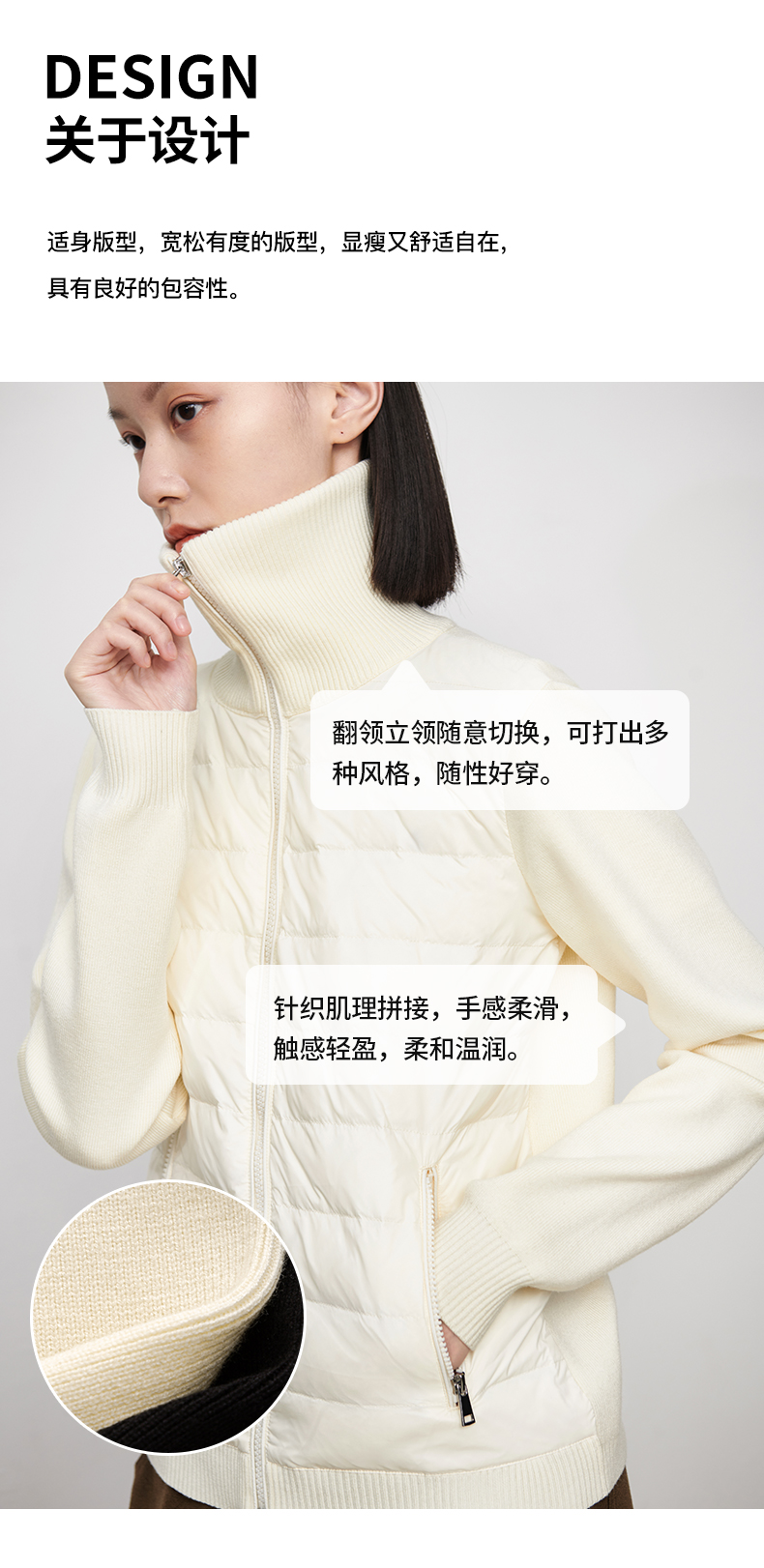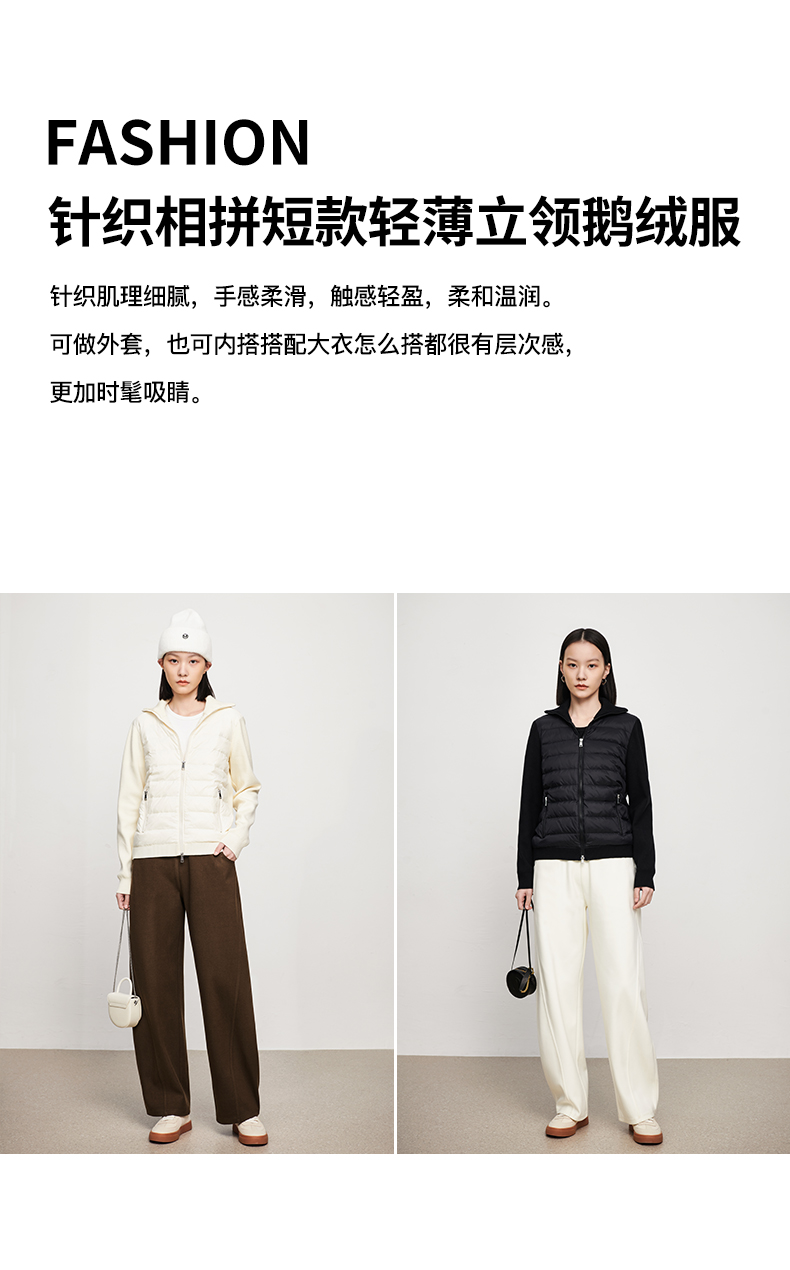 IN AND ON鱼骨轻薄羽绒服女夹克外套短款立领秋冬休闲开衫鹅绒服52570